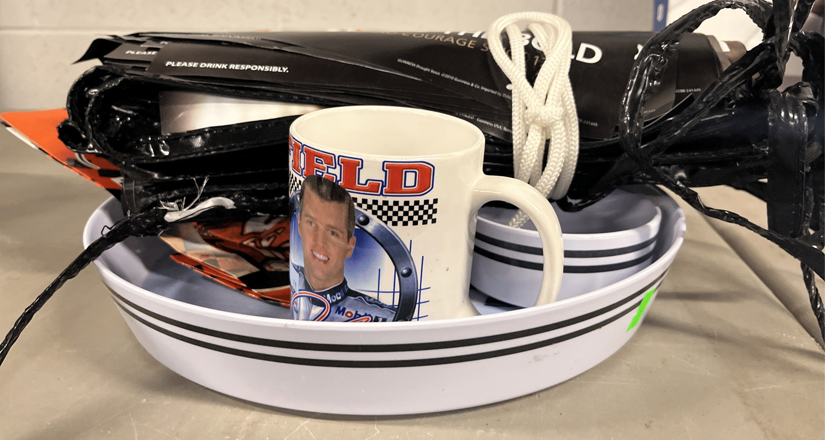 157 NASCAR collectibles assortment inc. mug, serving tray and oven mitt