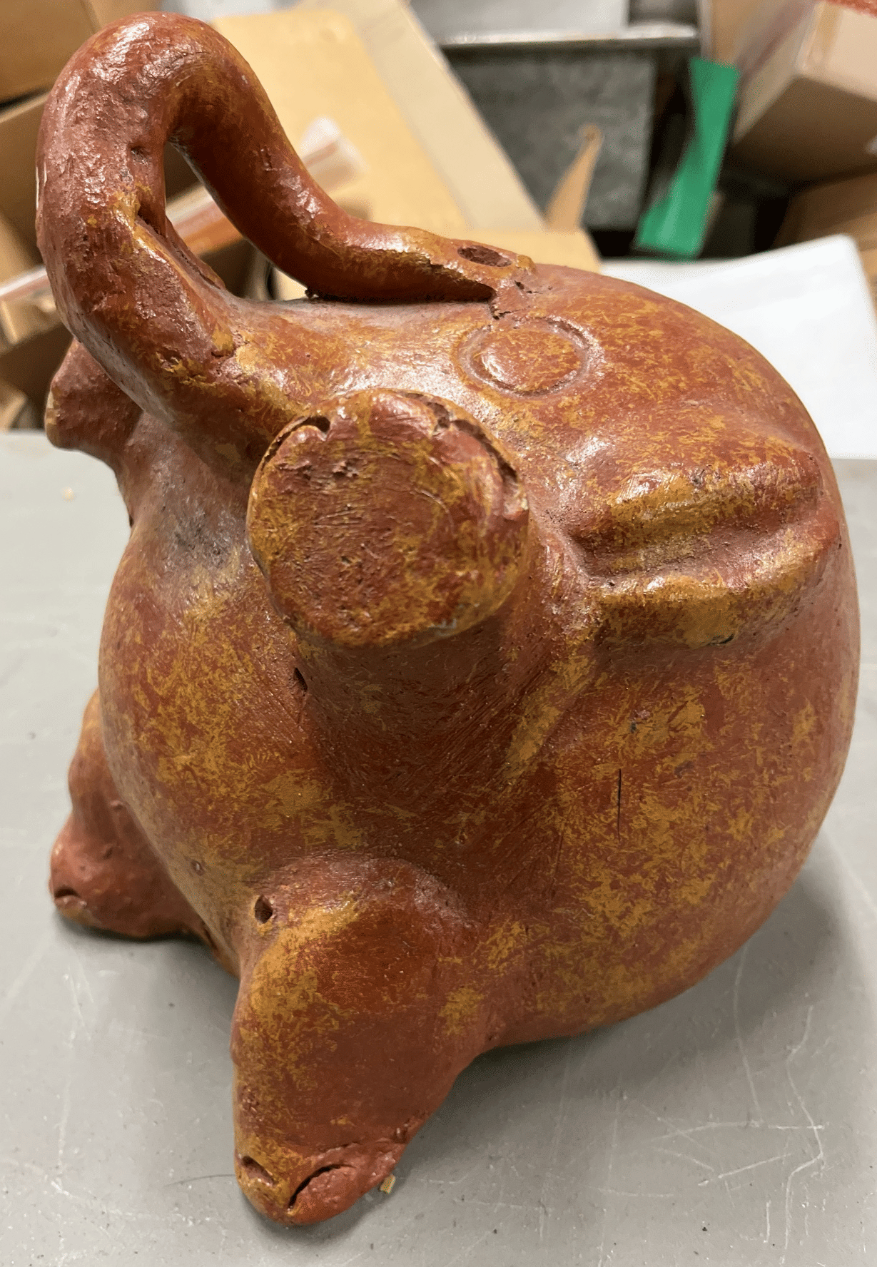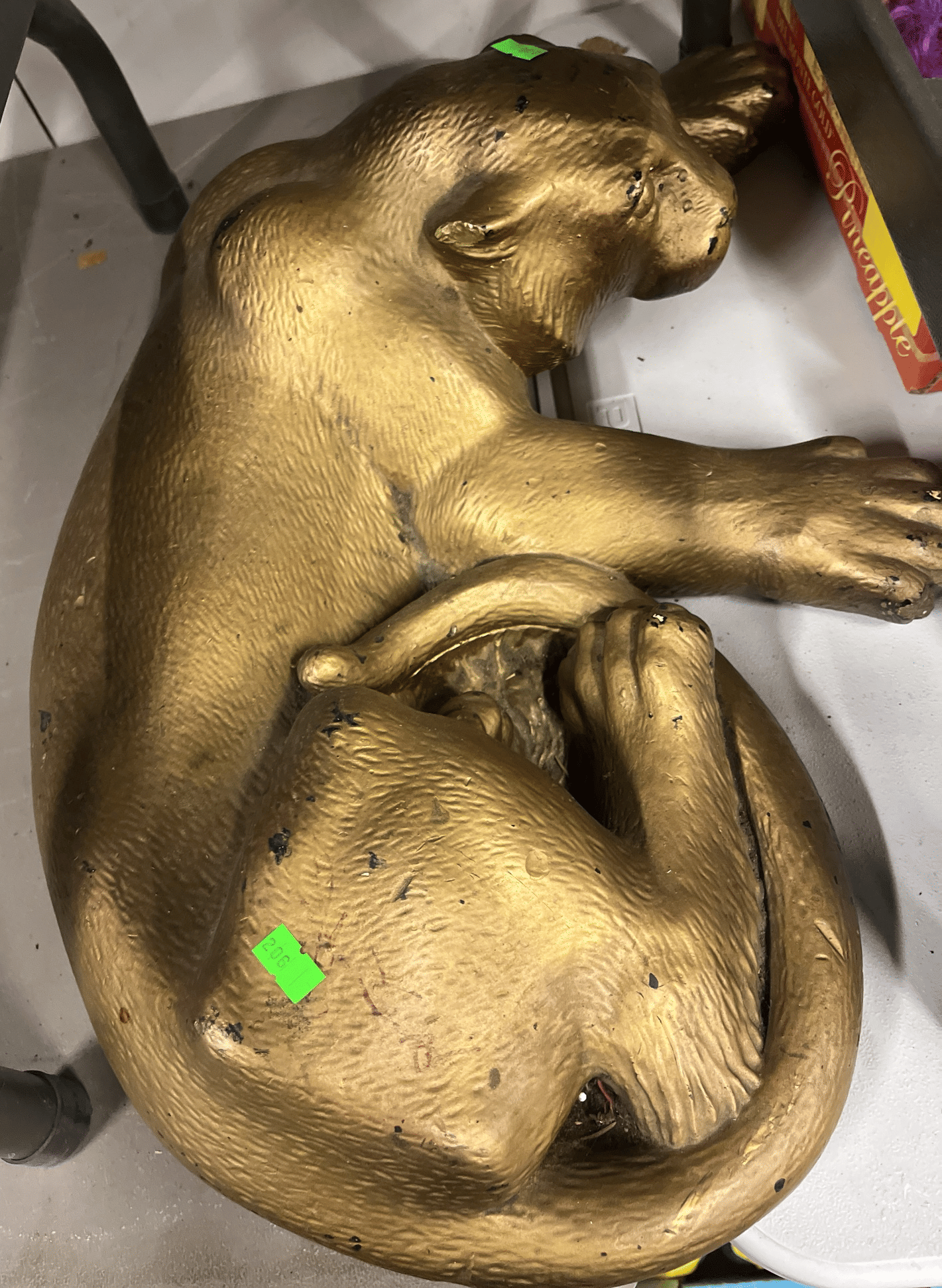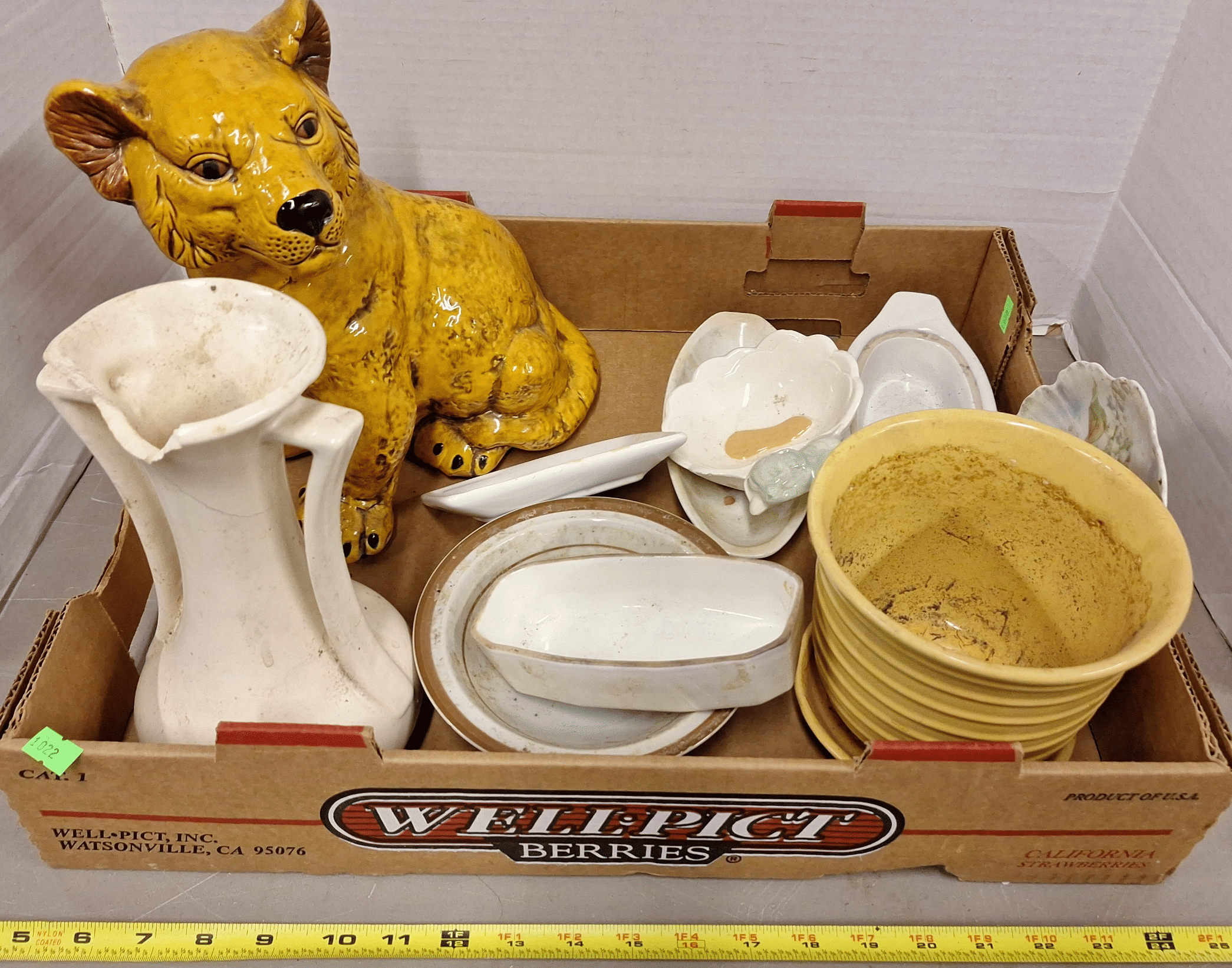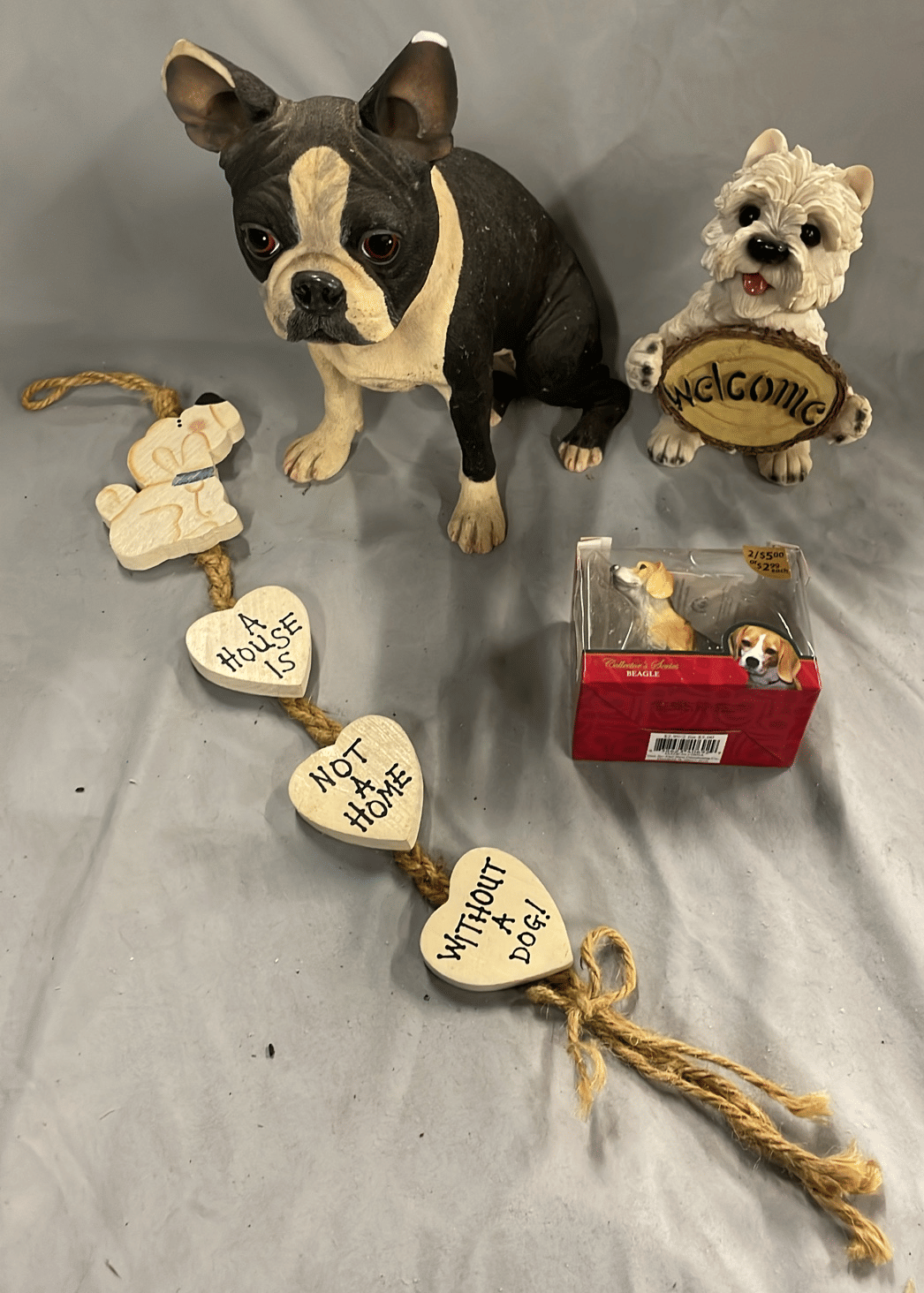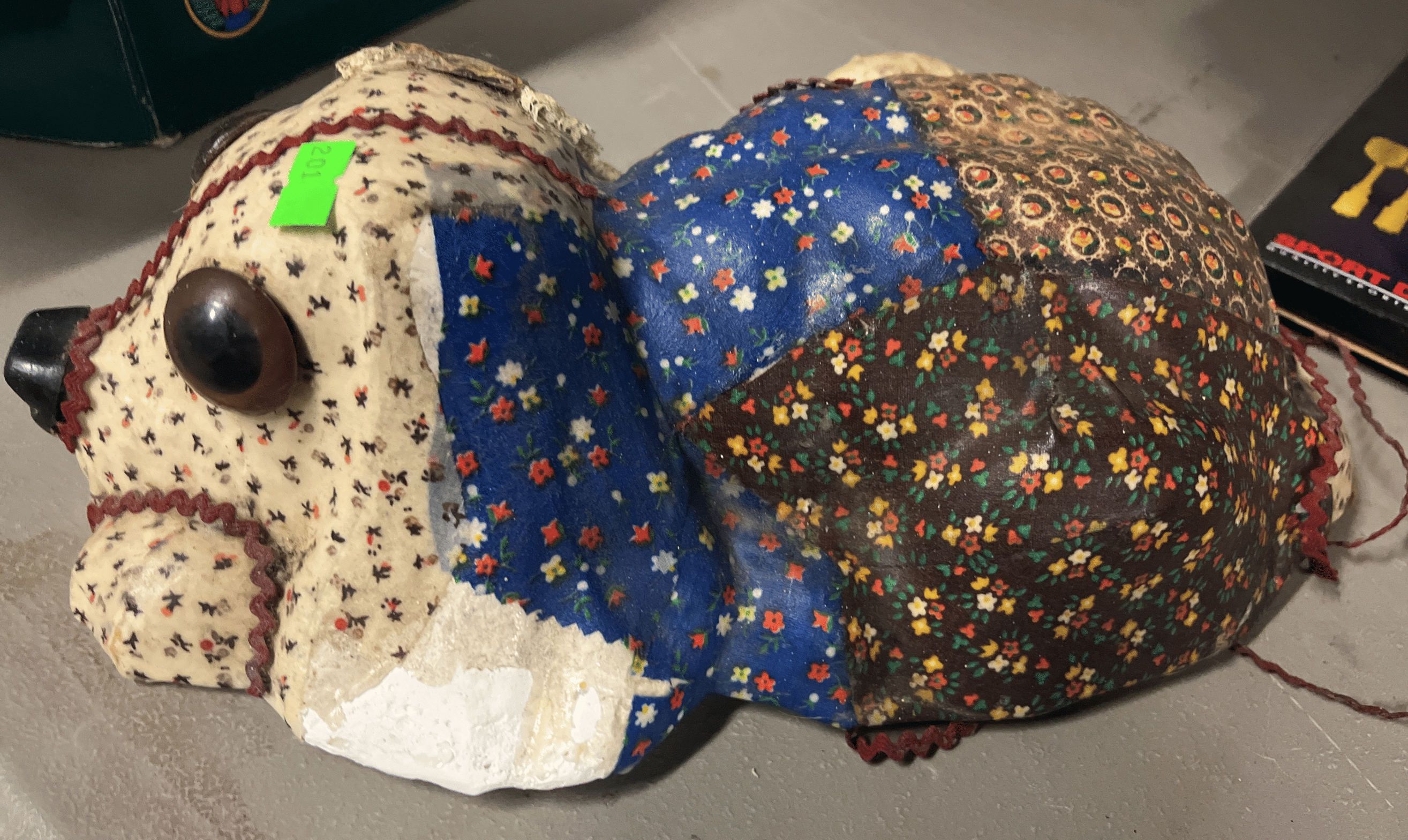 201 Plaster dog figure with decoupage cloth 12x8x4"