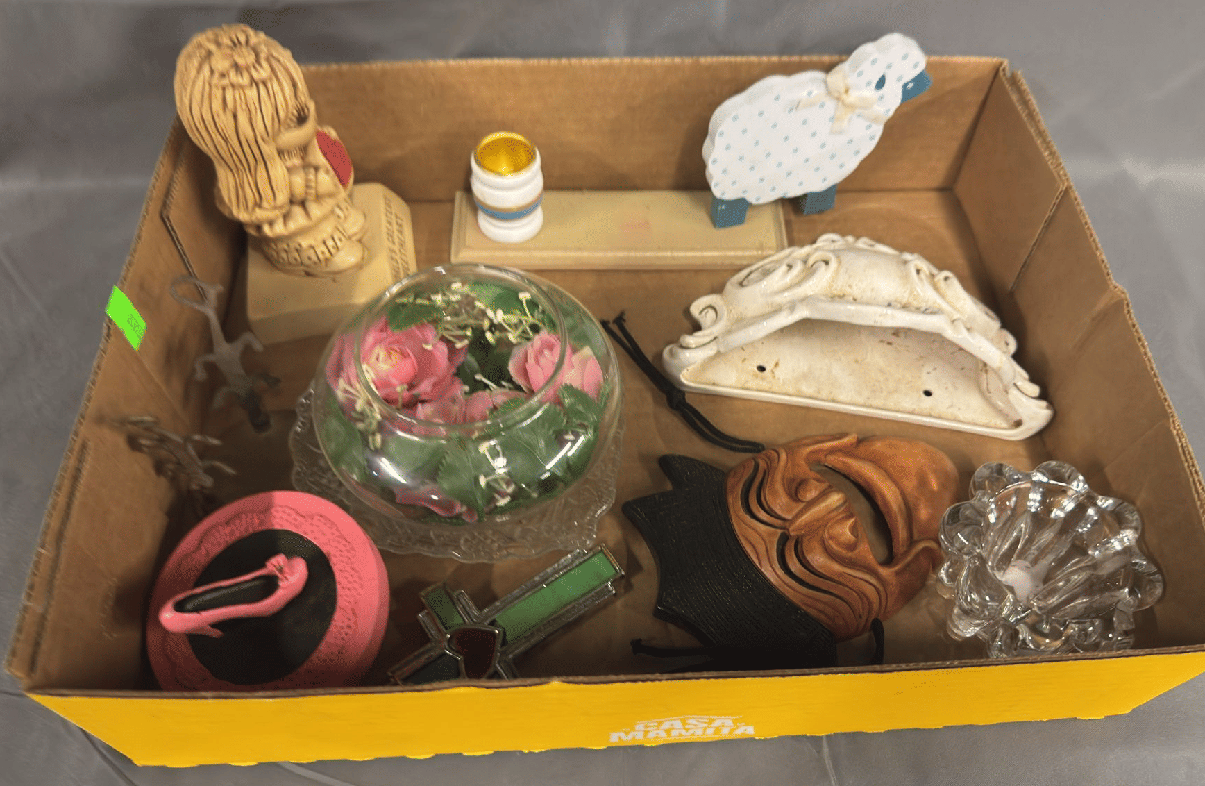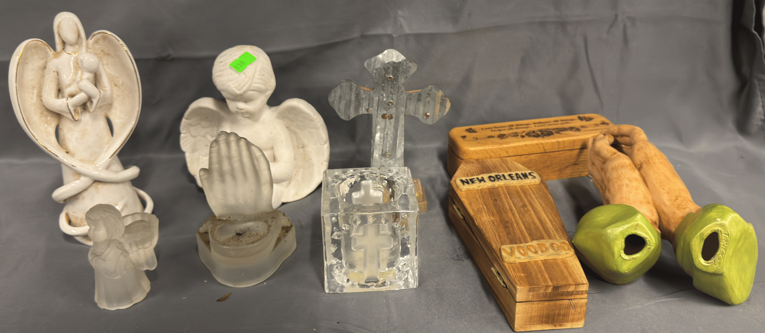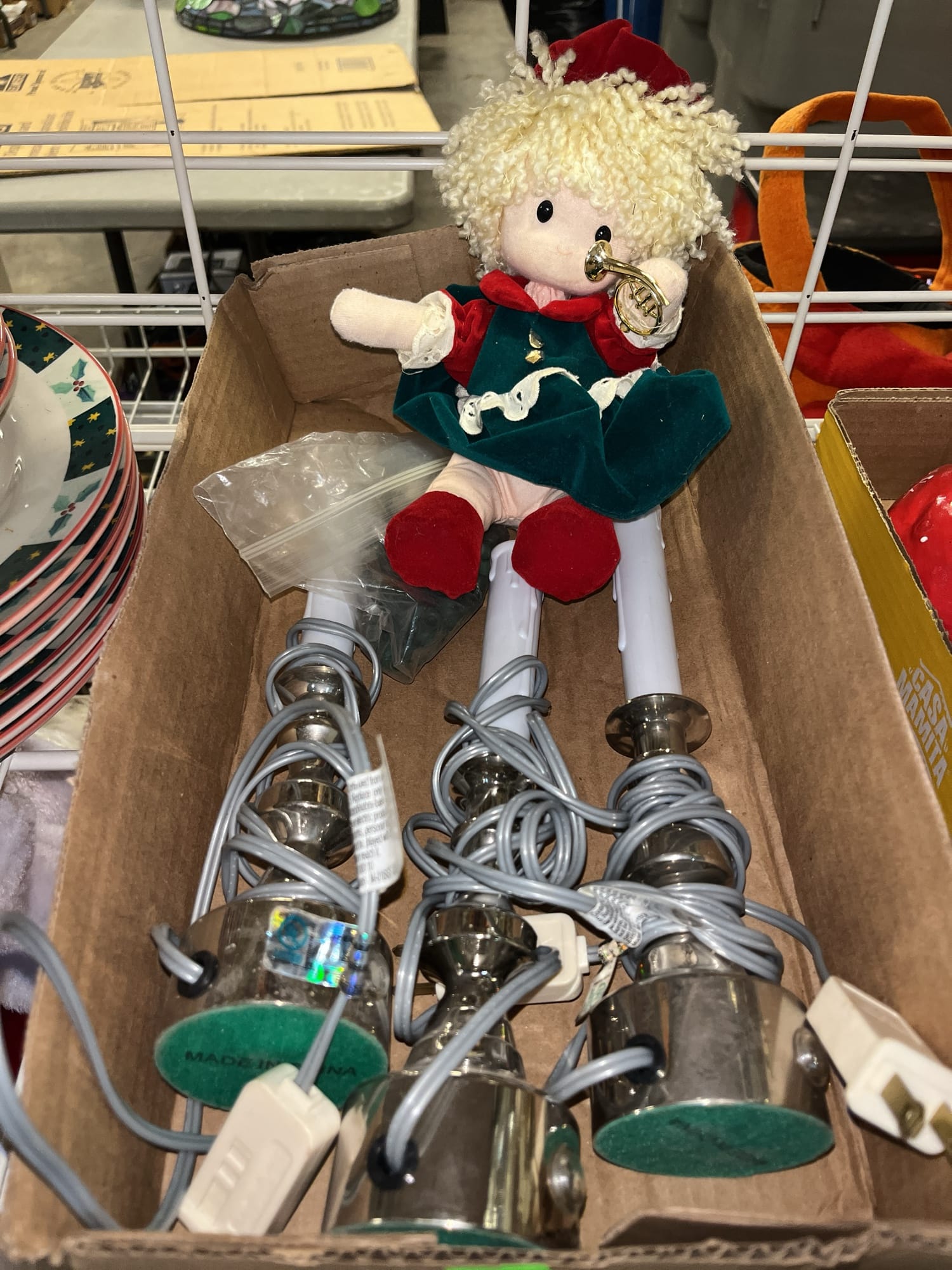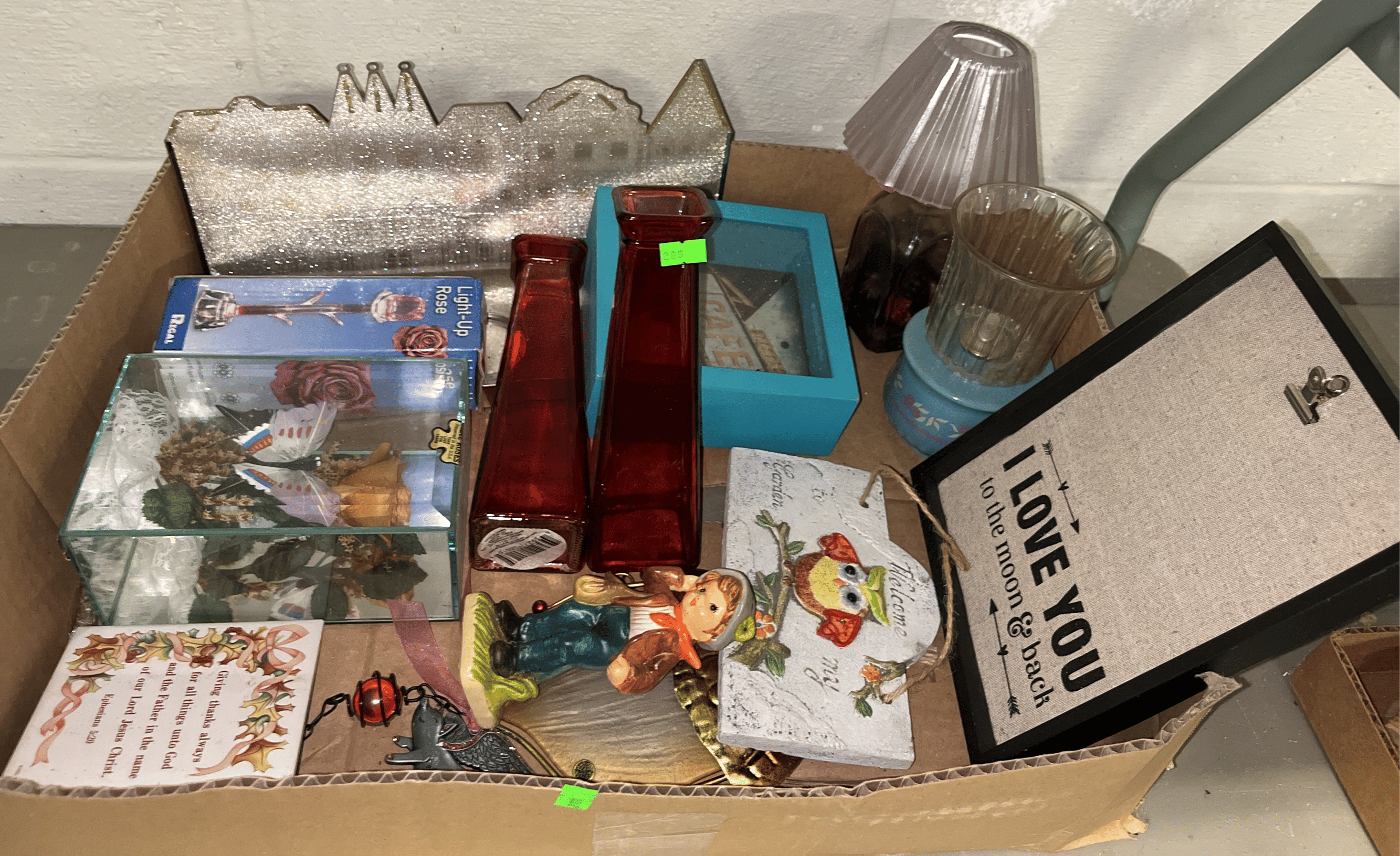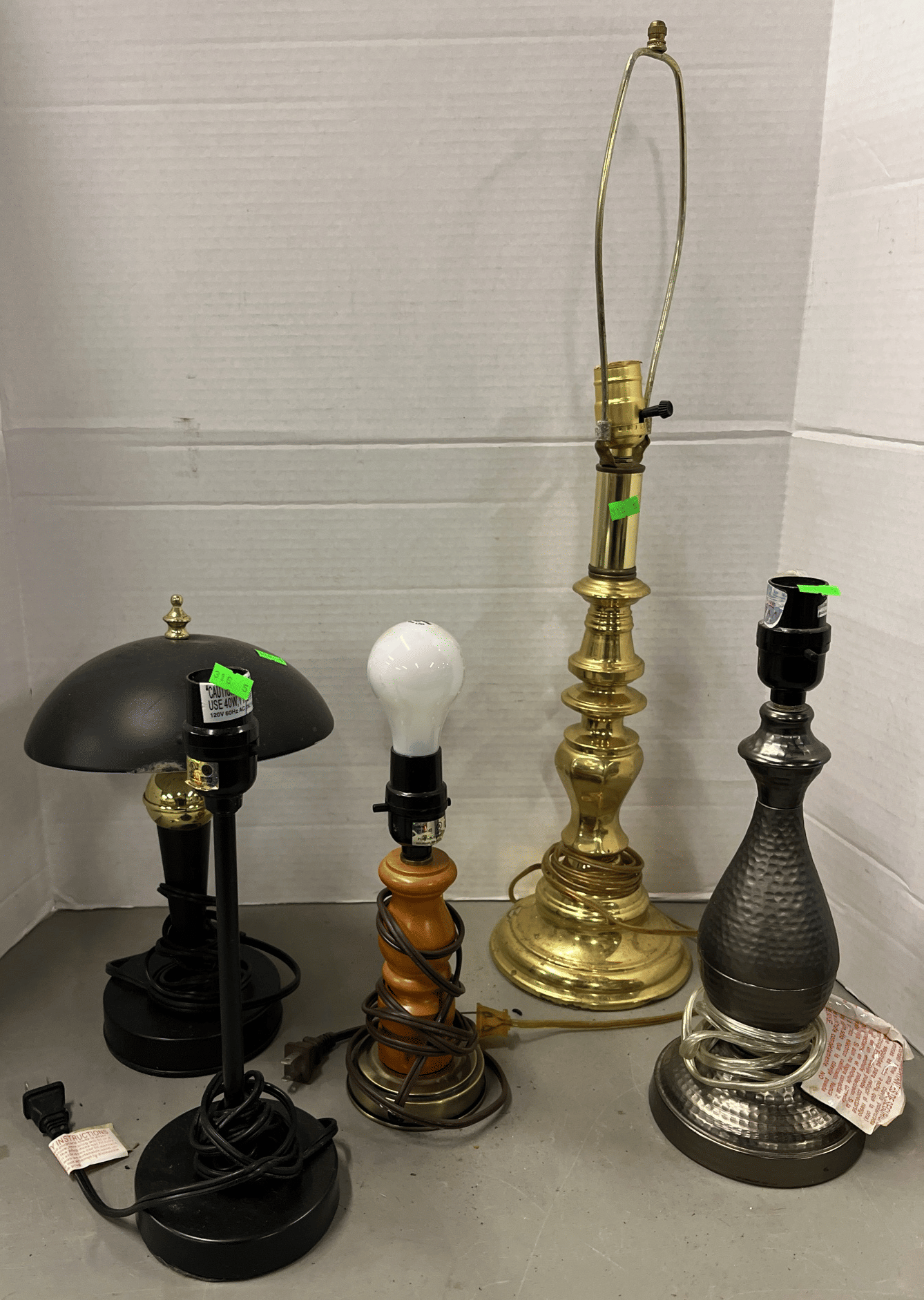 1164 Desk lamp assortment, mosaic Buddha fountain, shop light, snow scrapper