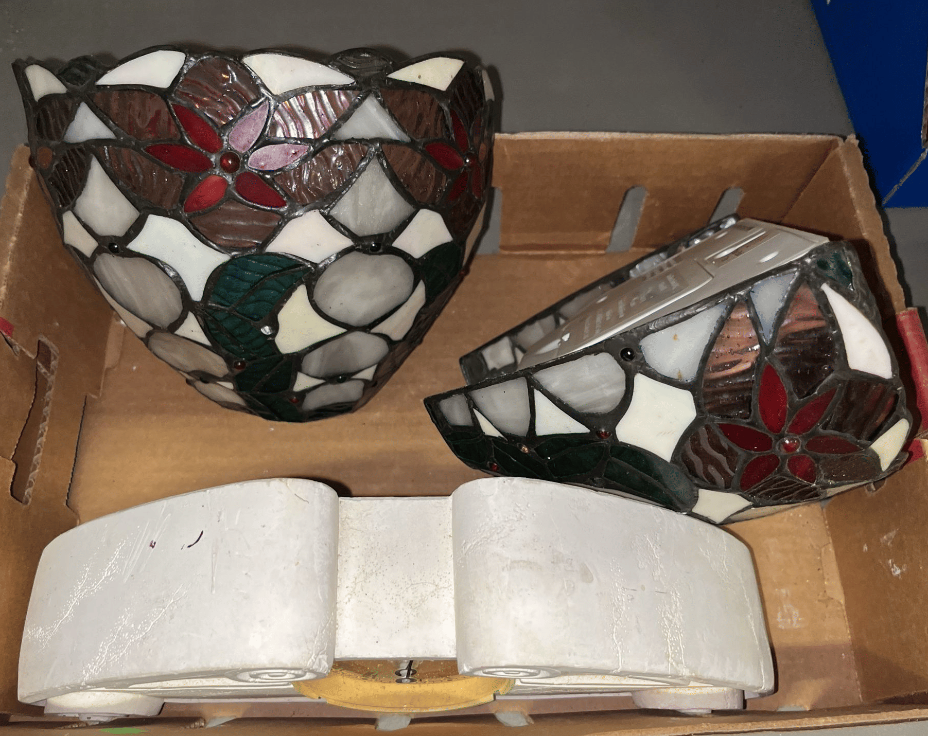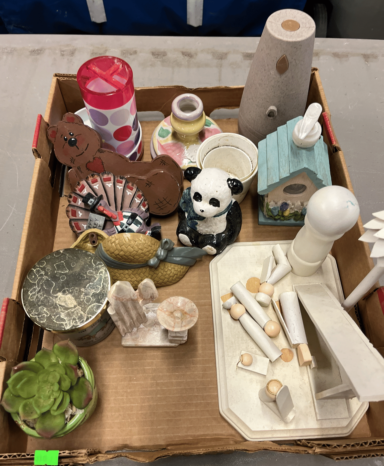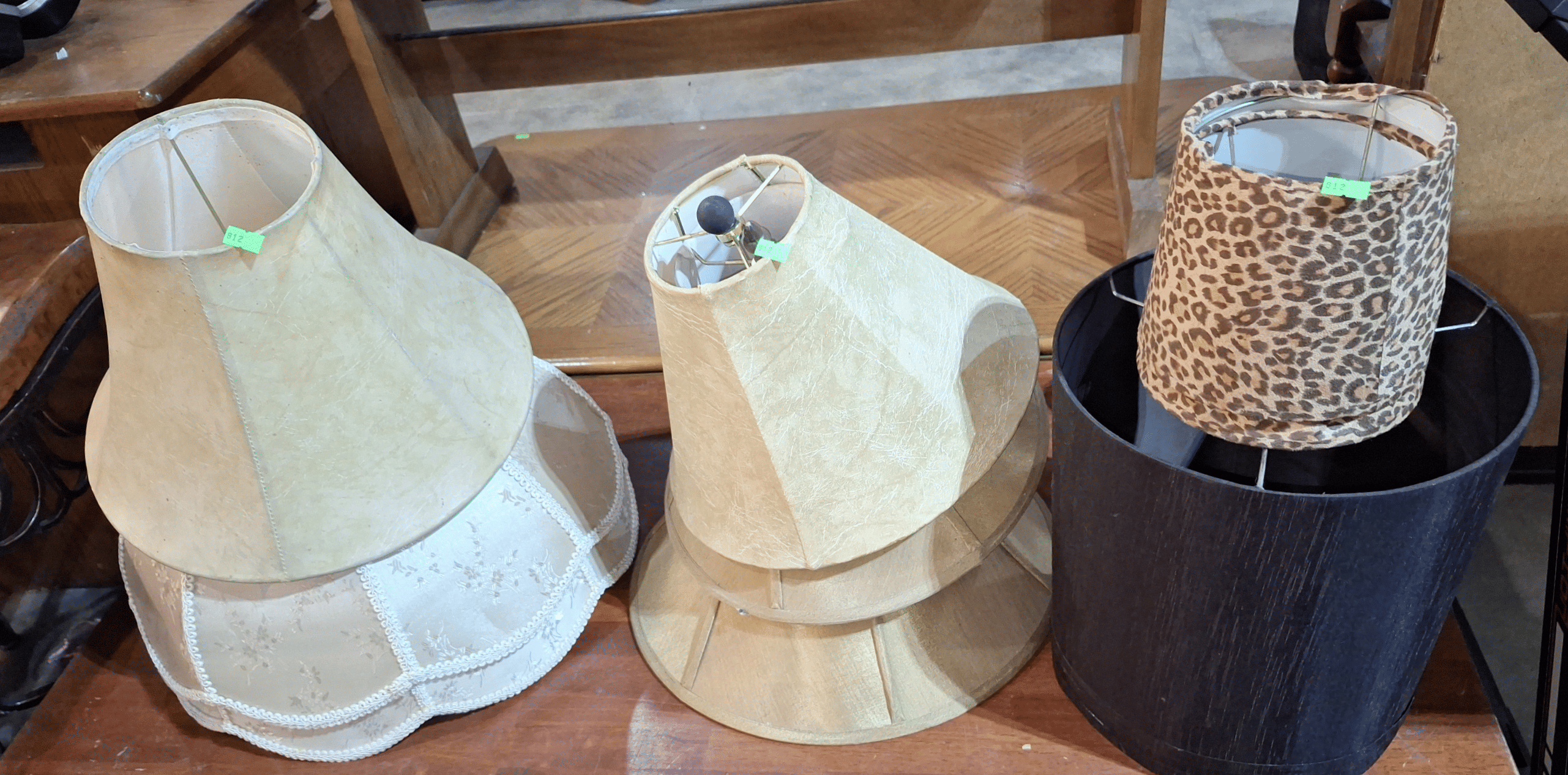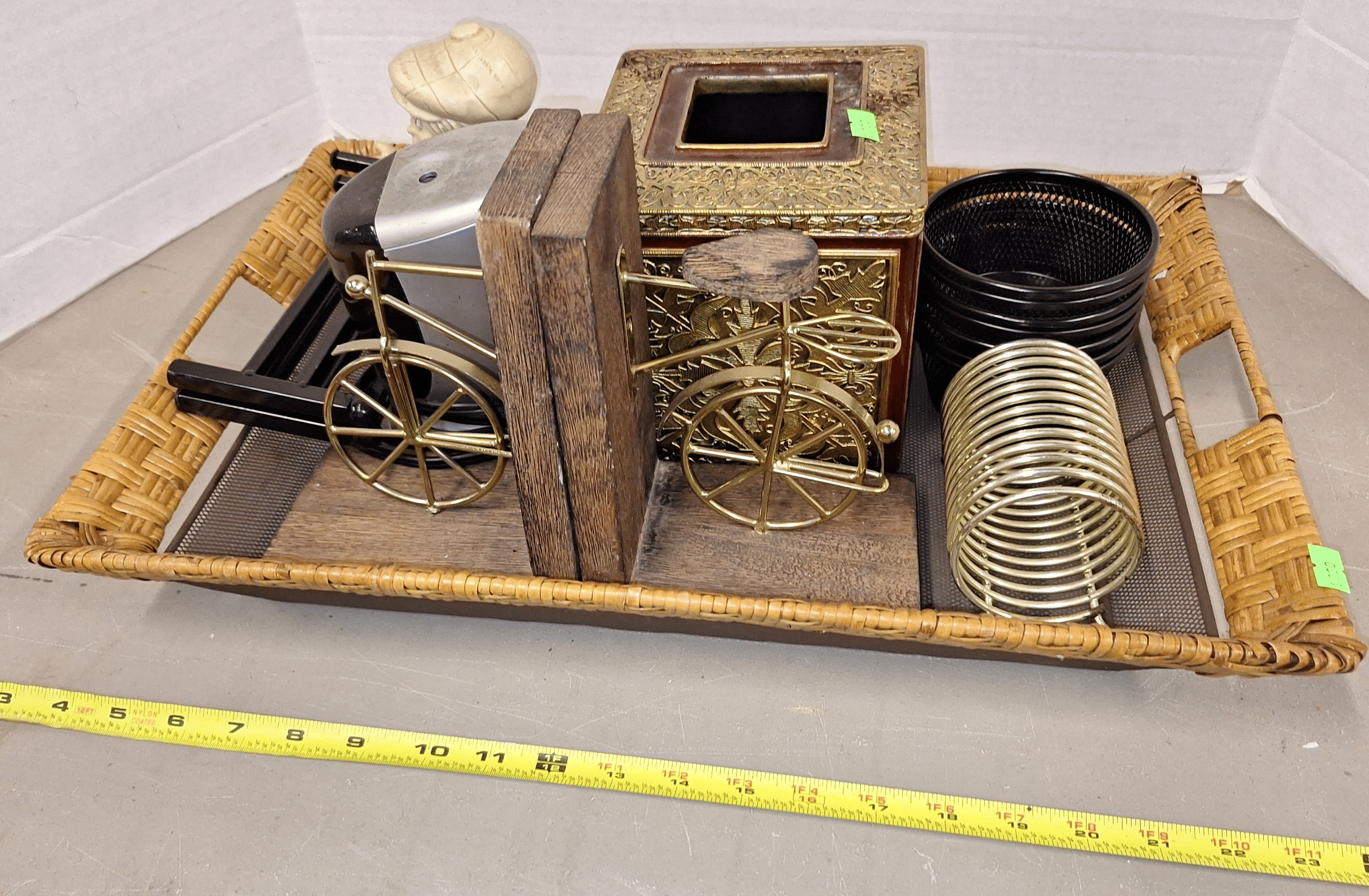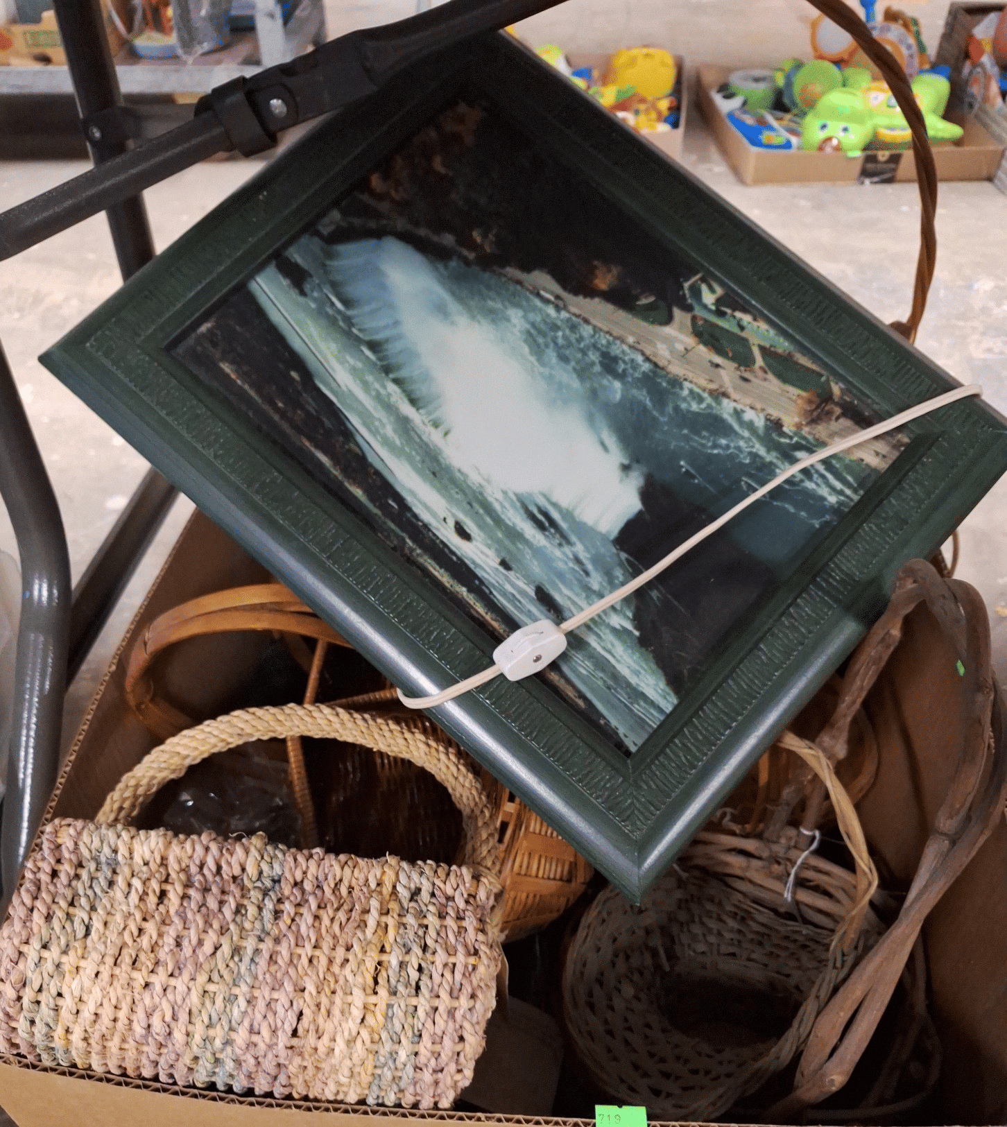 1164 Desk lamp assortment, mosaic Buddha fountain, shop light, snow scrapper