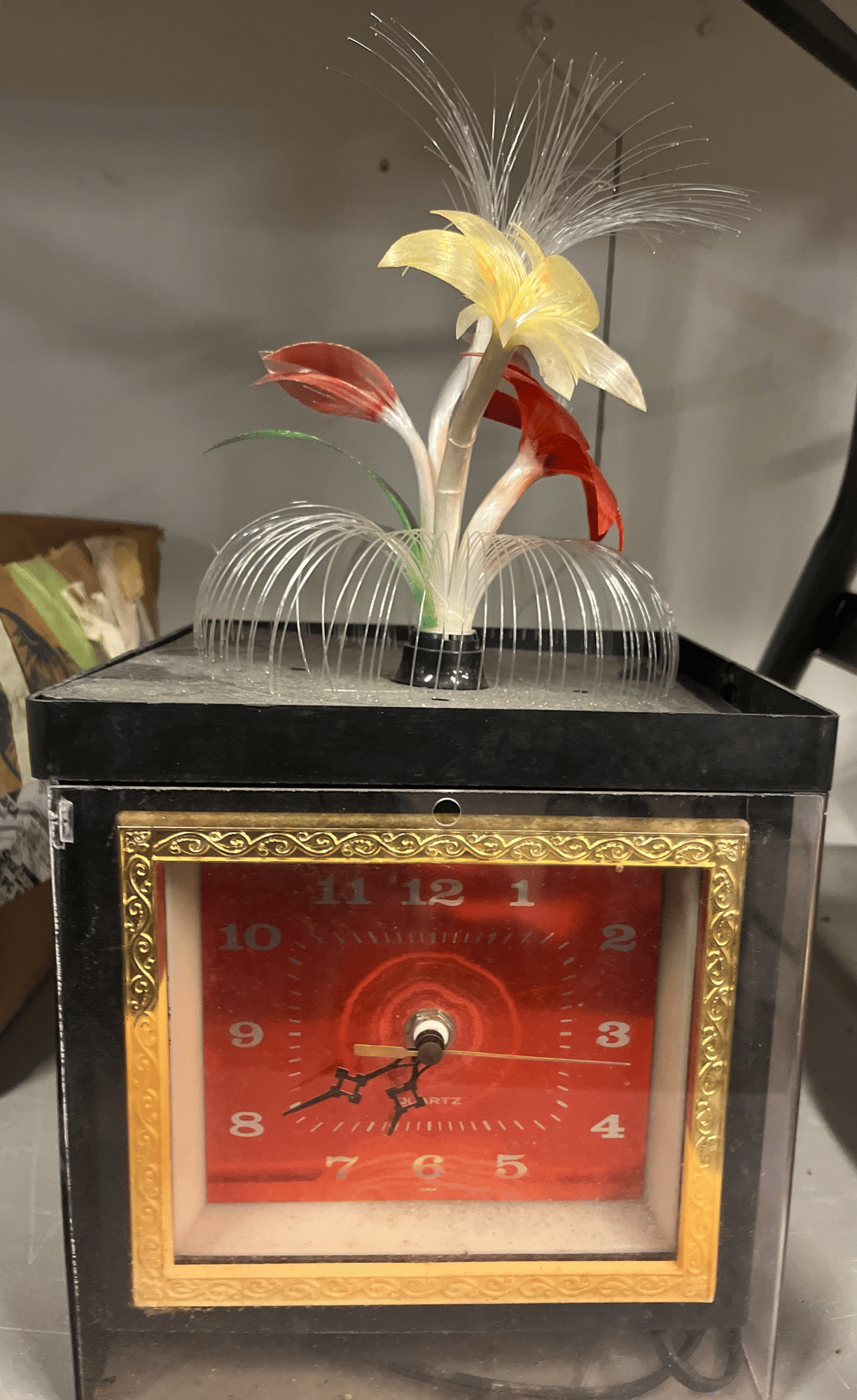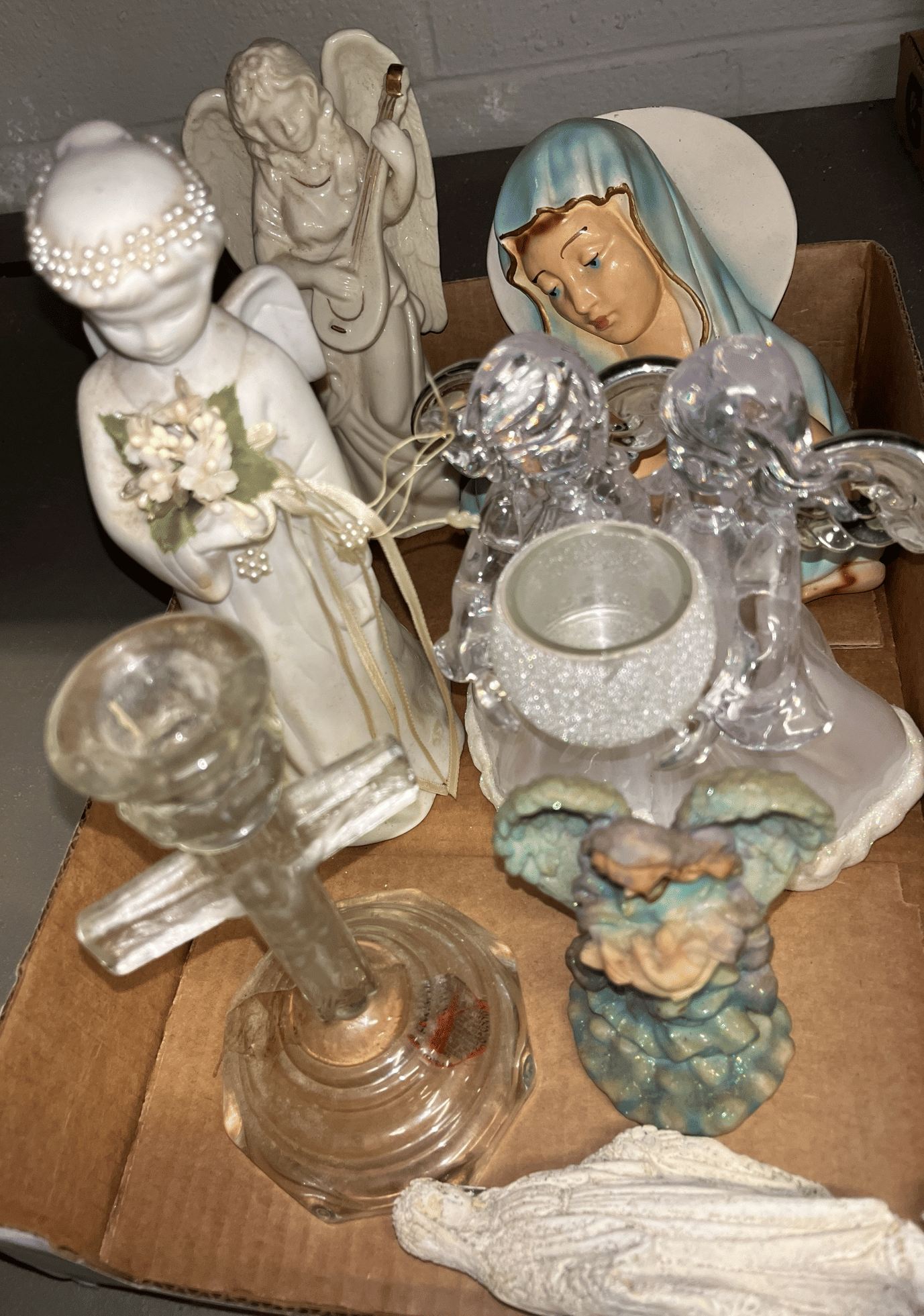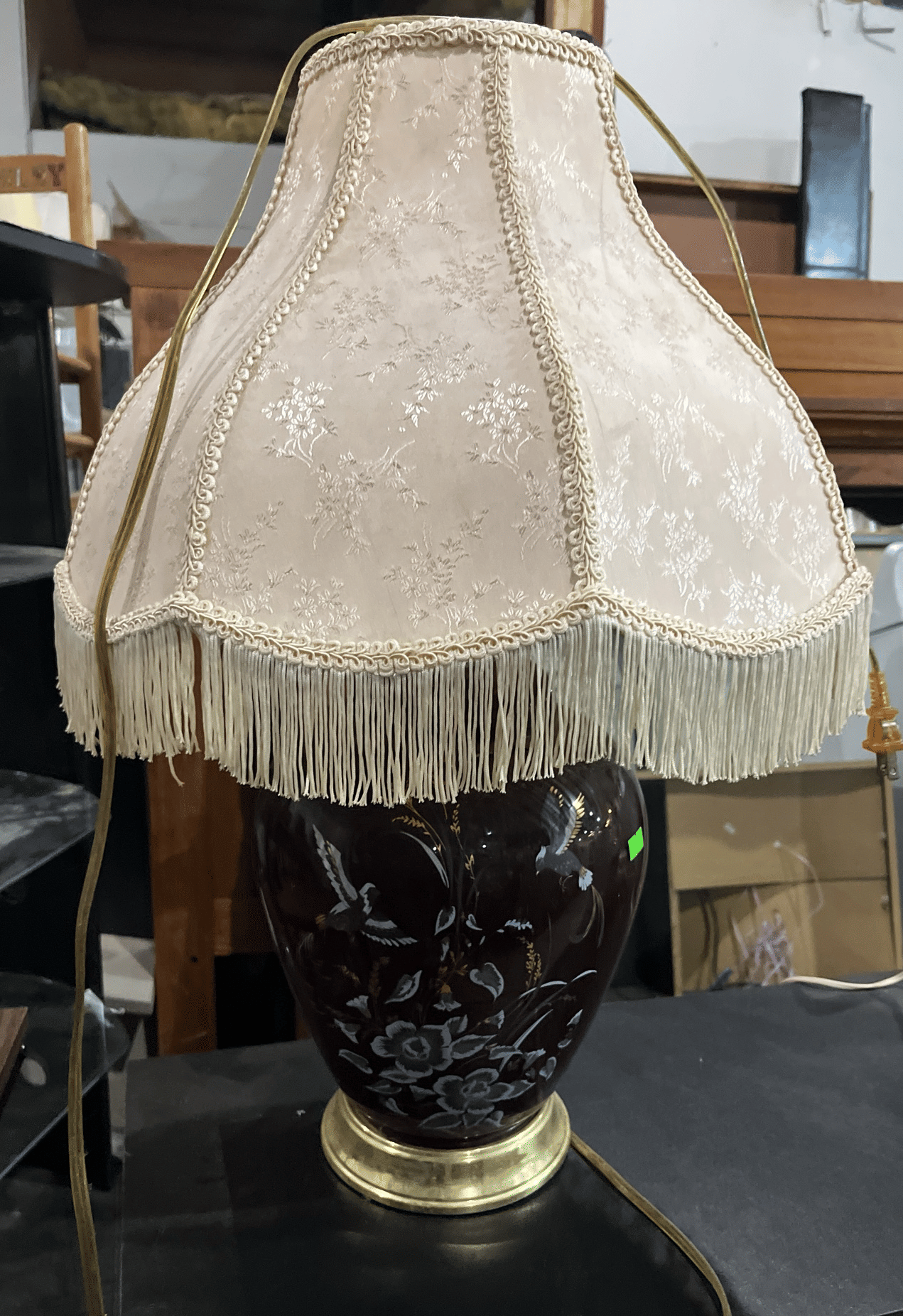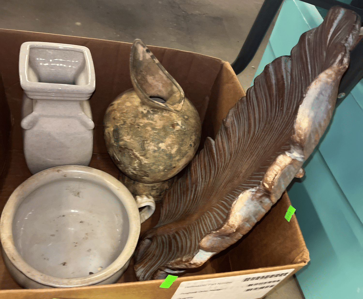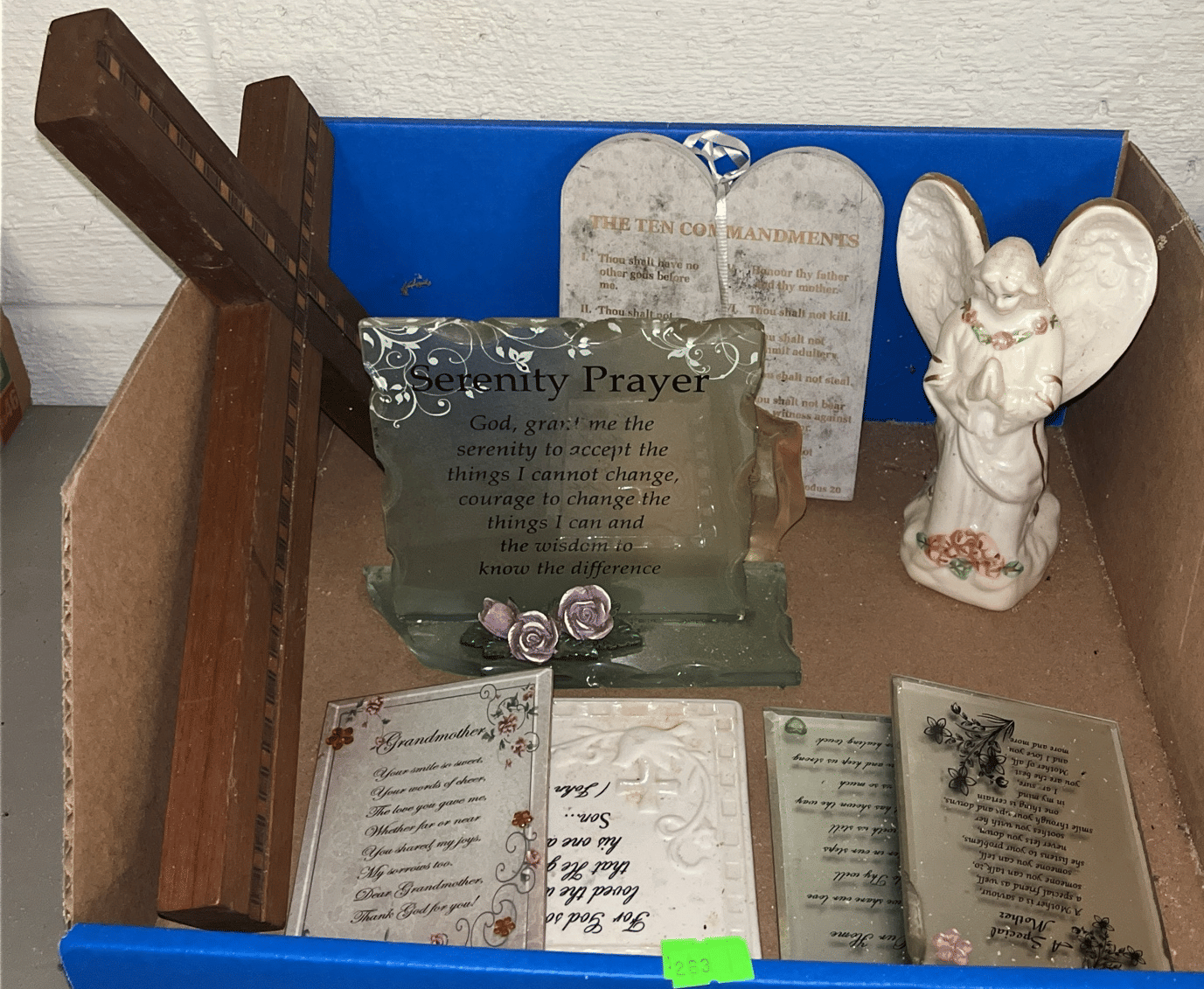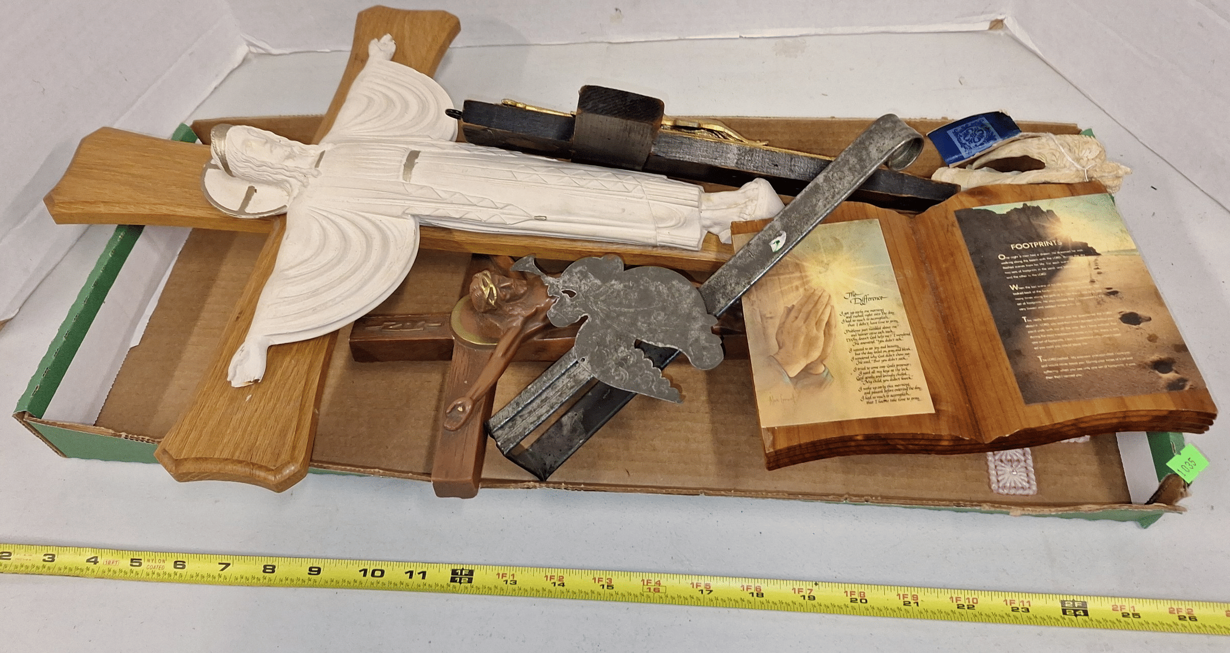 1164 Desk lamp assortment, mosaic Buddha fountain, shop light, snow scrapper
