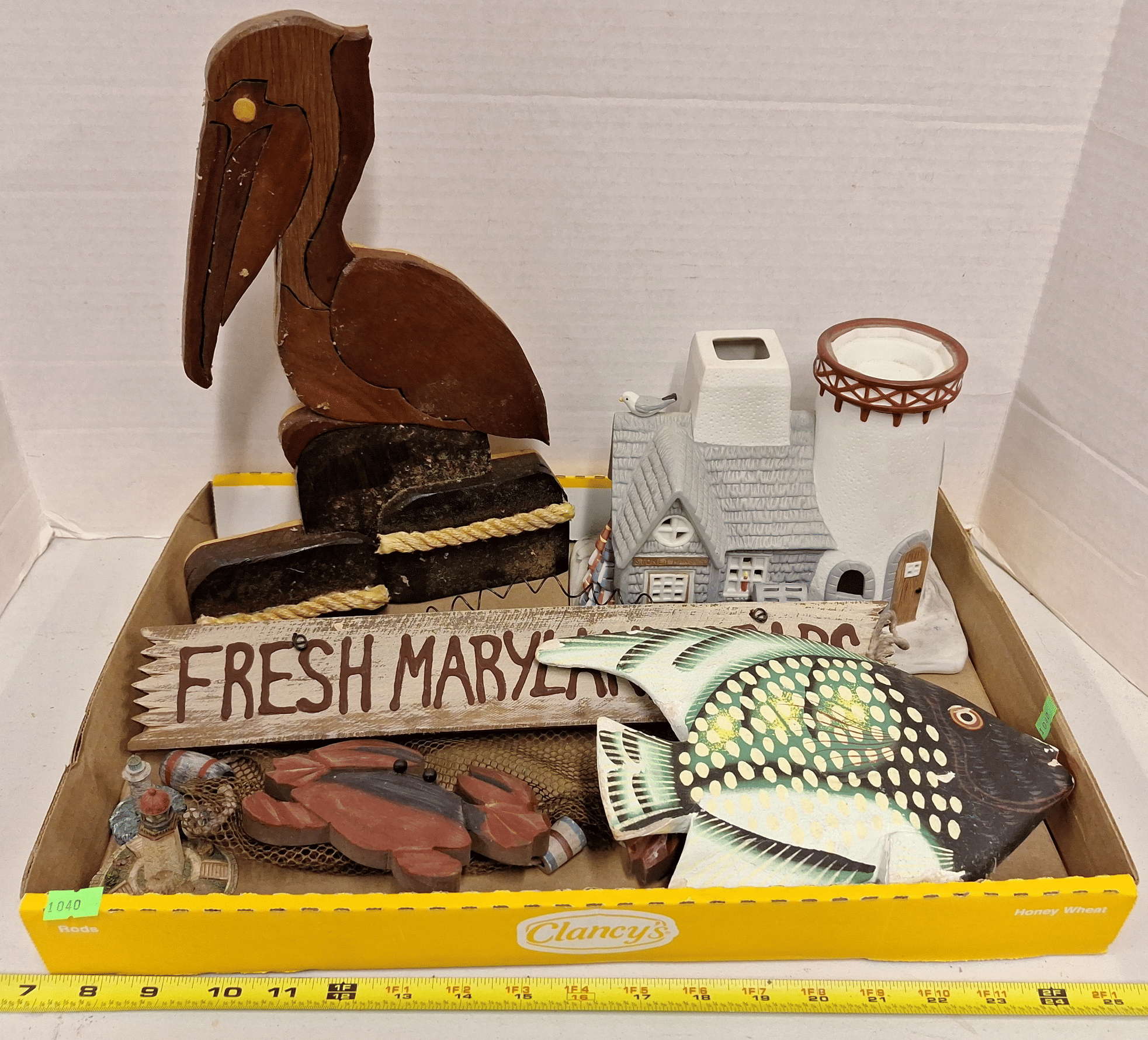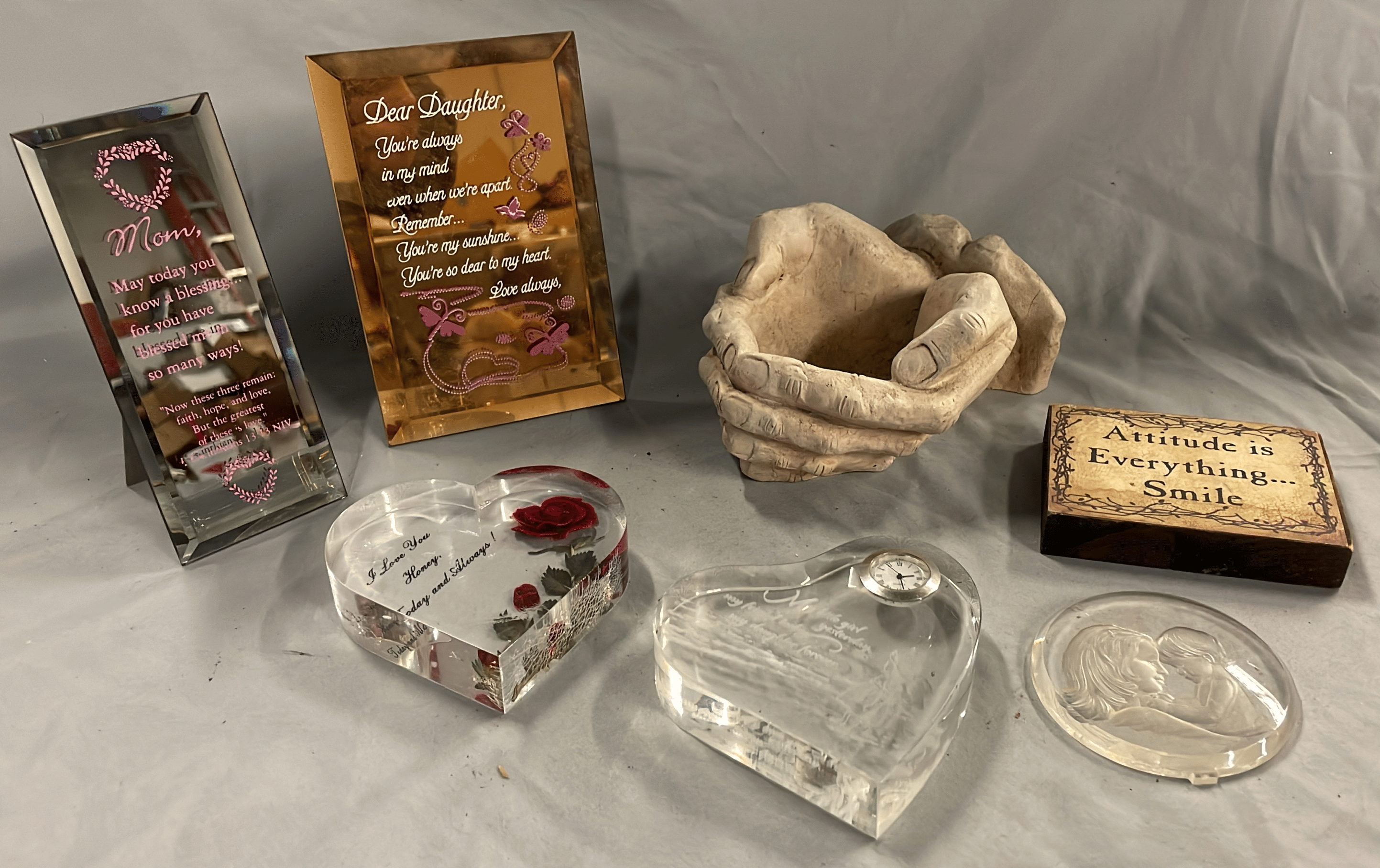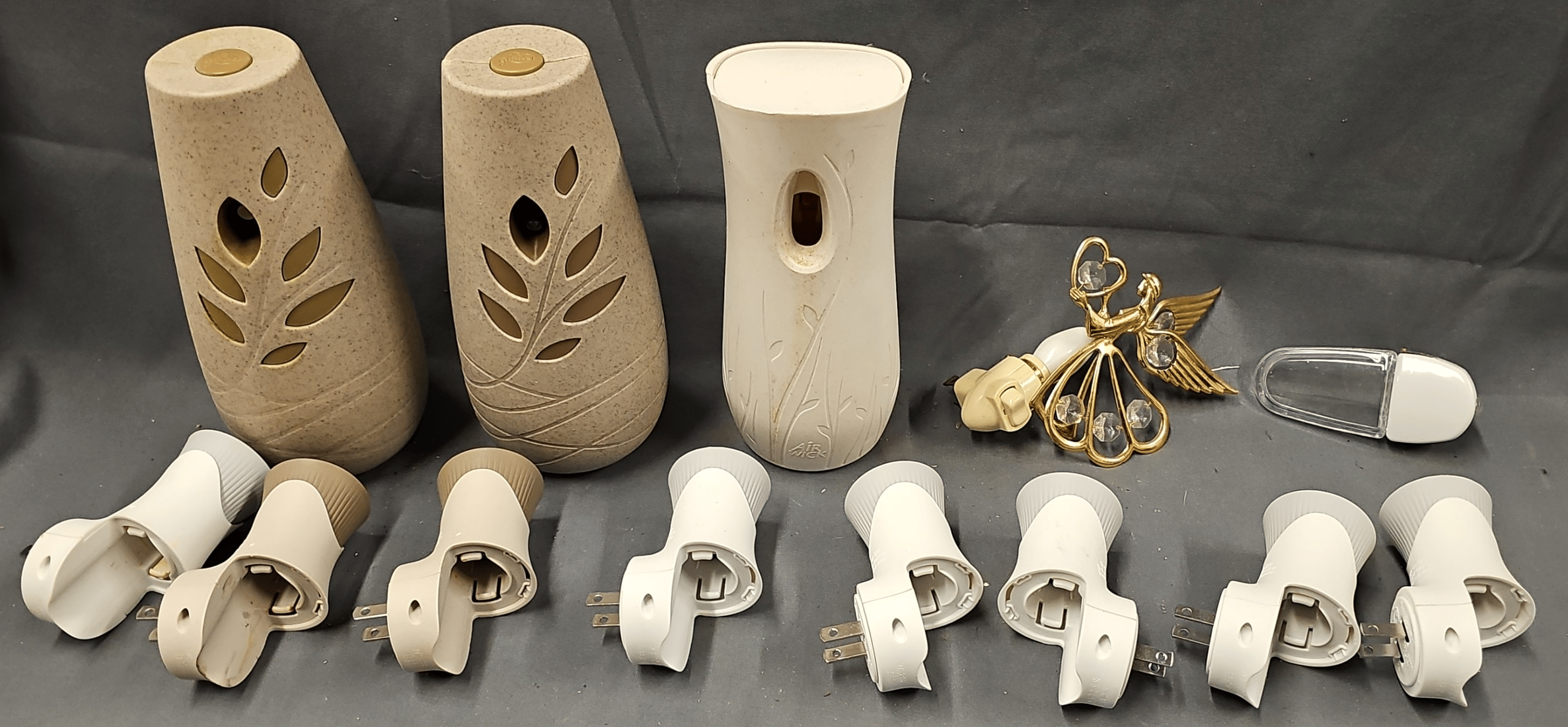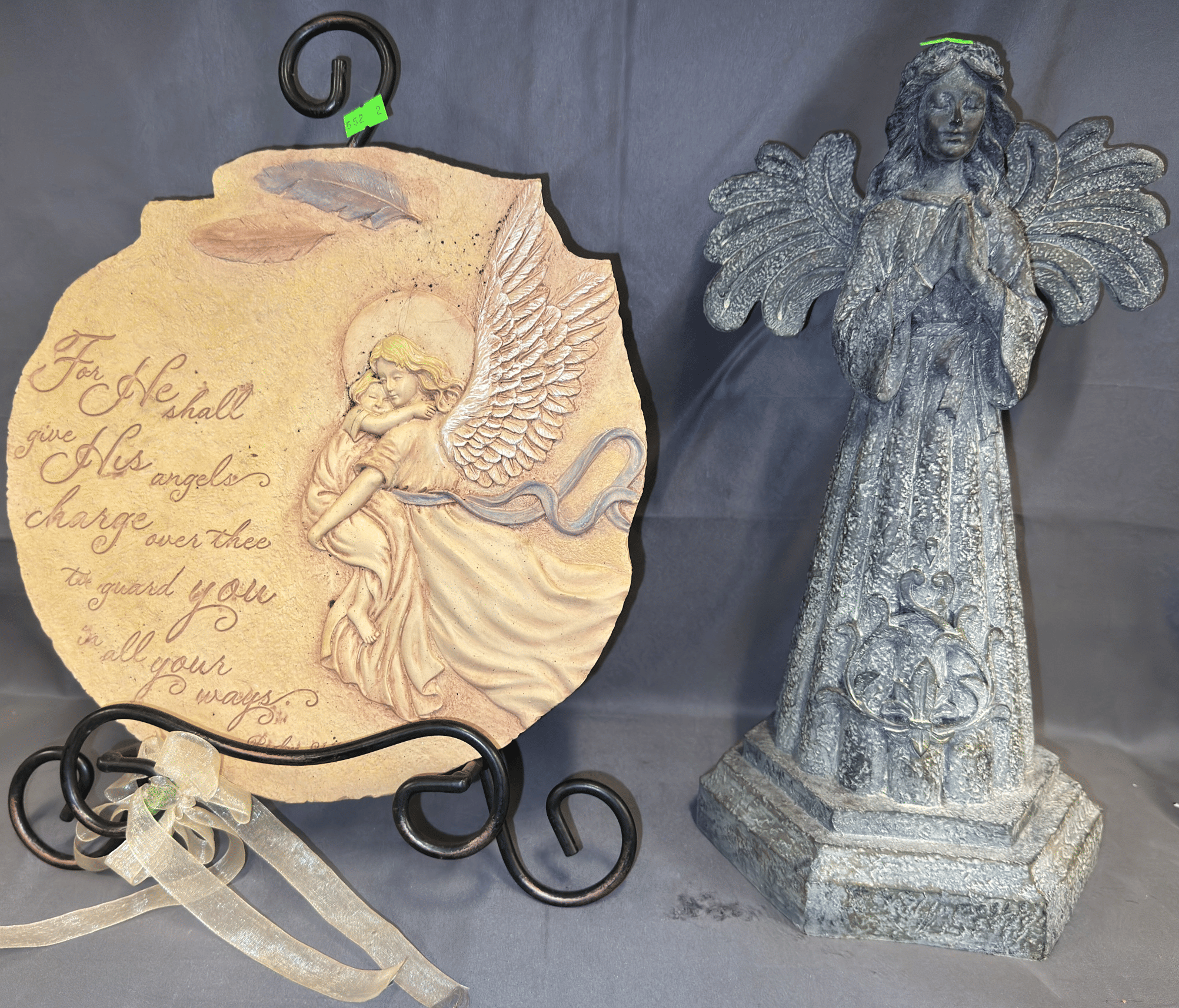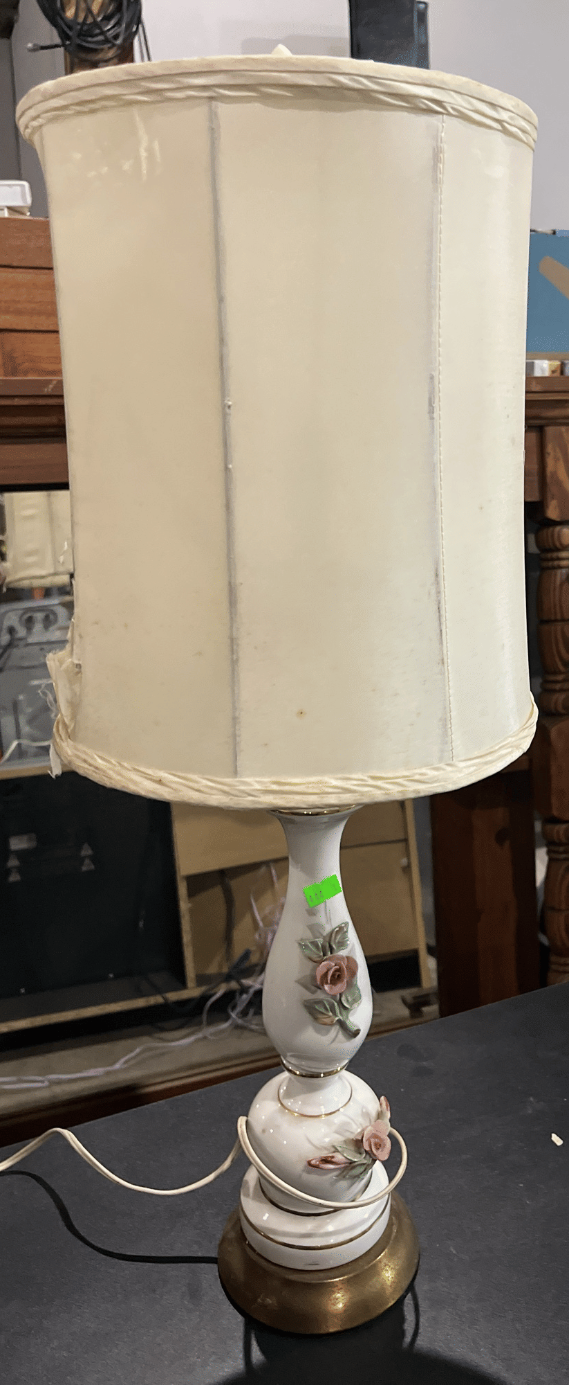 1164 Desk lamp assortment, mosaic Buddha fountain, shop light, snow scrapper