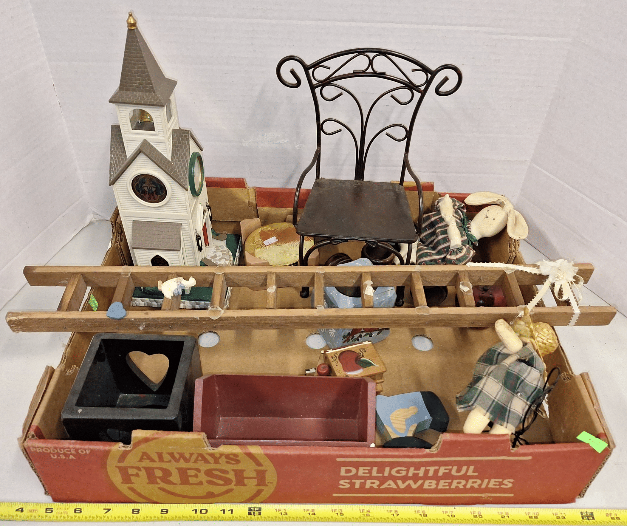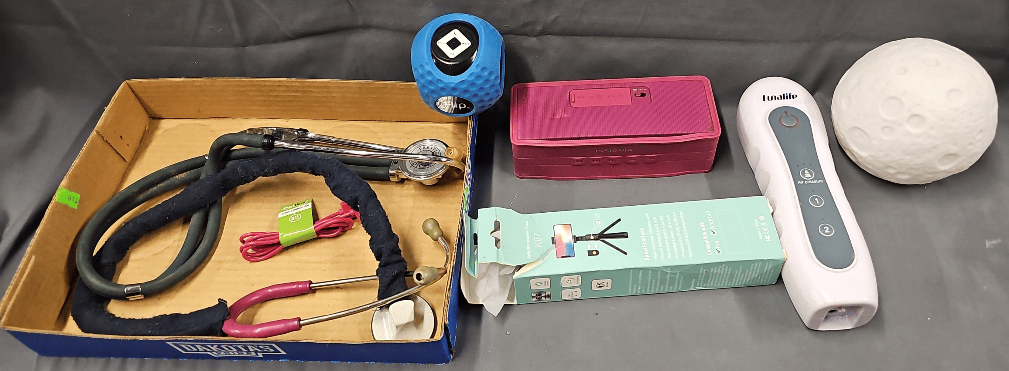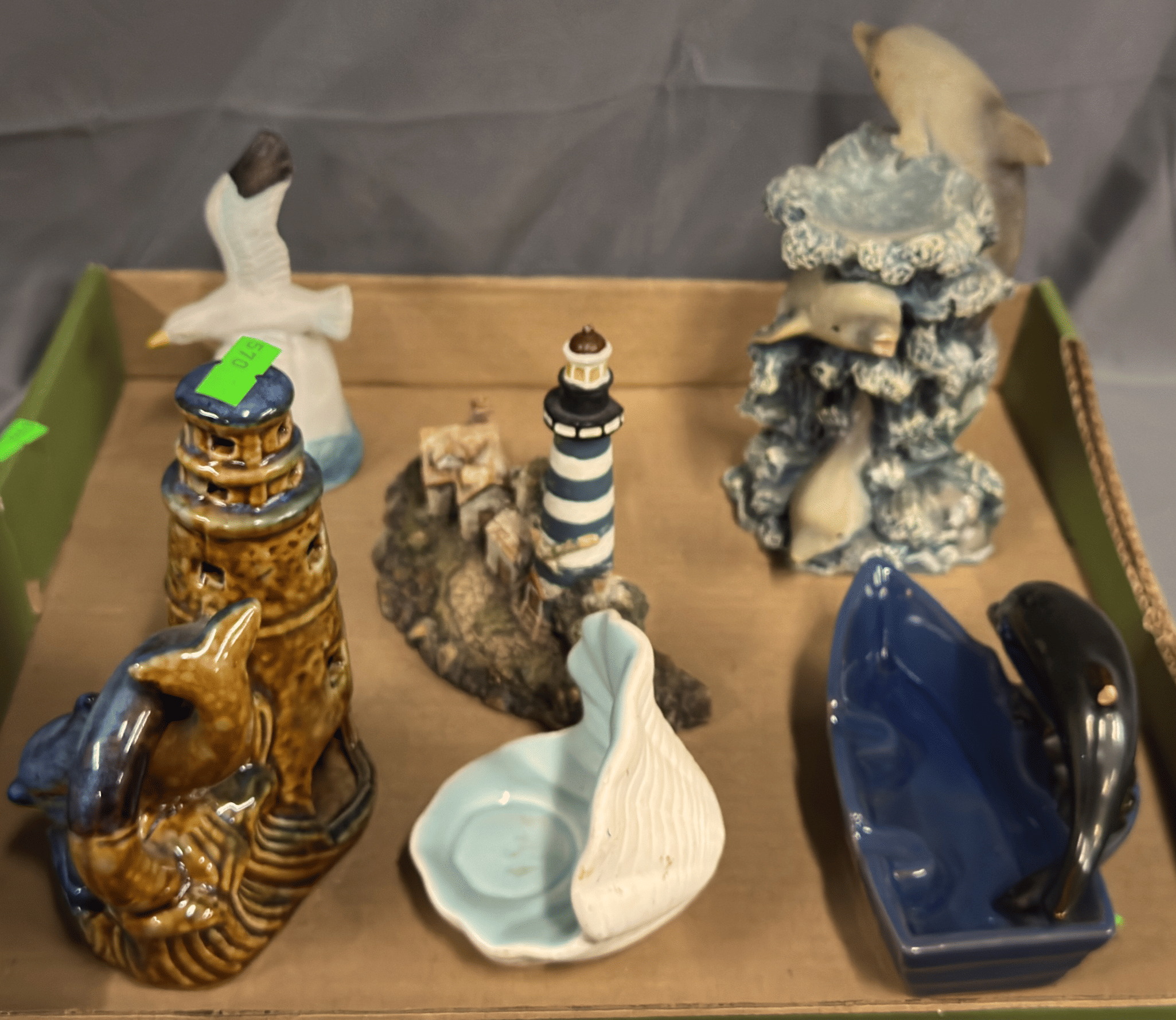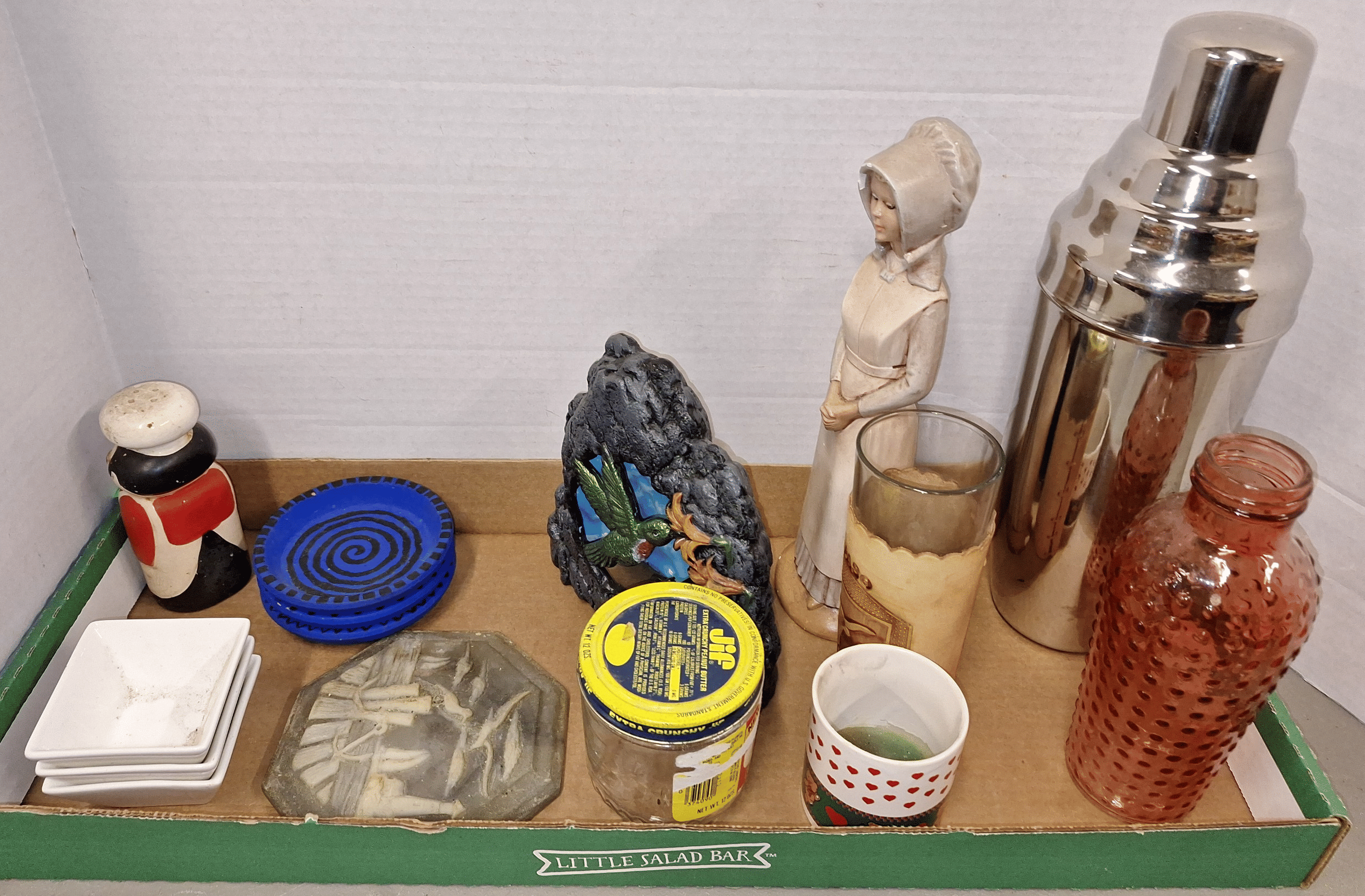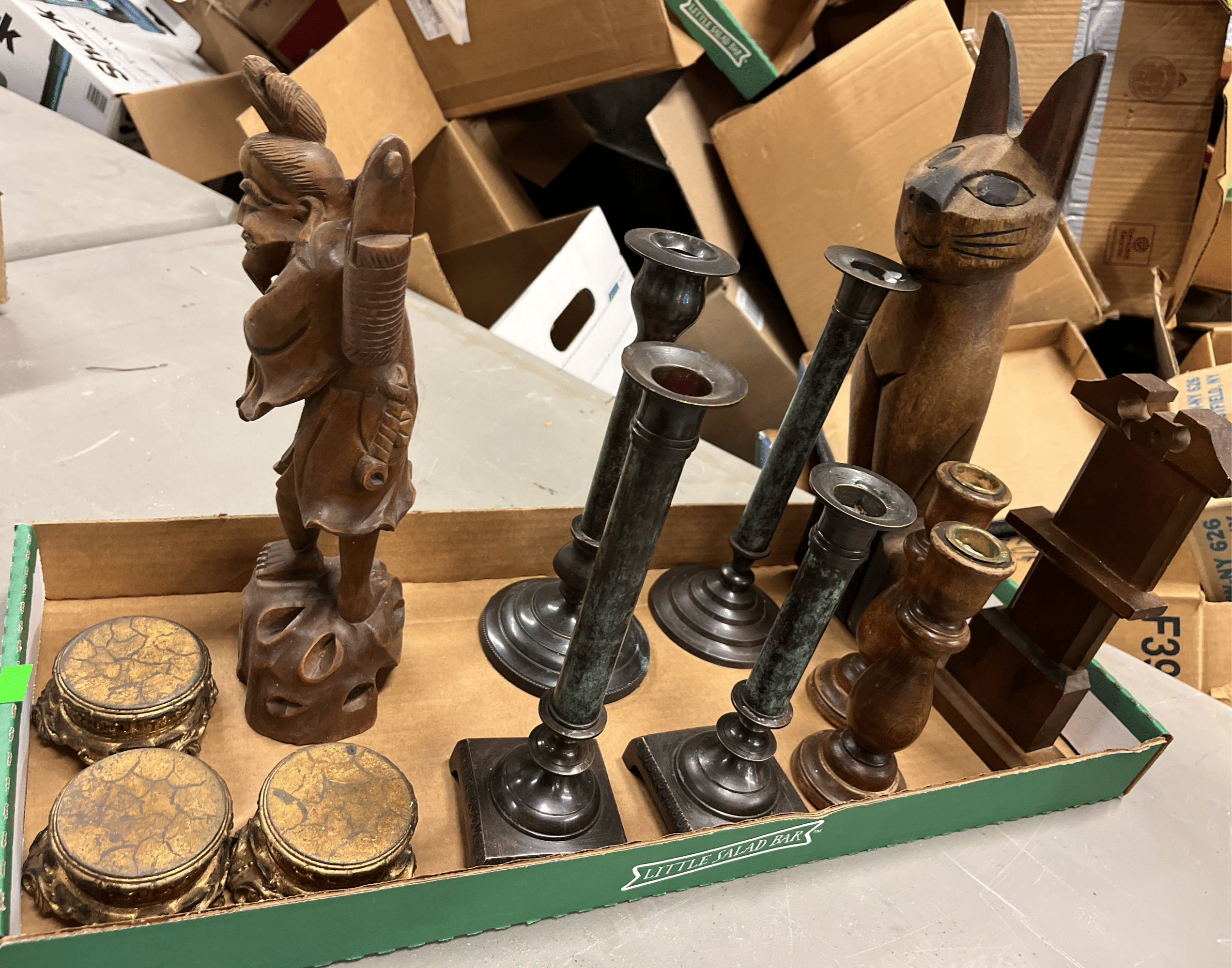 1164 Desk lamp assortment, mosaic Buddha fountain, shop light, snow scrapper