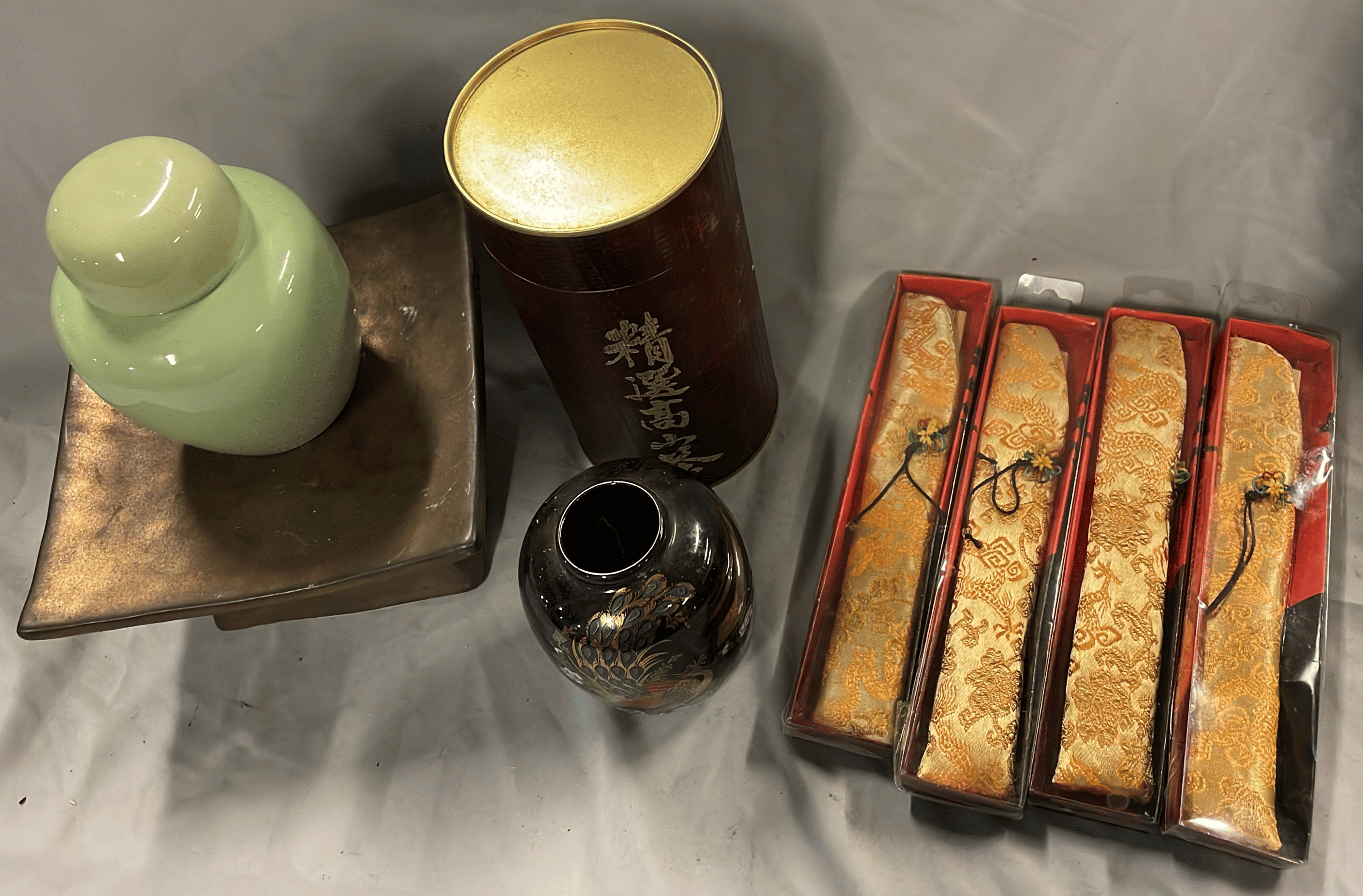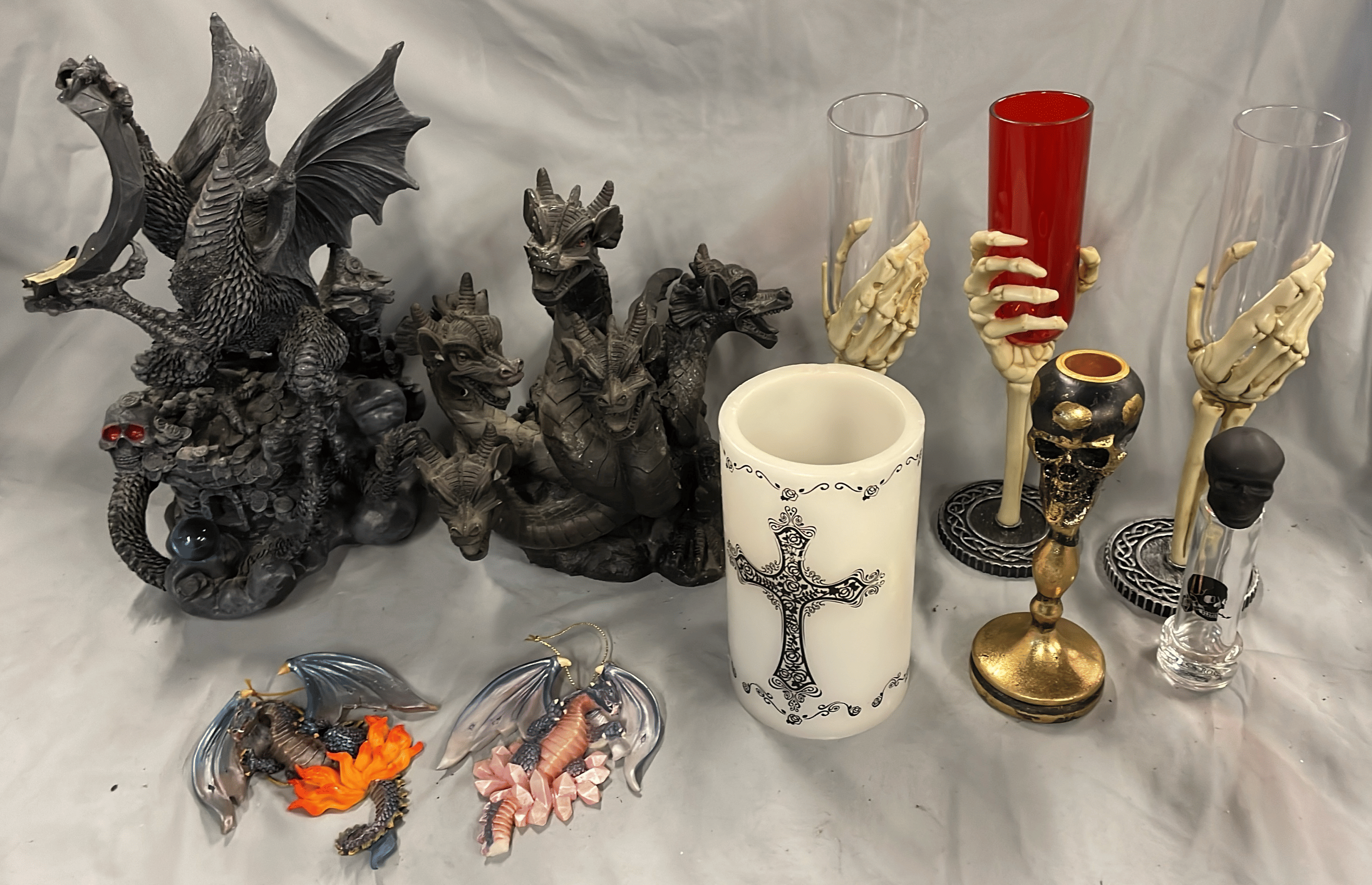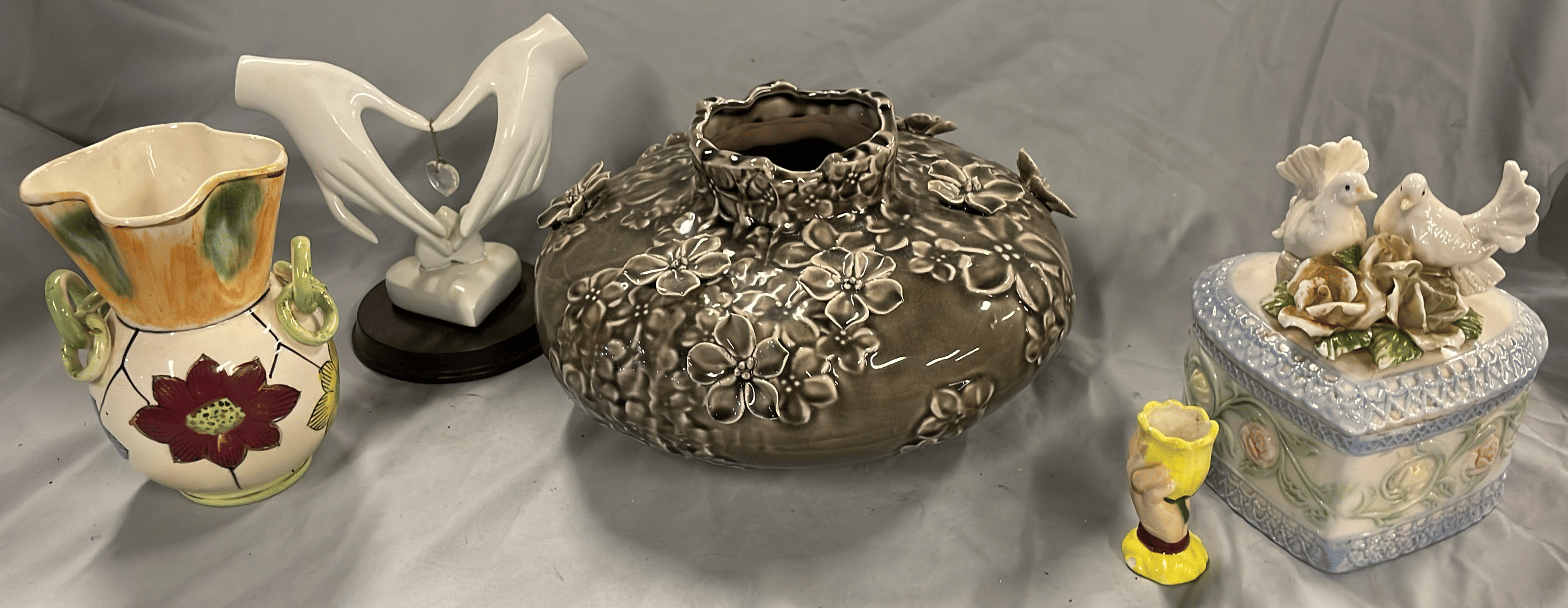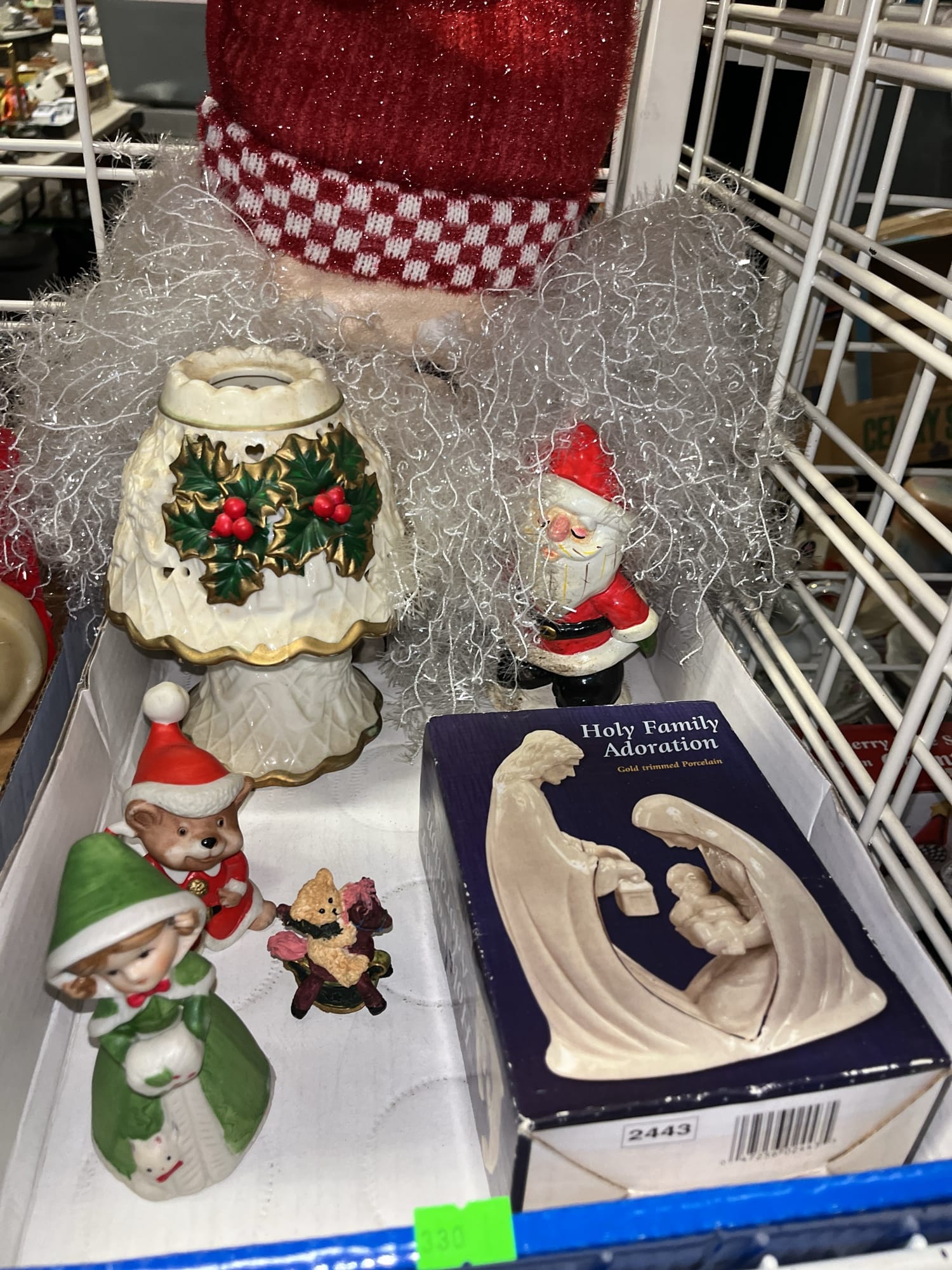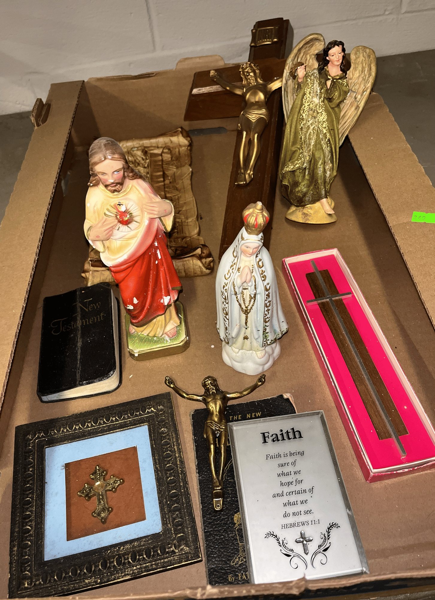1164 Desk lamp assortment, mosaic Buddha fountain, shop light, snow scrapper
