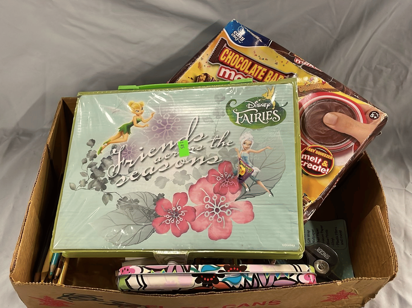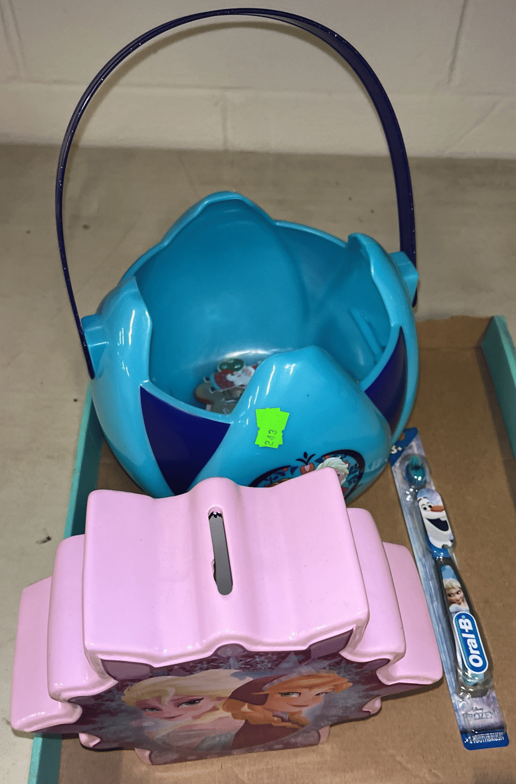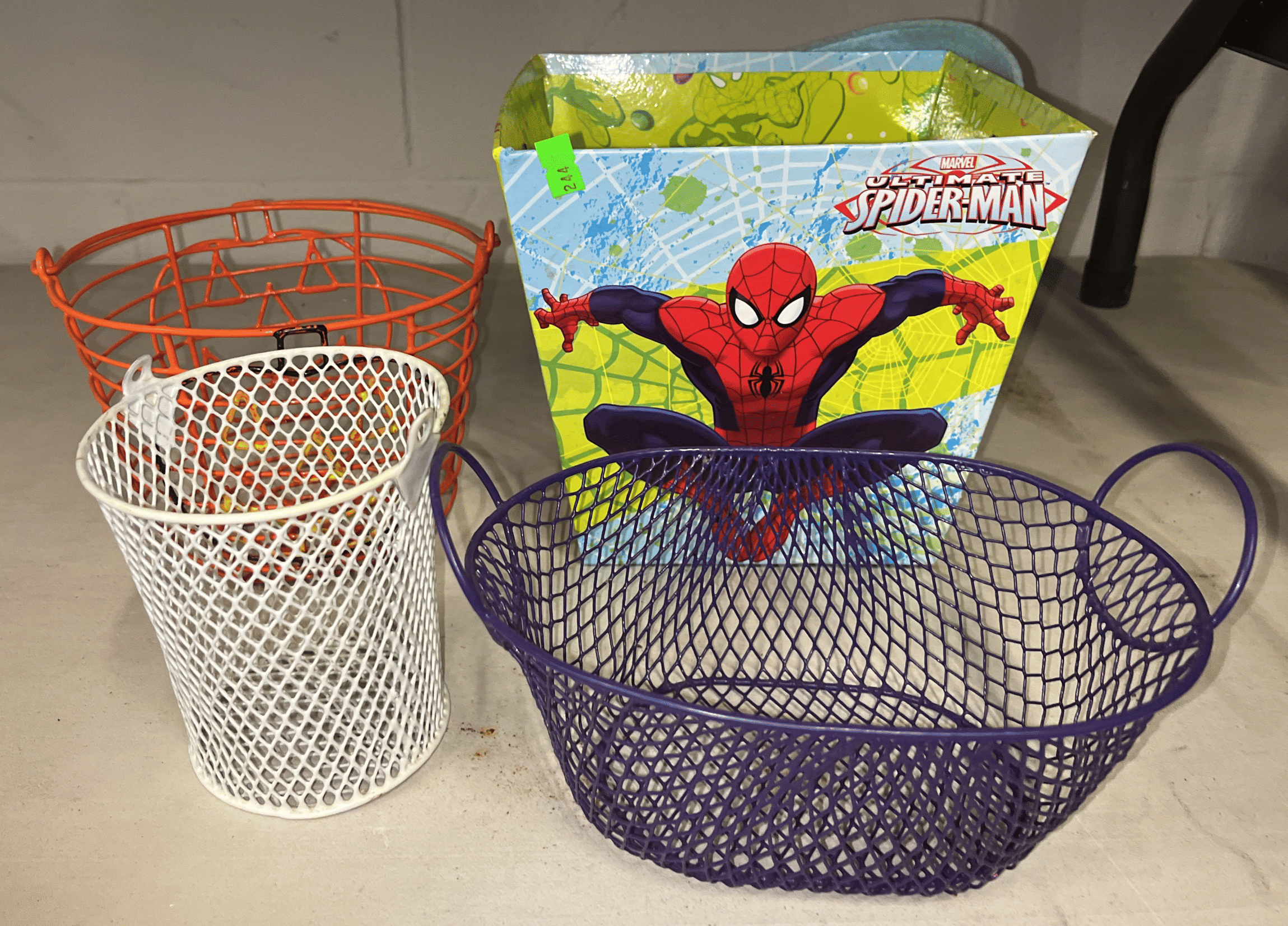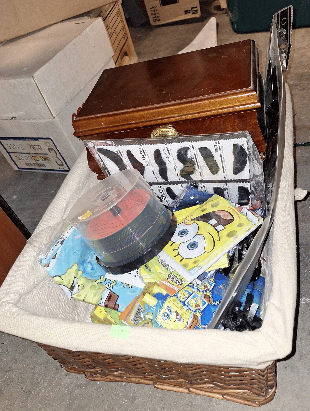 1157 Basket, jewelry box, CDs and party supplies inc. Spongebob decor