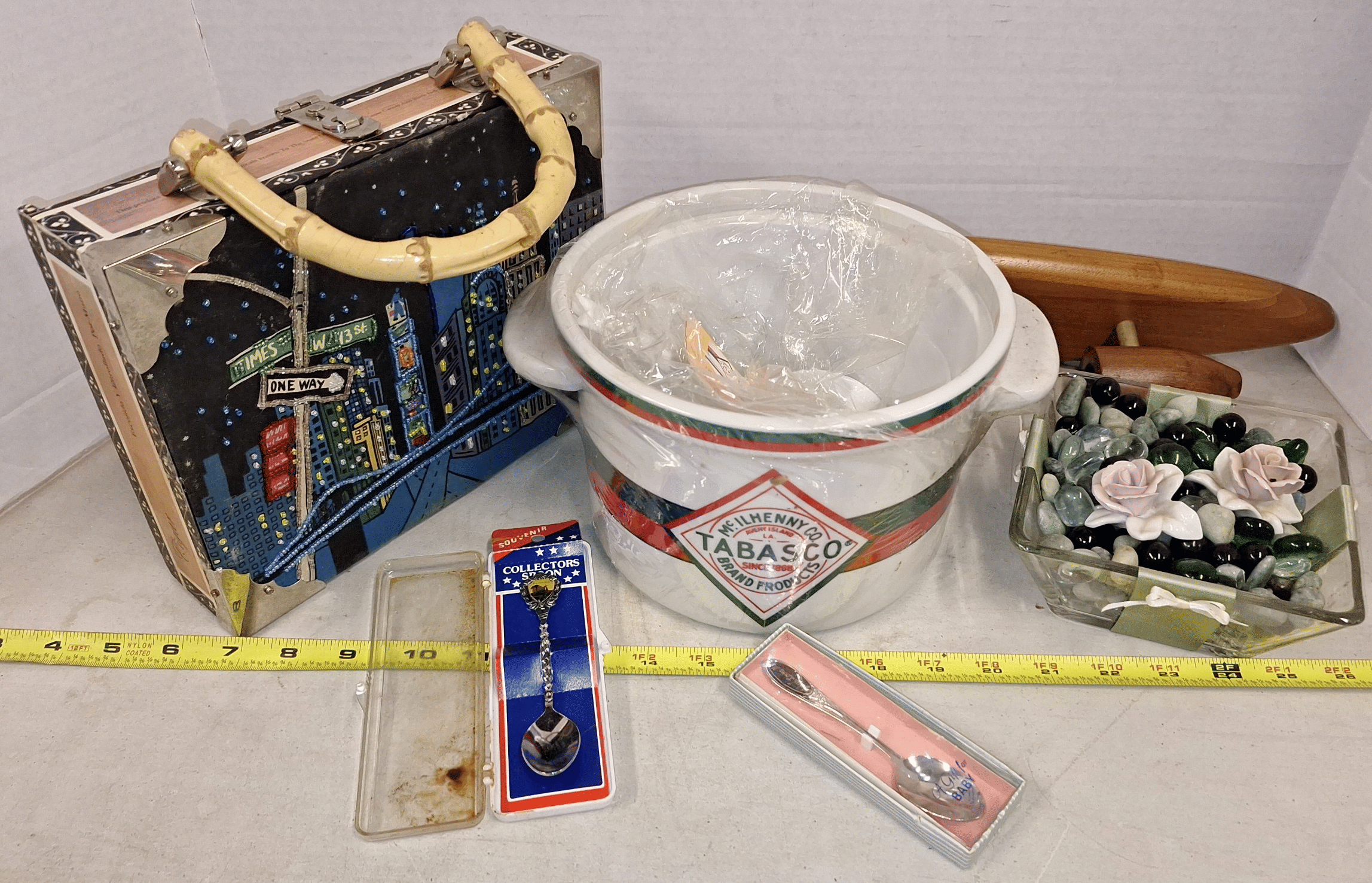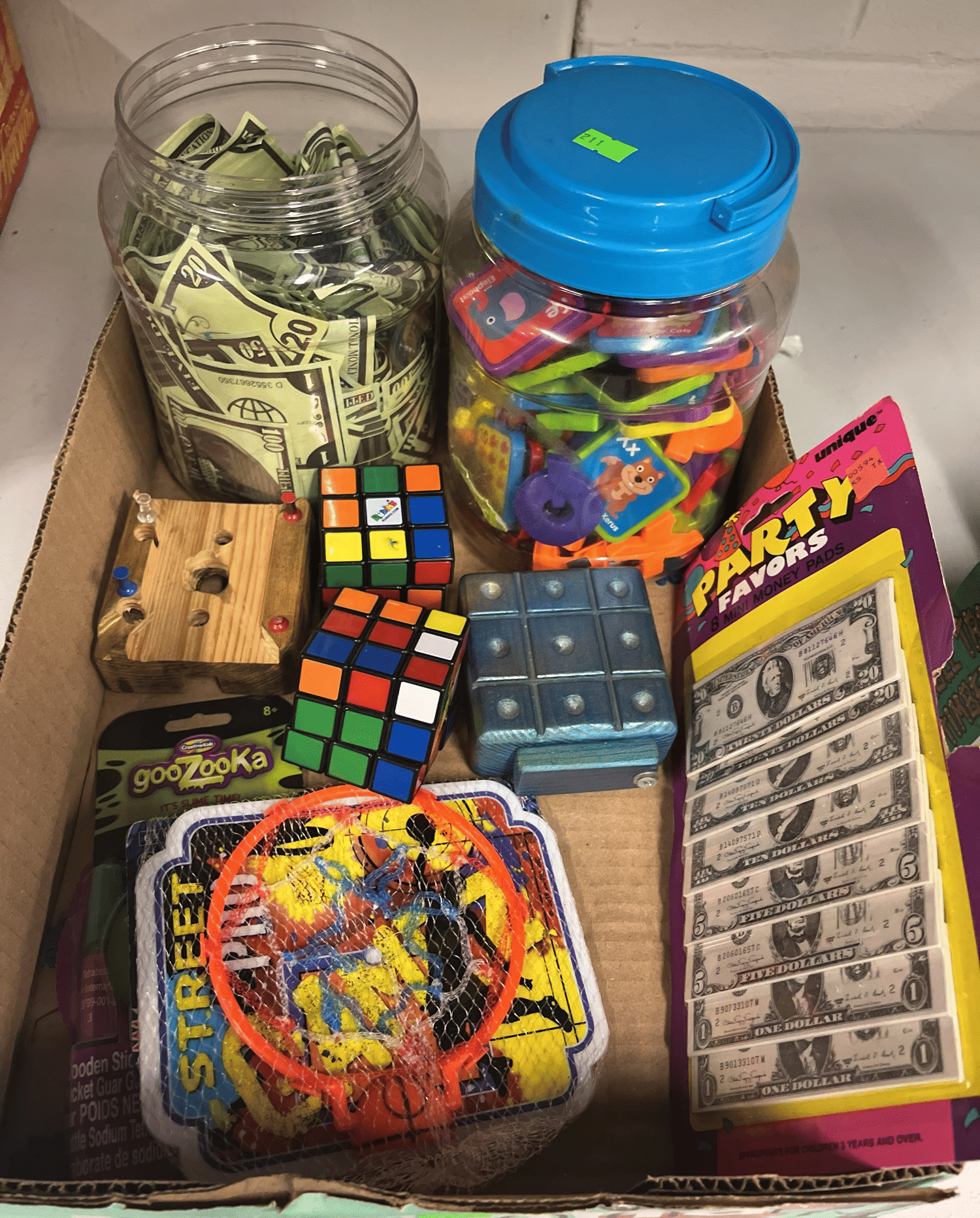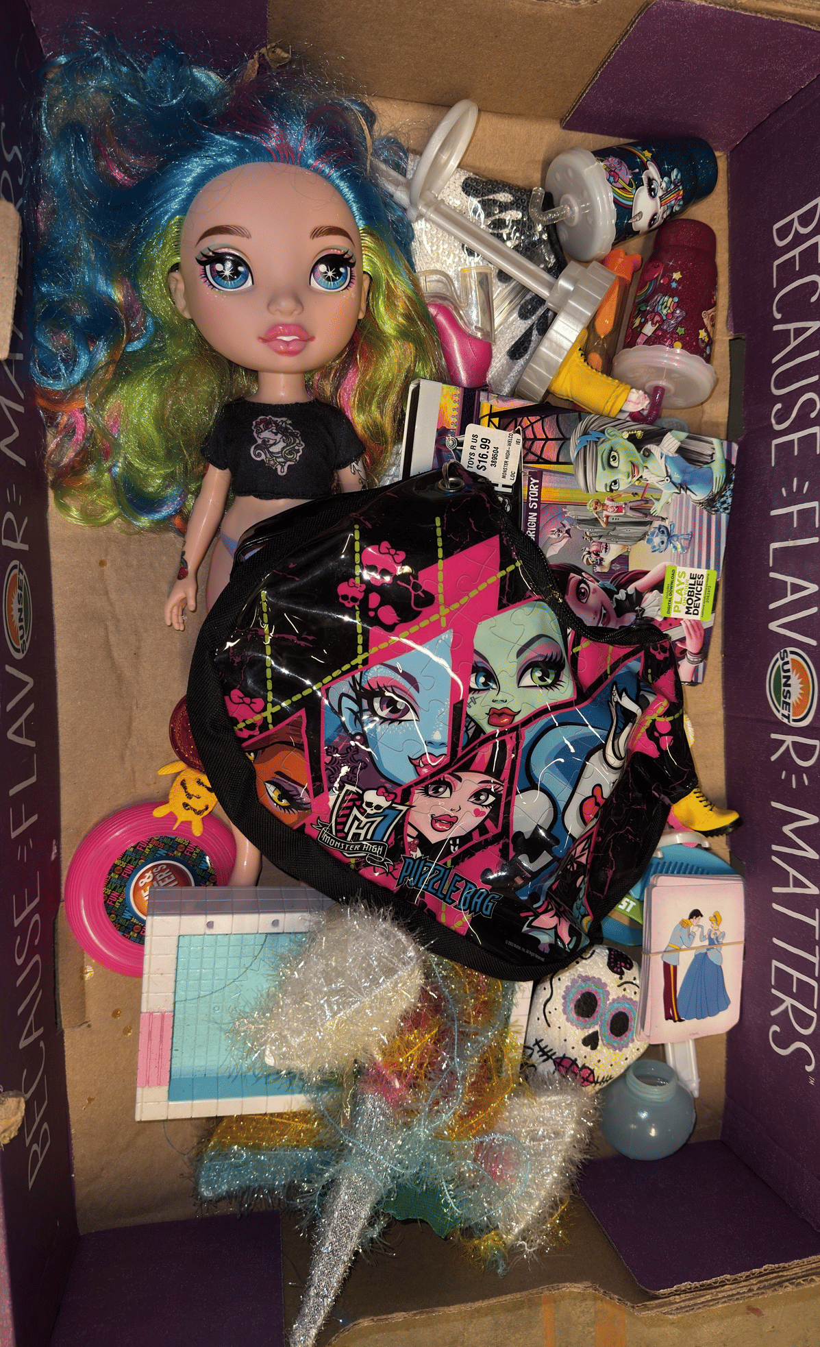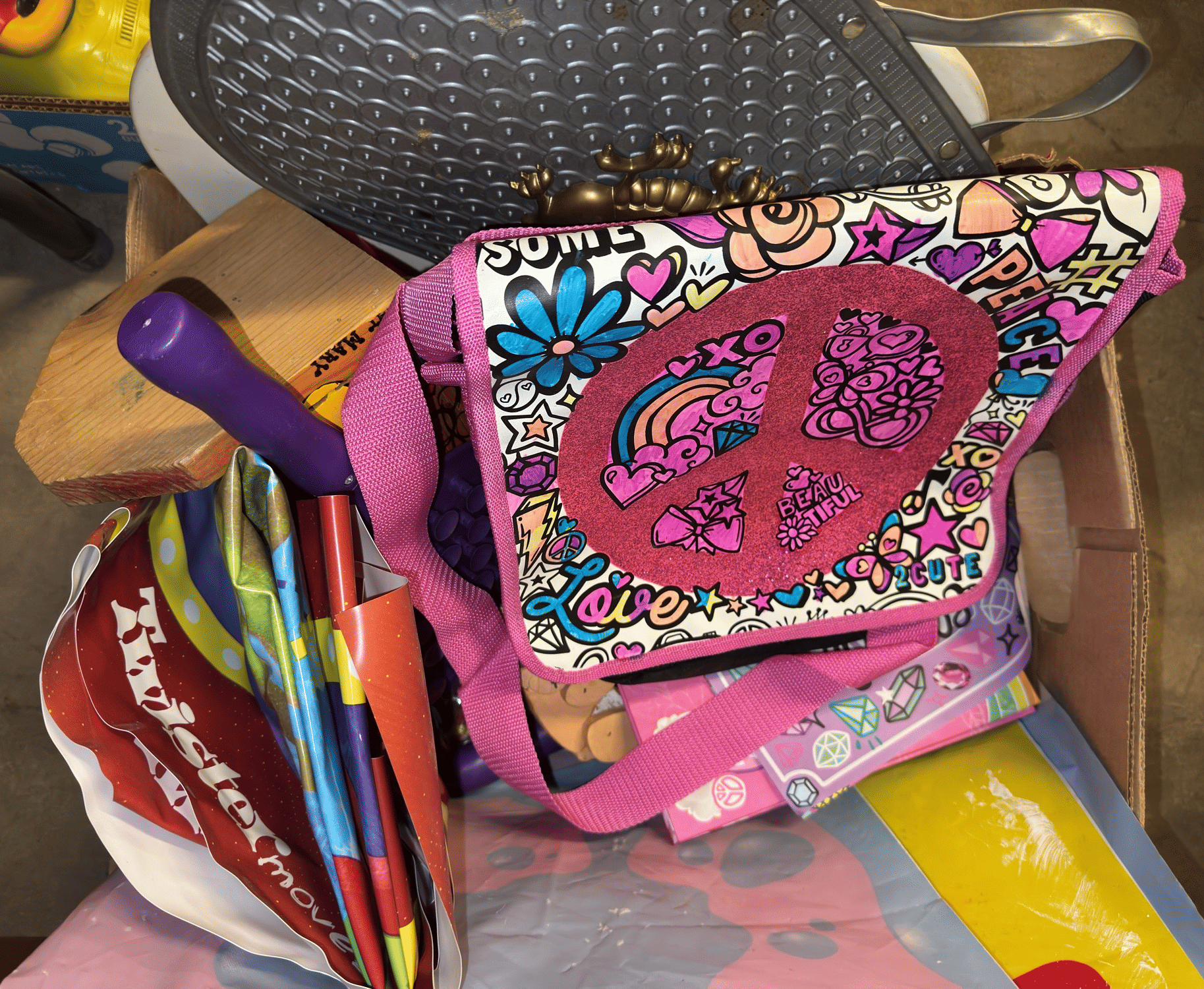 1157 Basket, jewelry box, CDs and party supplies inc. Spongebob decor