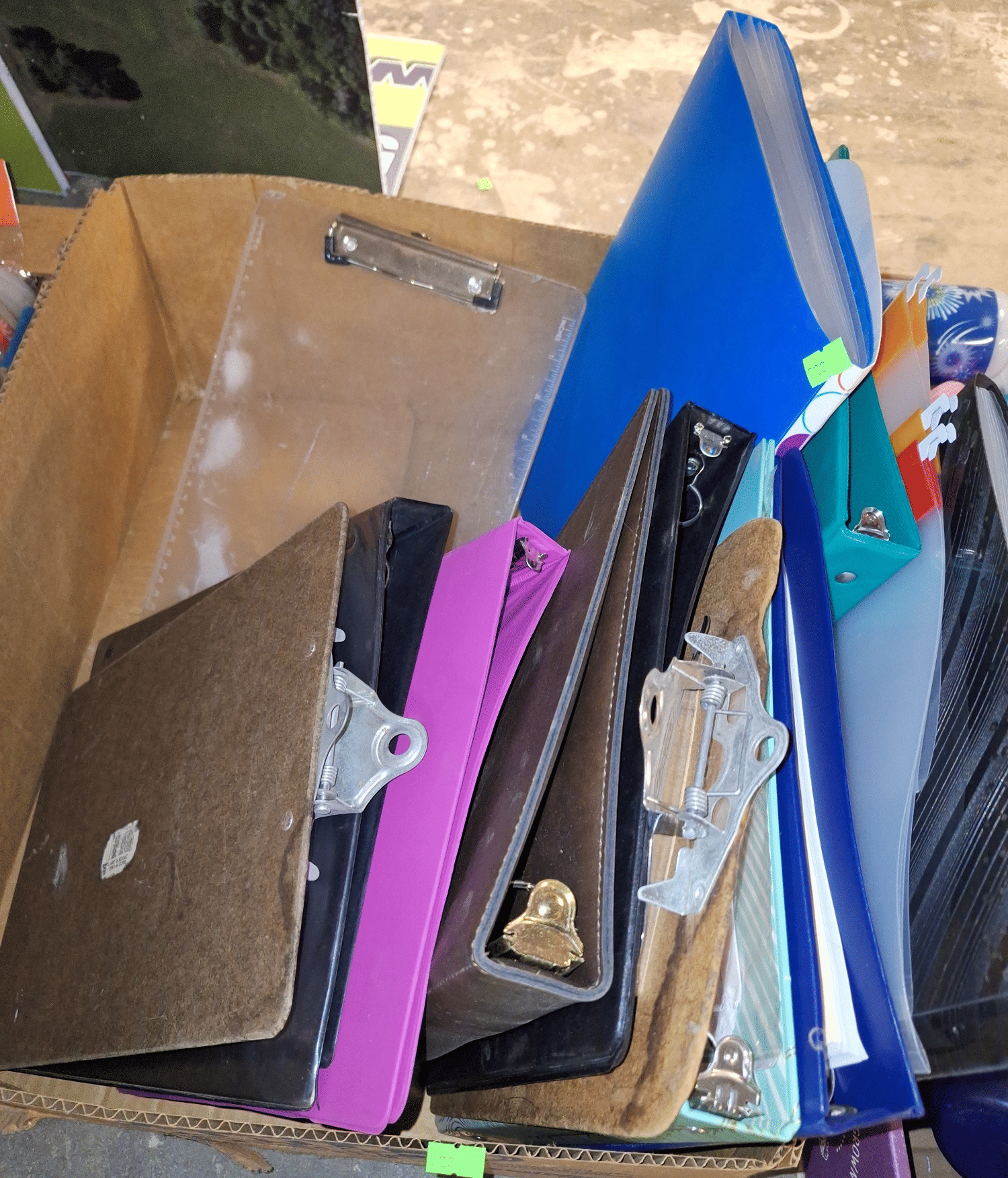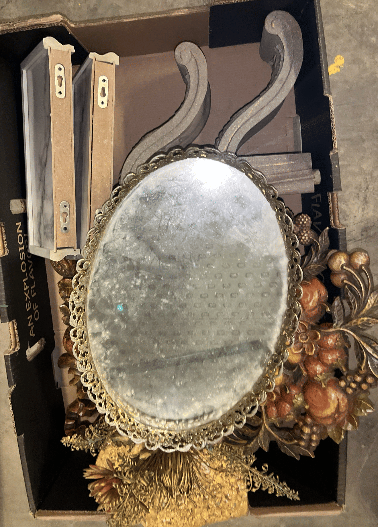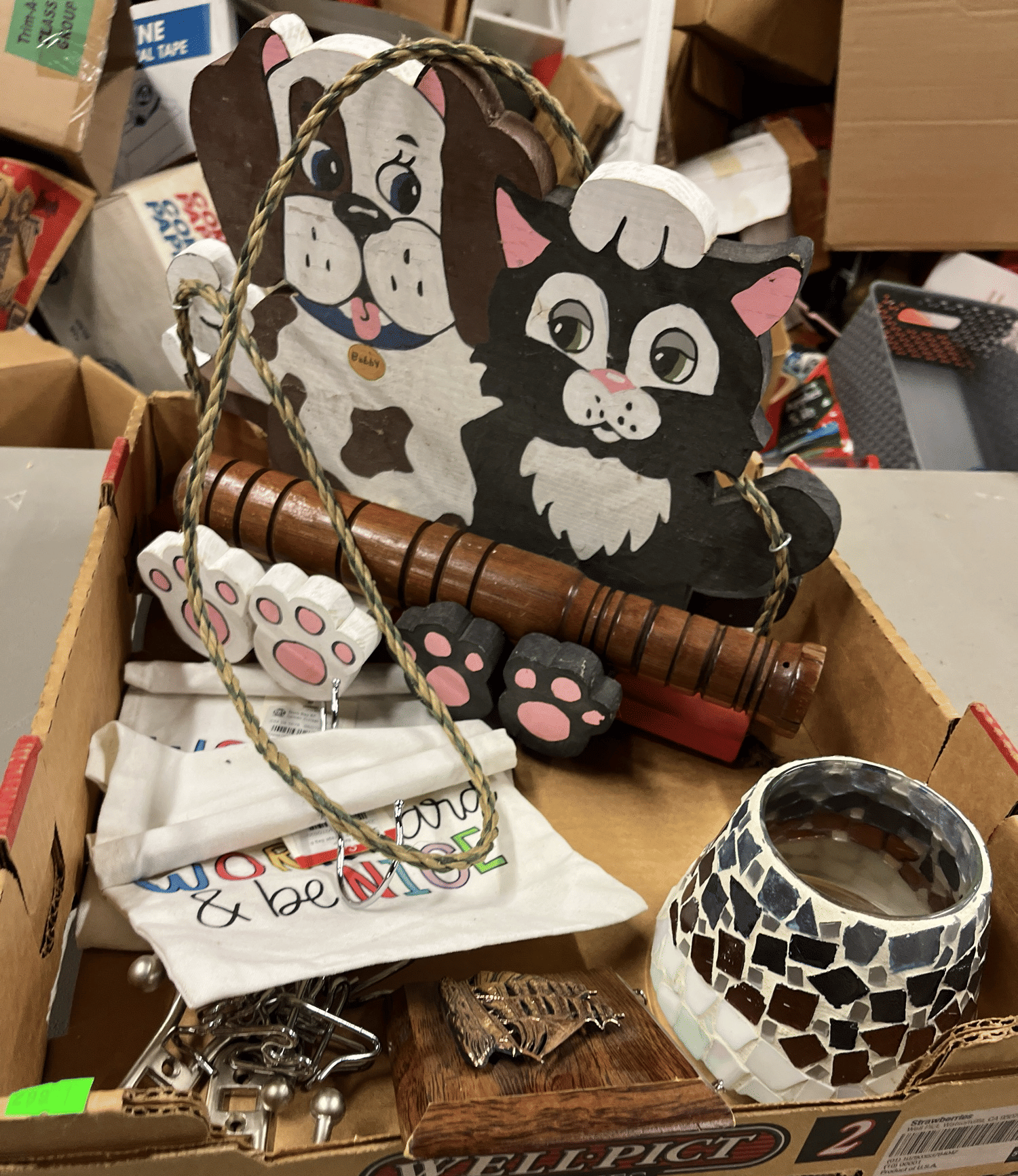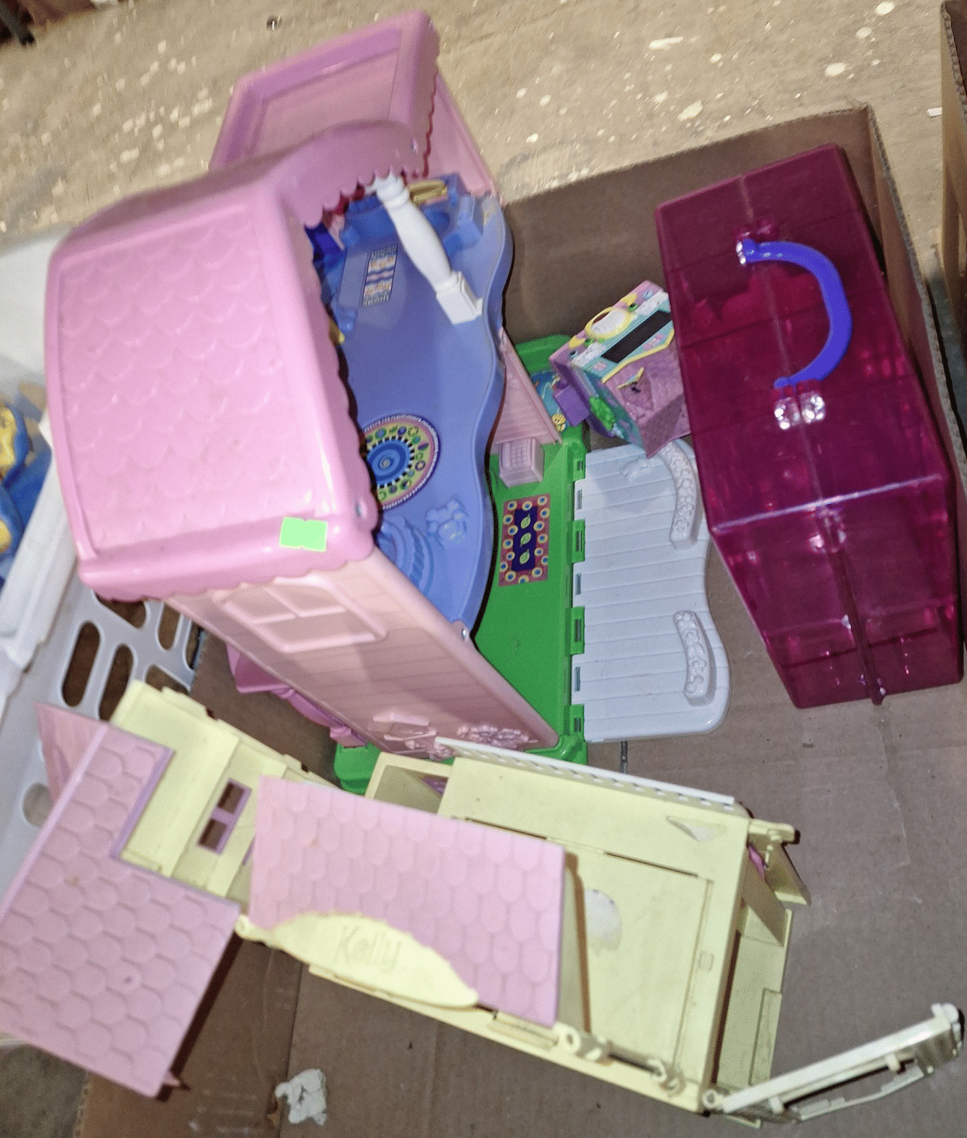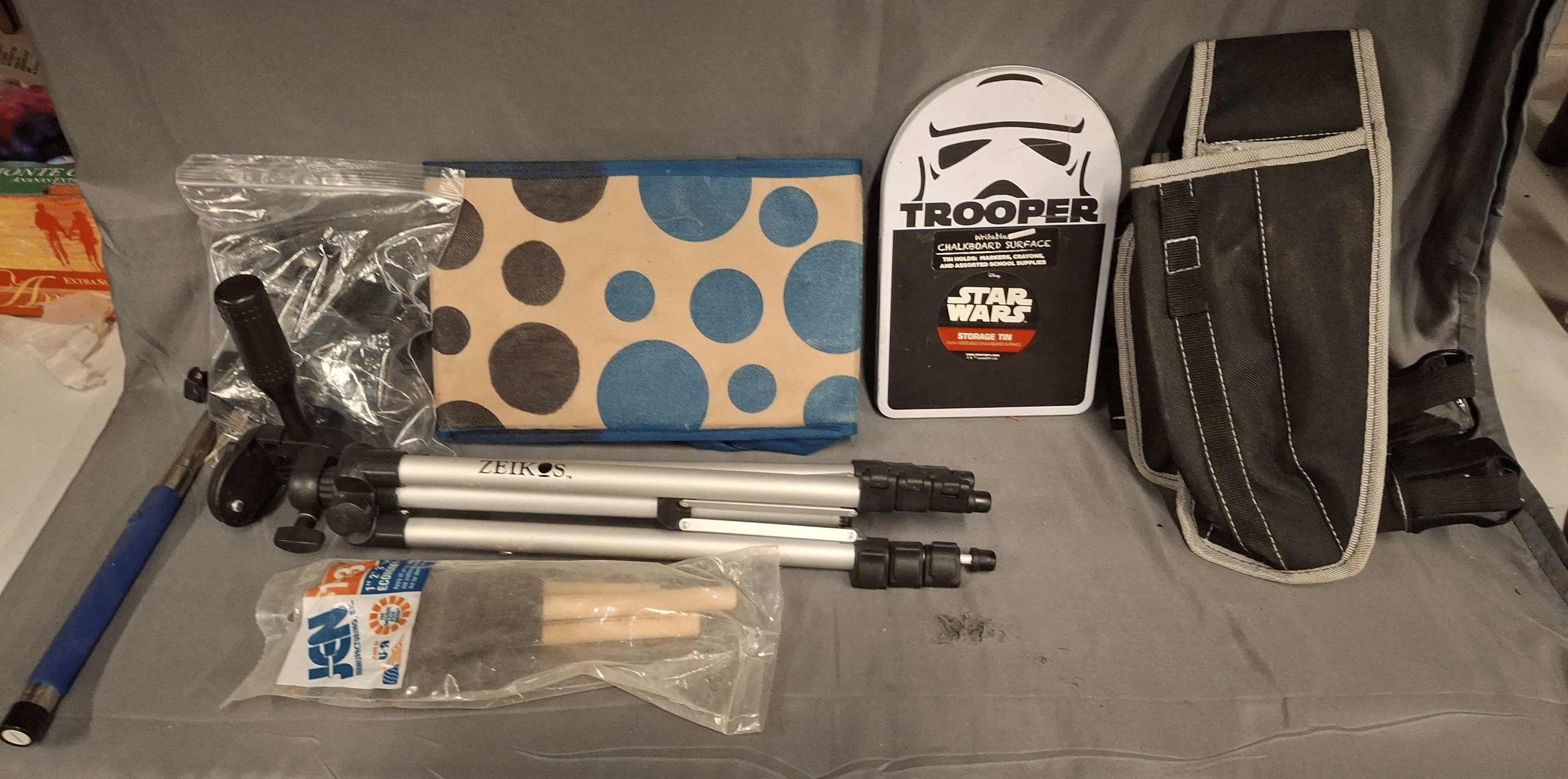 1158 Plastic organizers, hoops, bowl, glass light globe