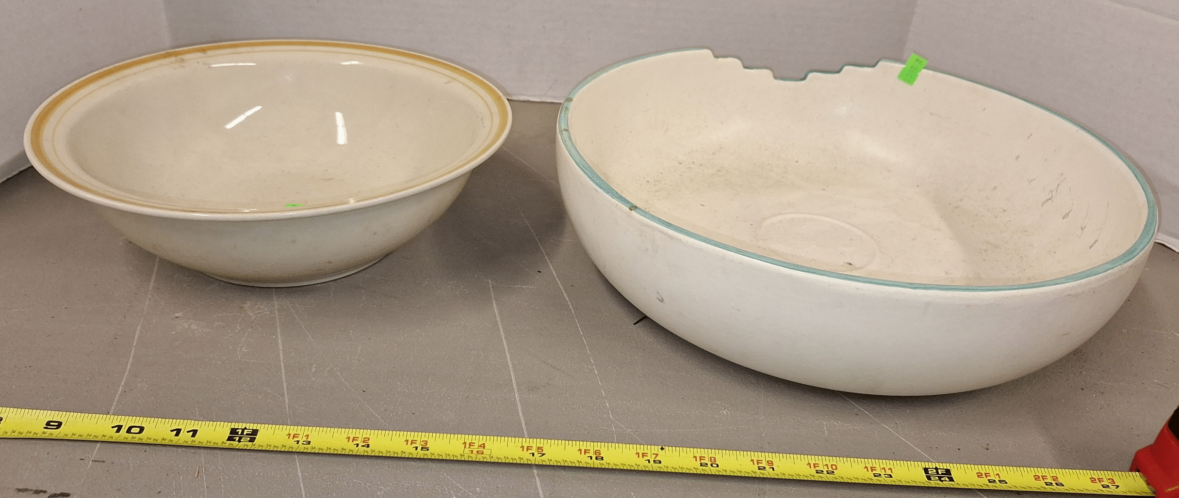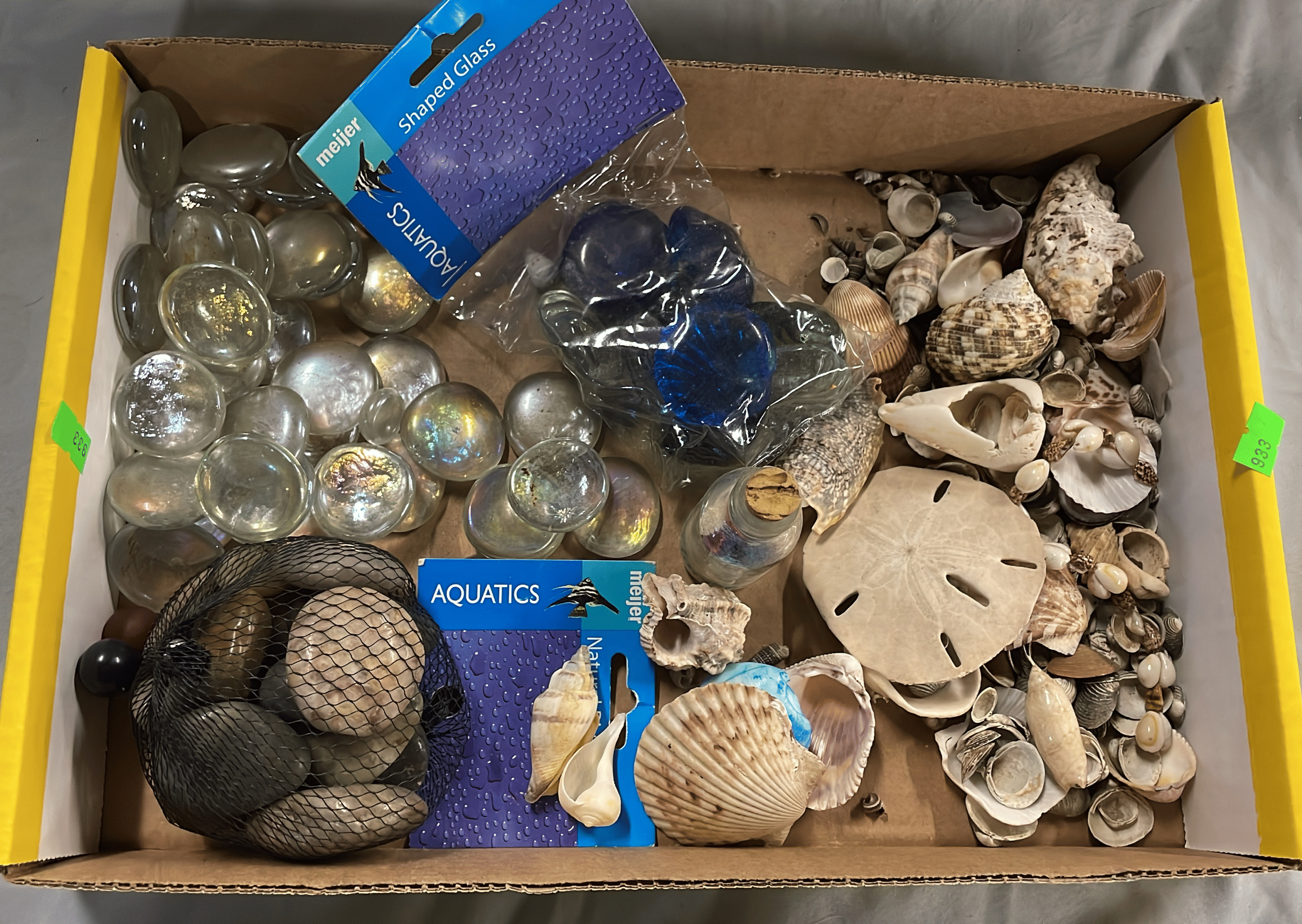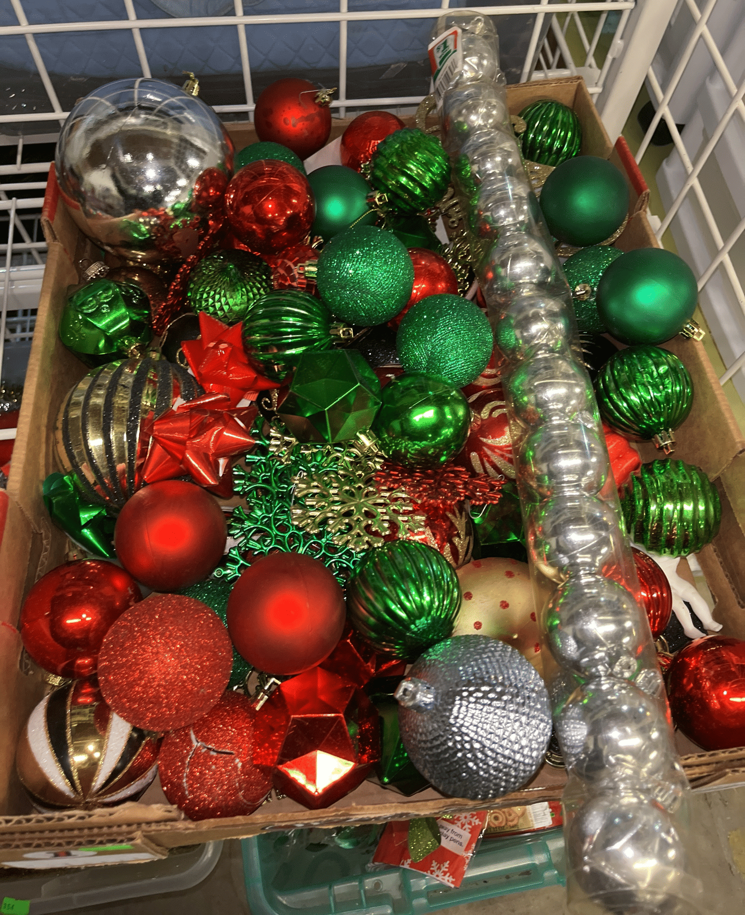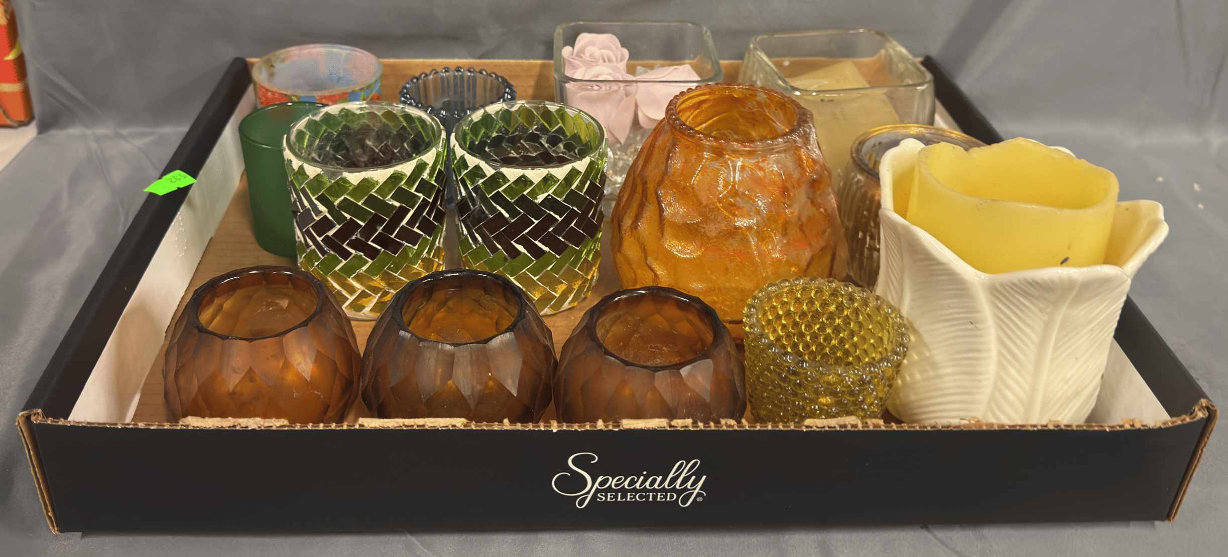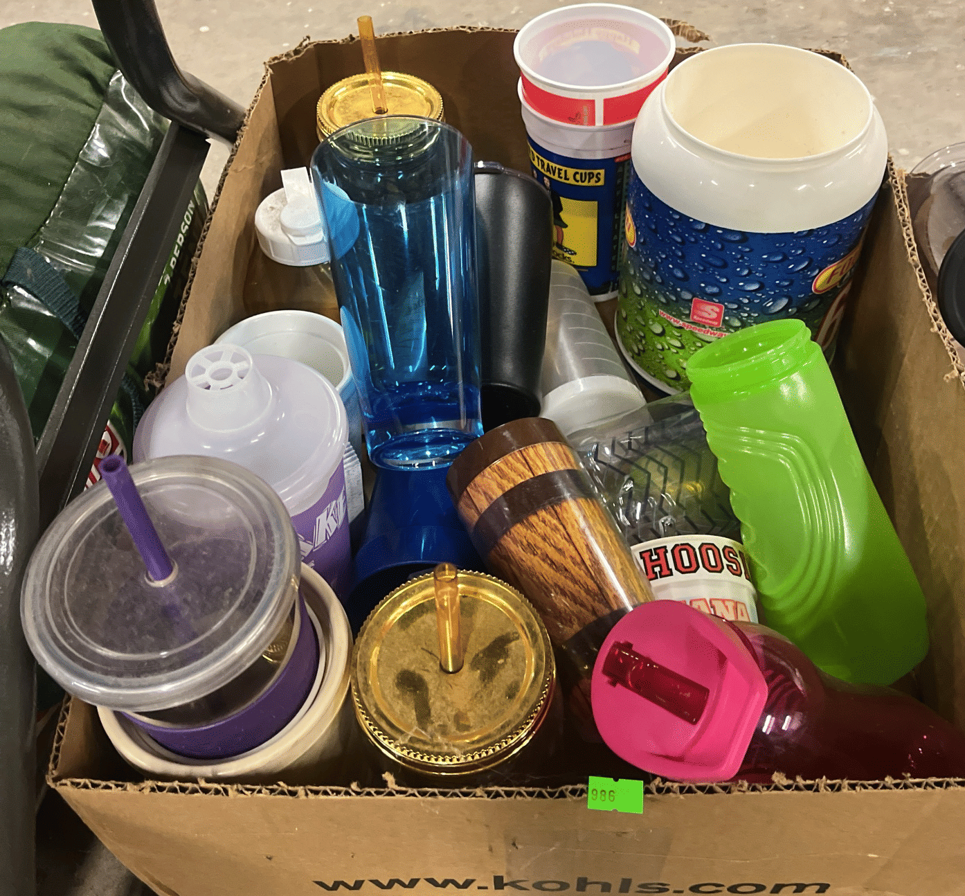 1158 Plastic organizers, hoops, bowl, glass light globe