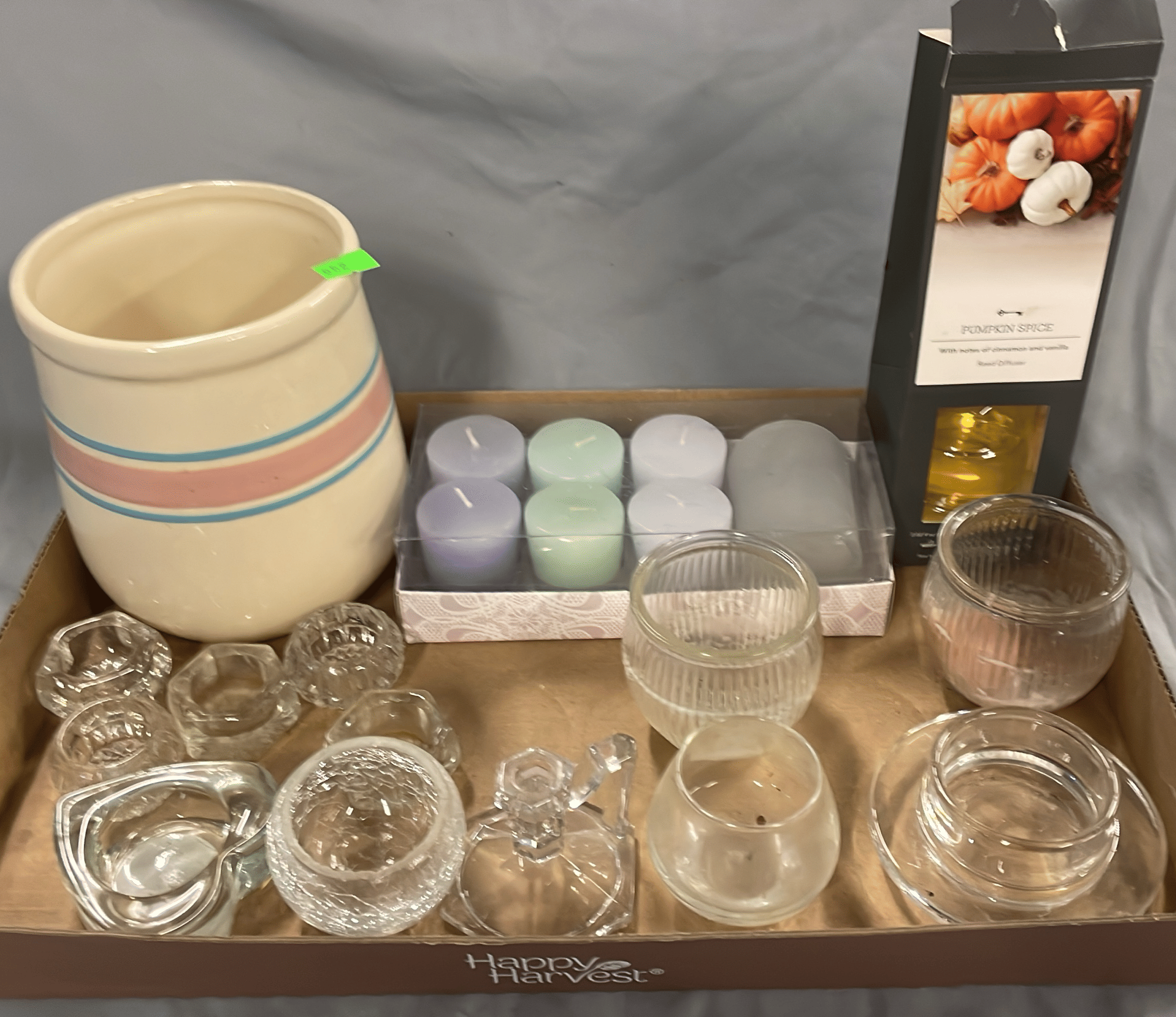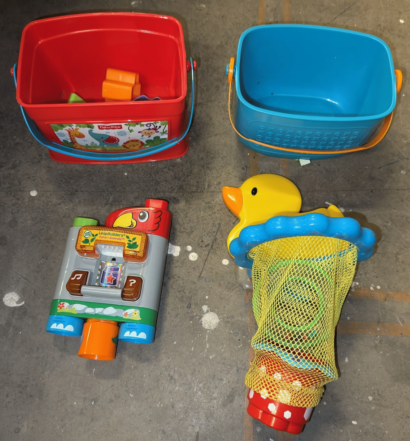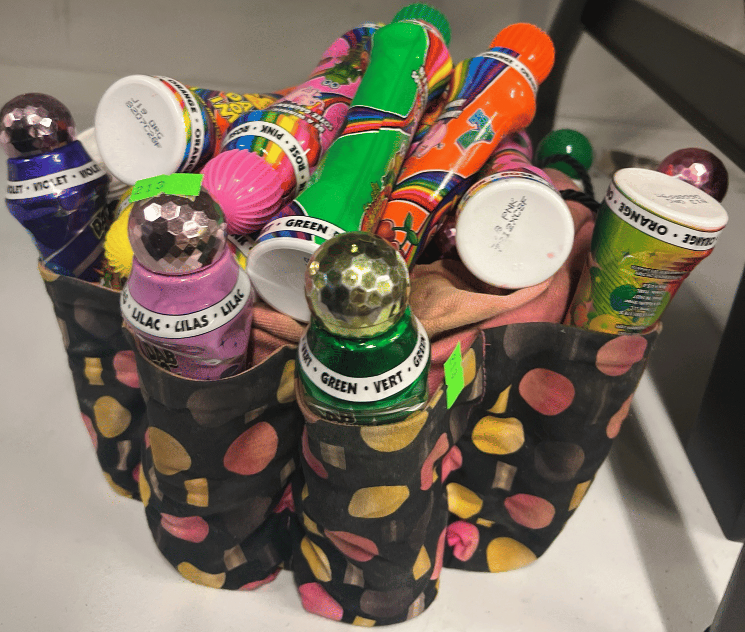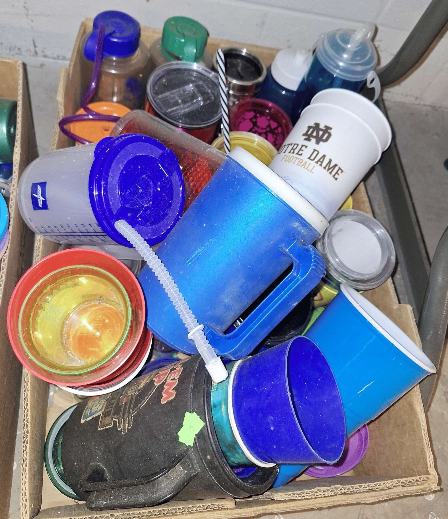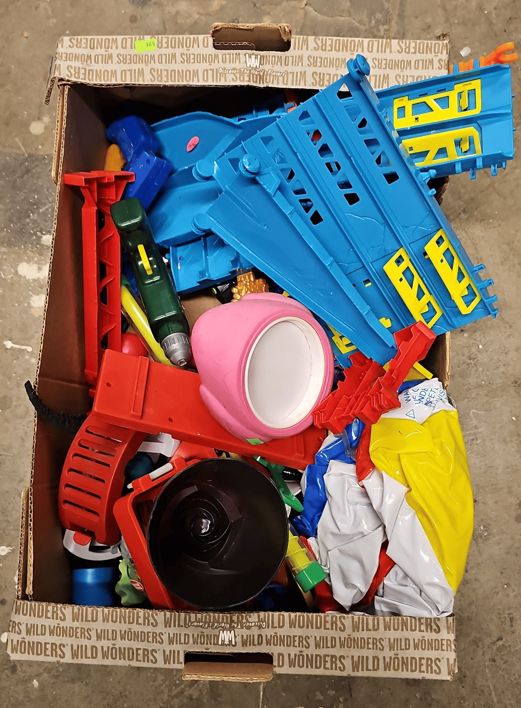 1158 Plastic organizers, hoops, bowl, glass light globe