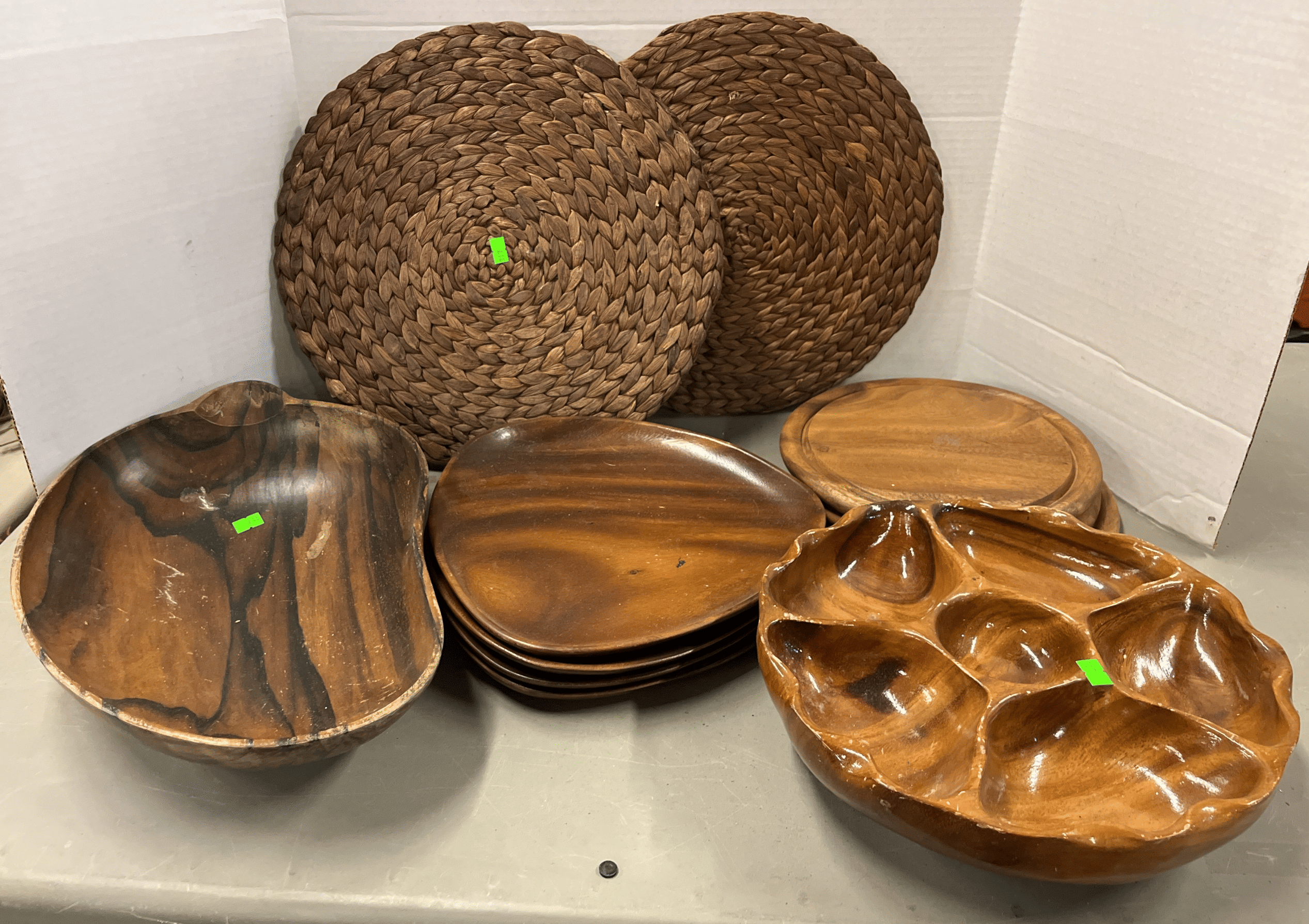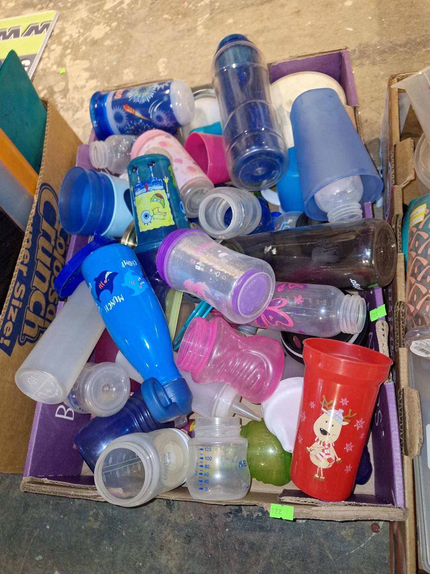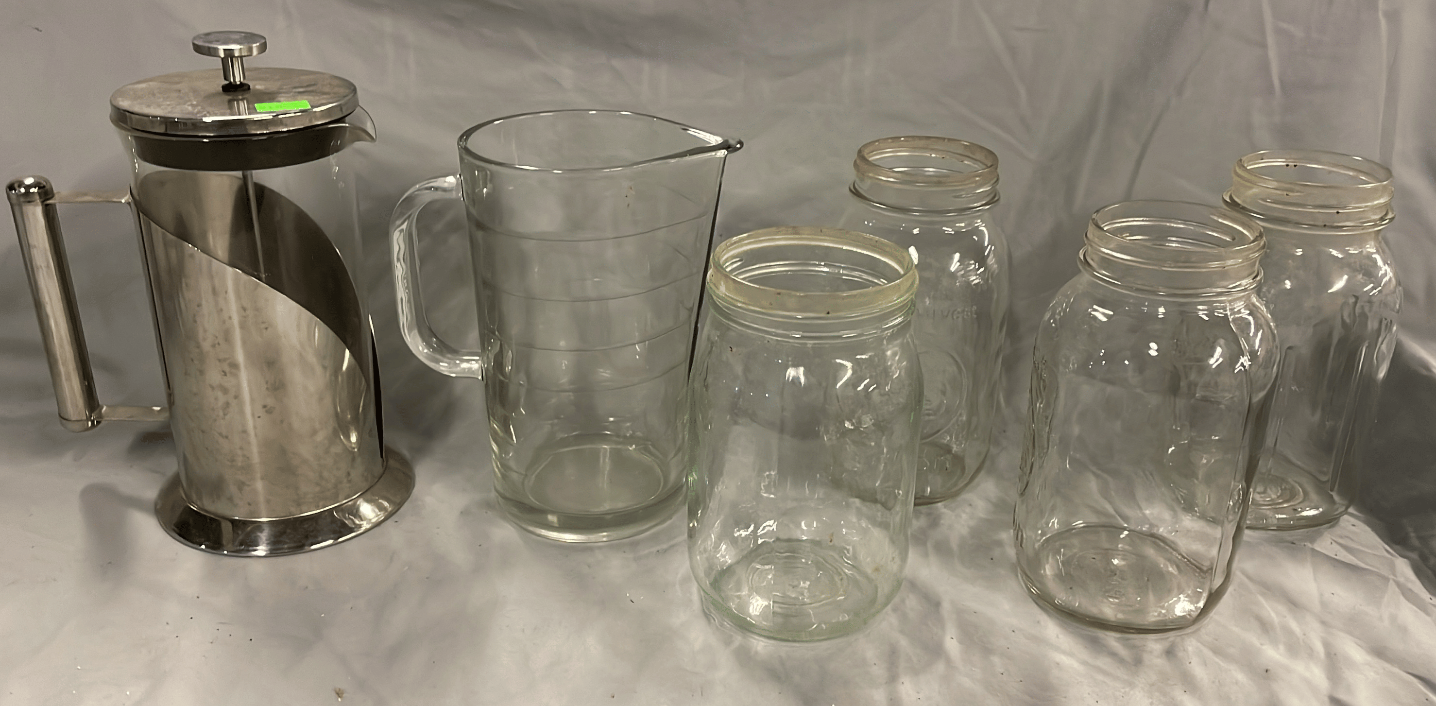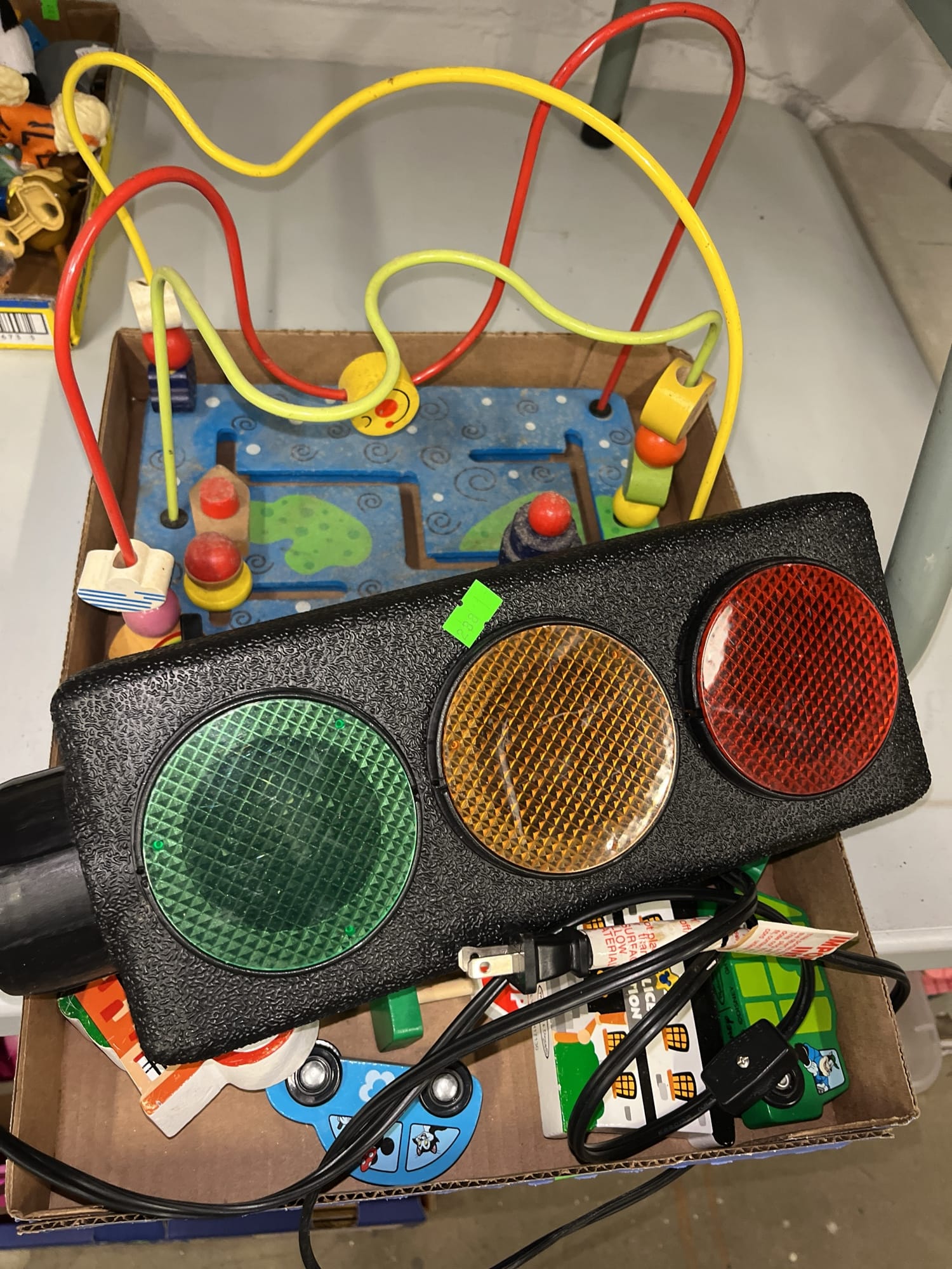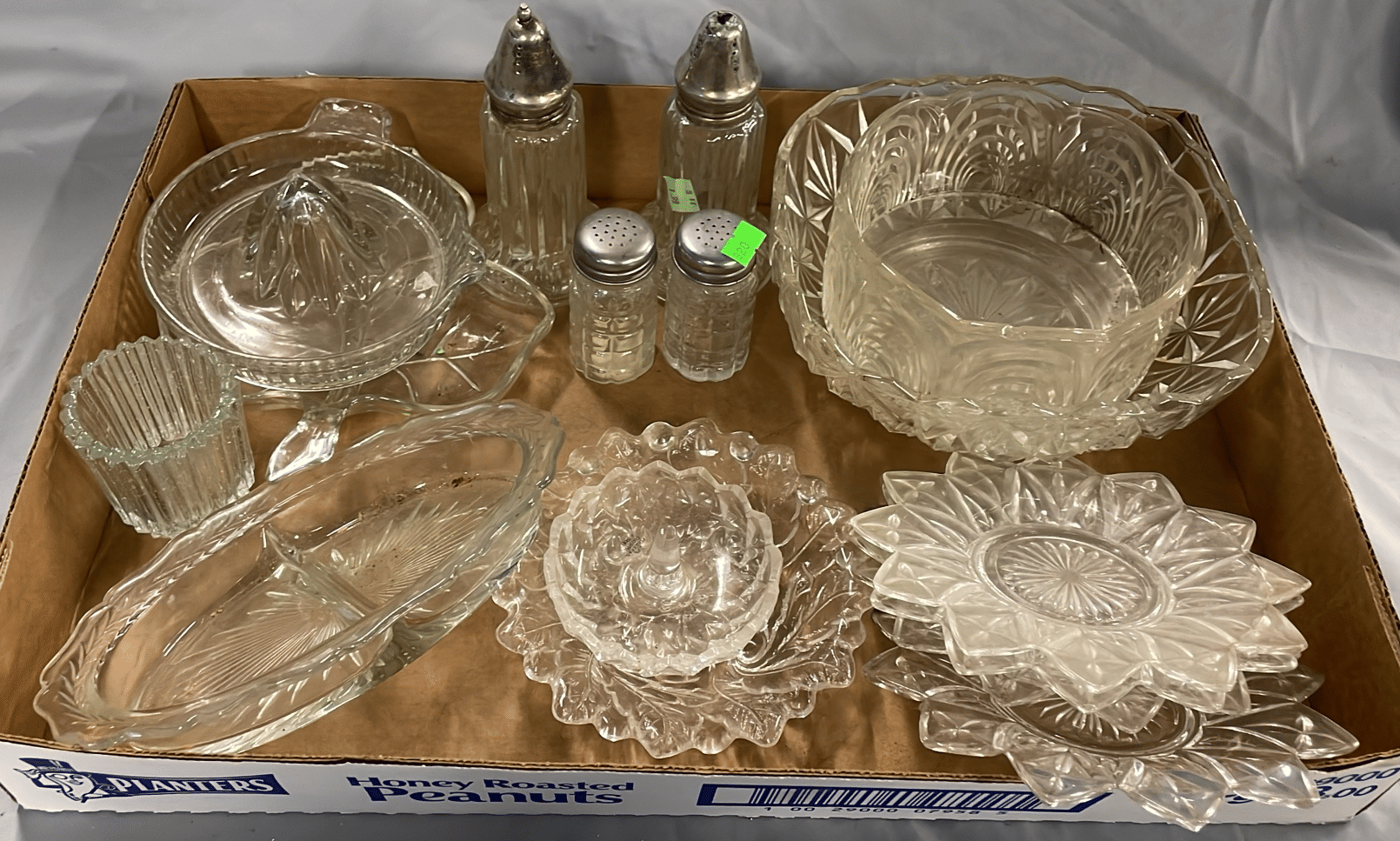 1158 Plastic organizers, hoops, bowl, glass light globe
