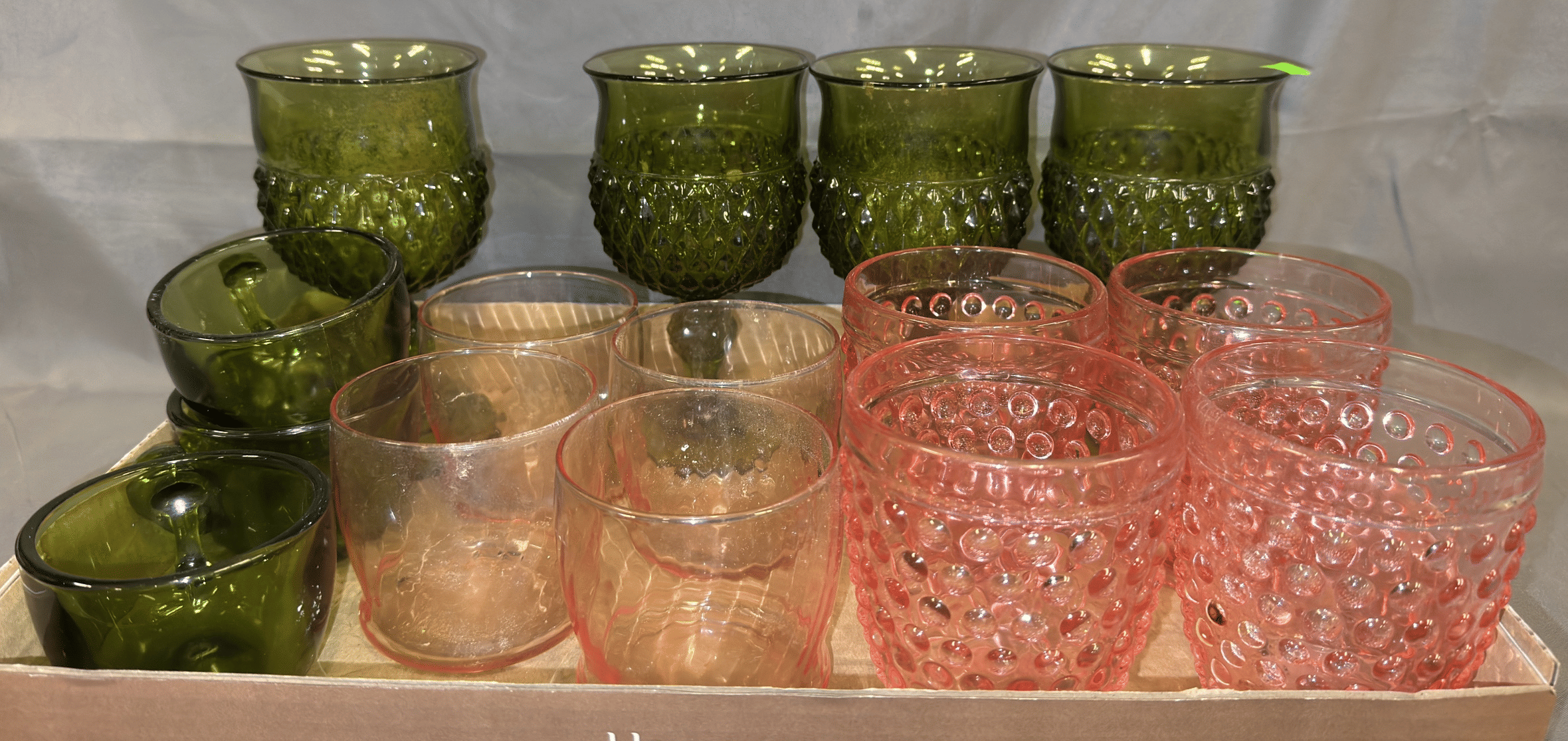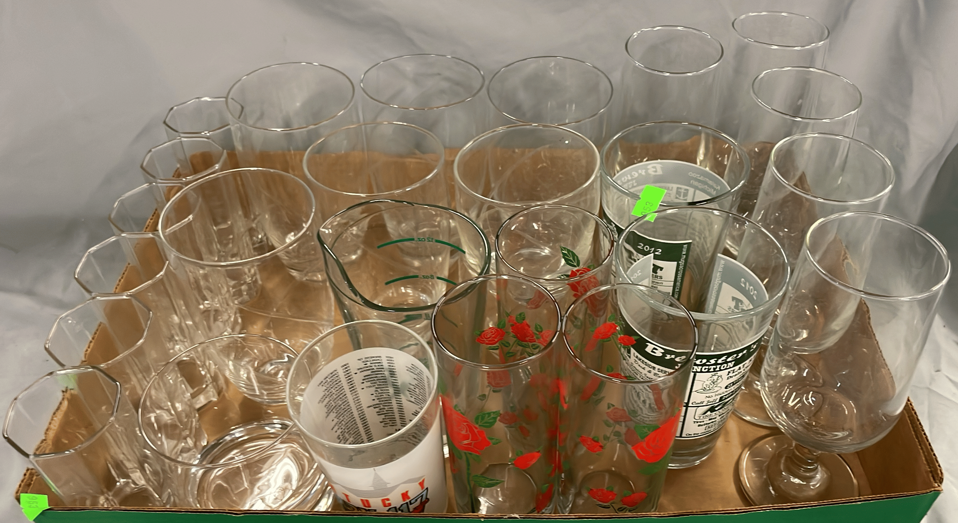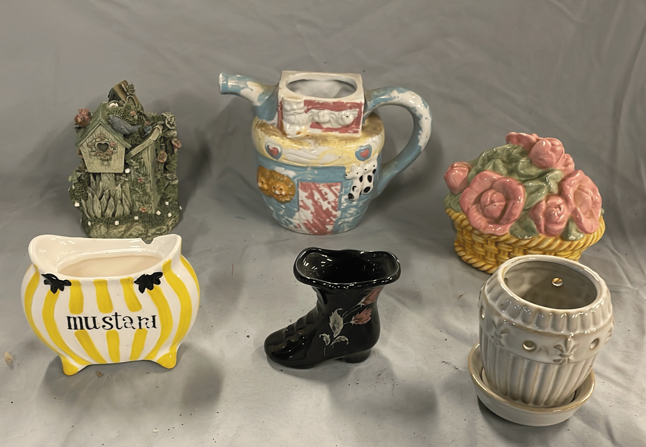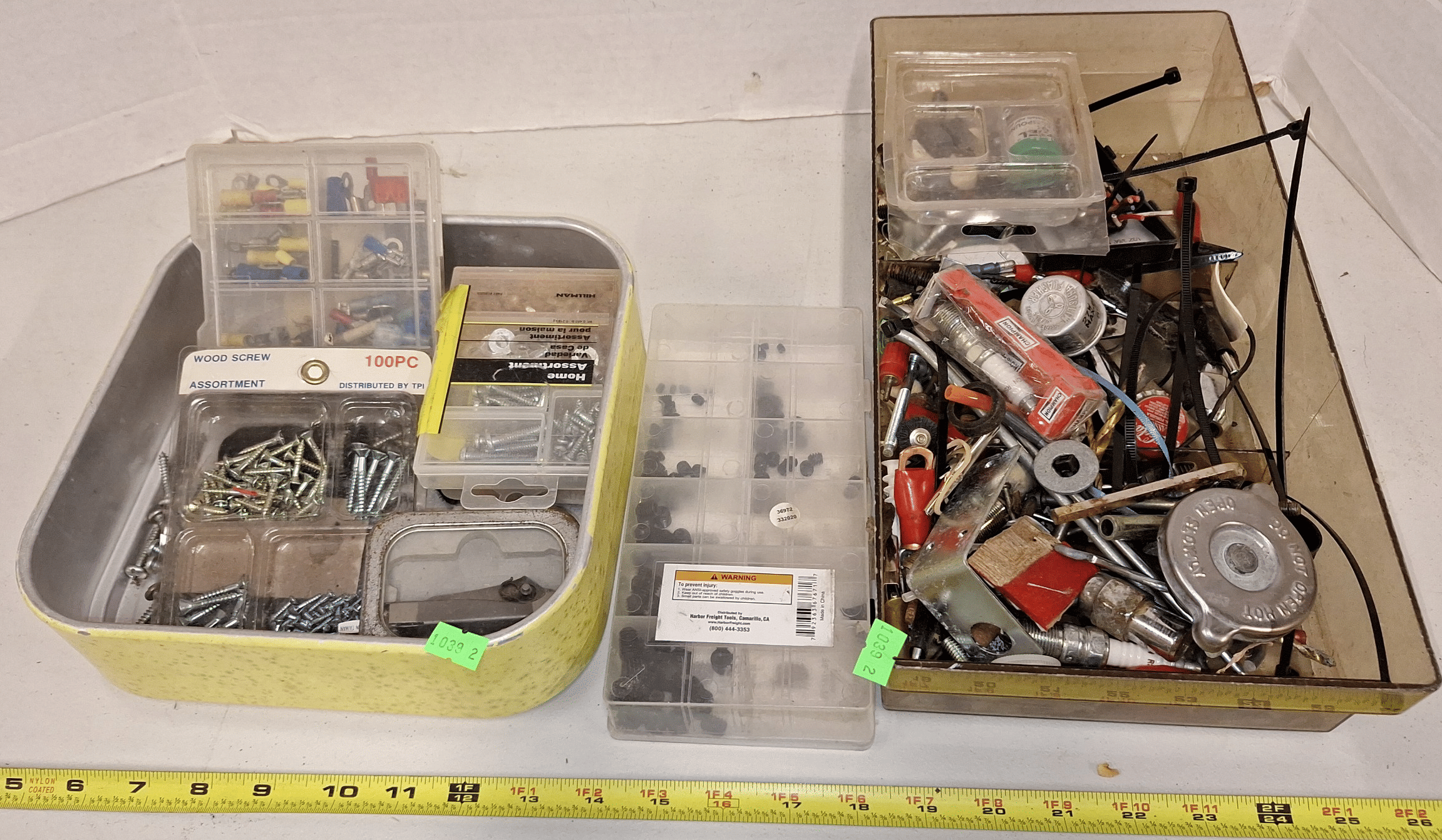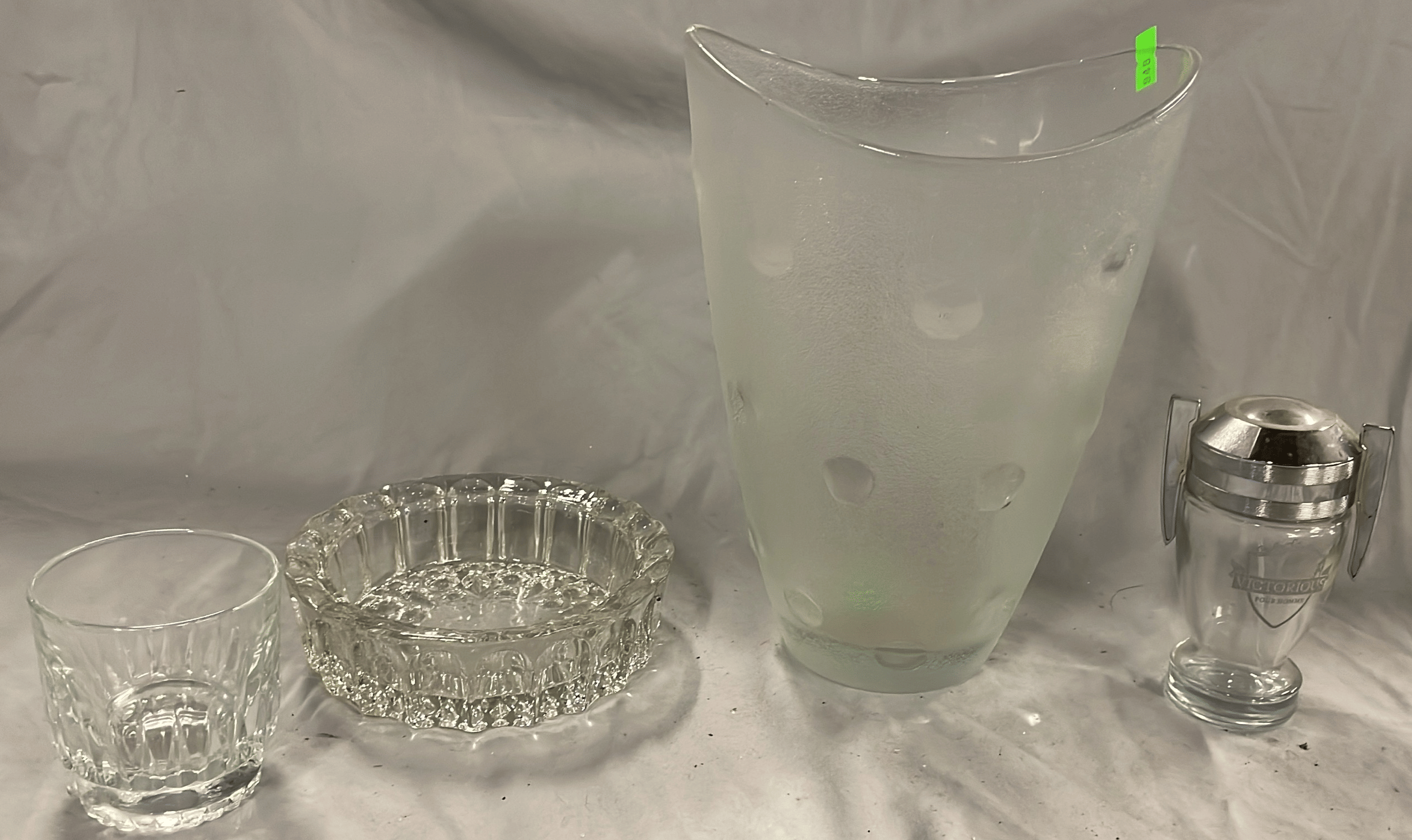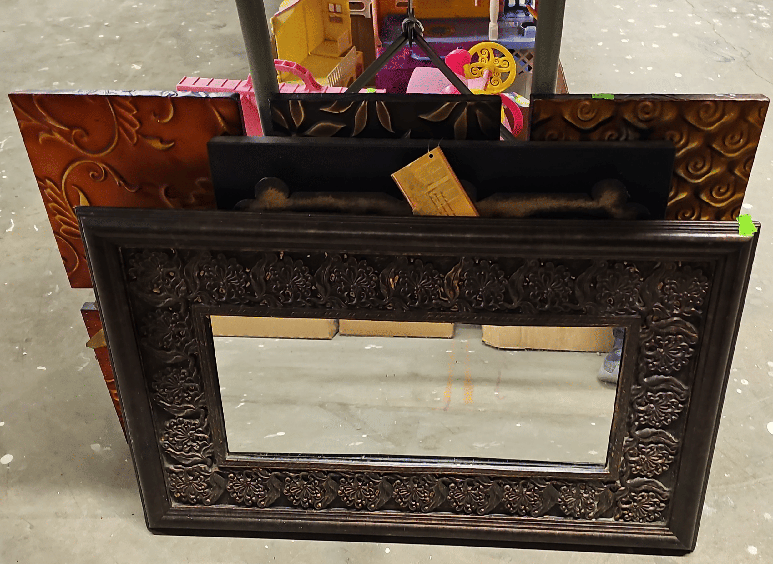 1158 Plastic organizers, hoops, bowl, glass light globe