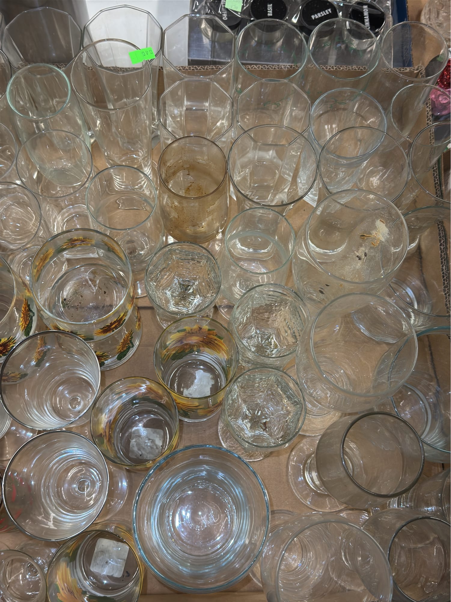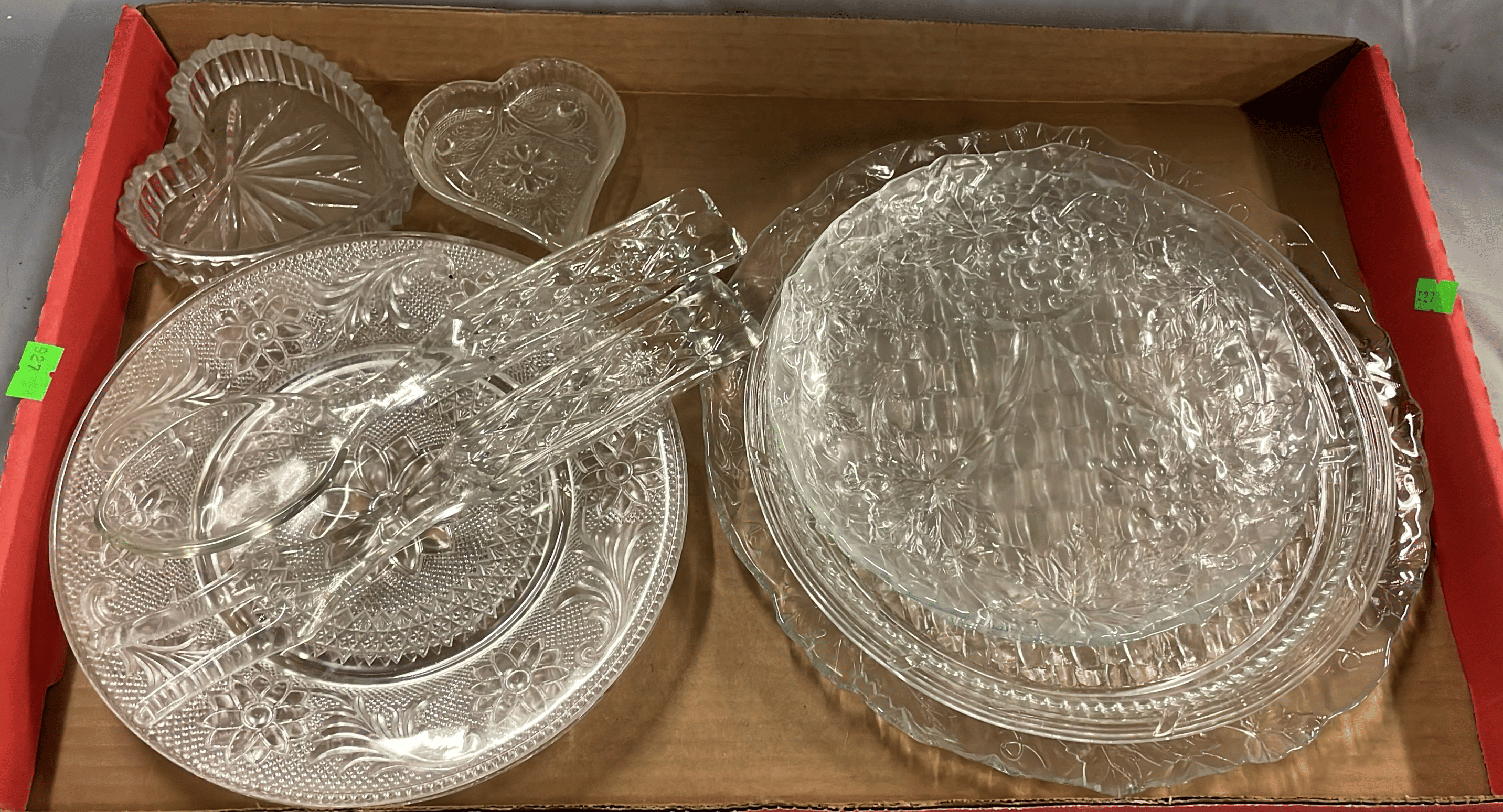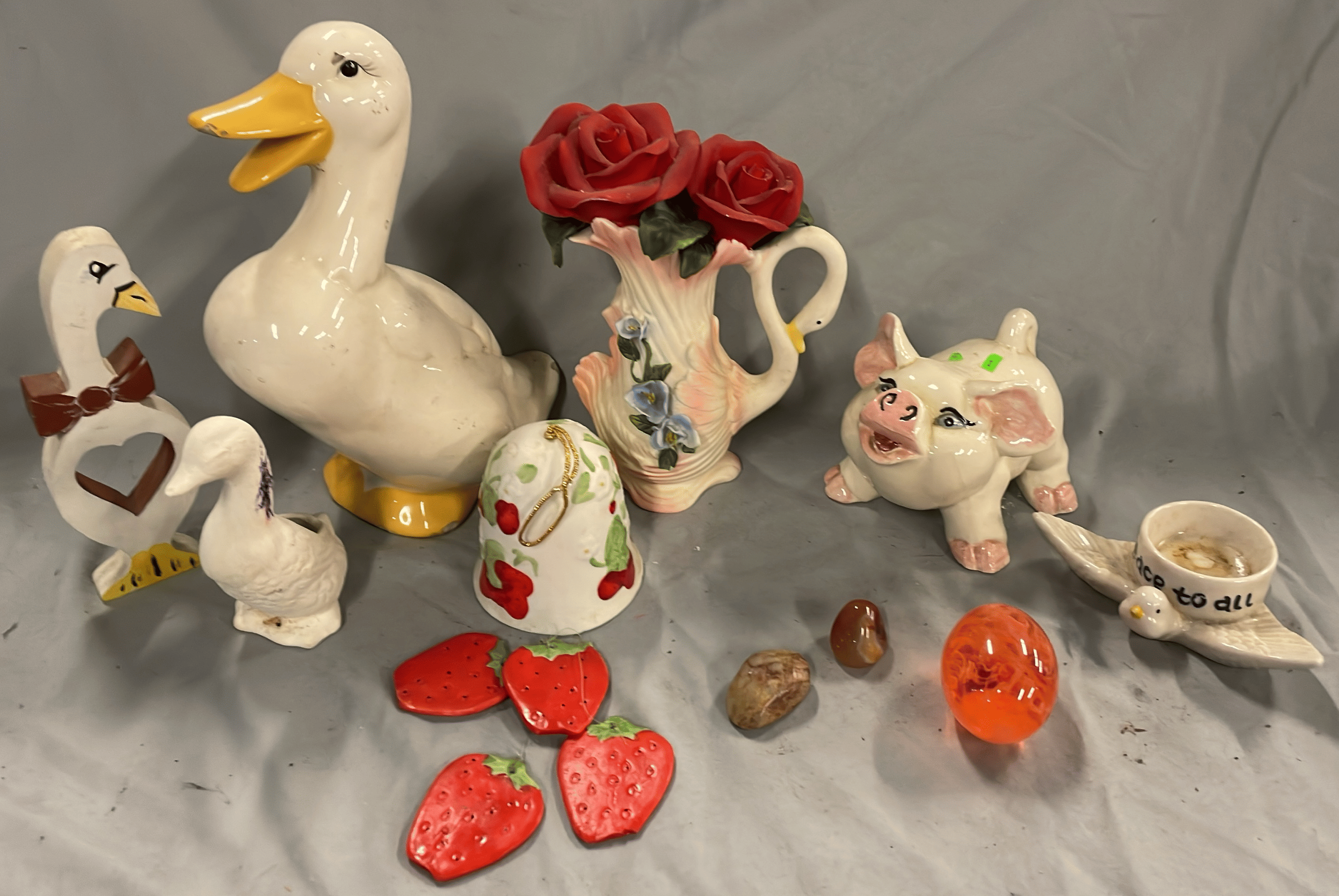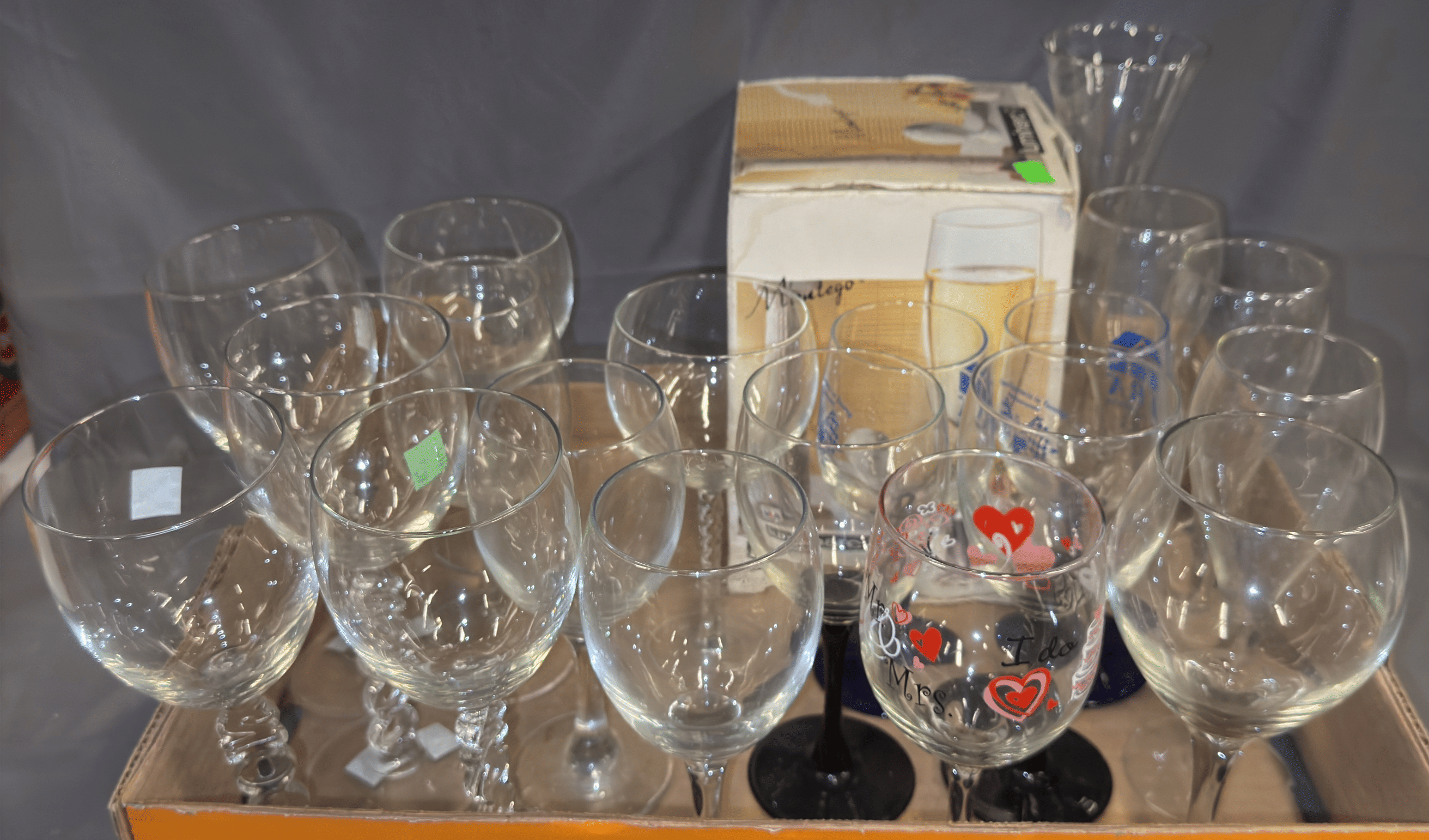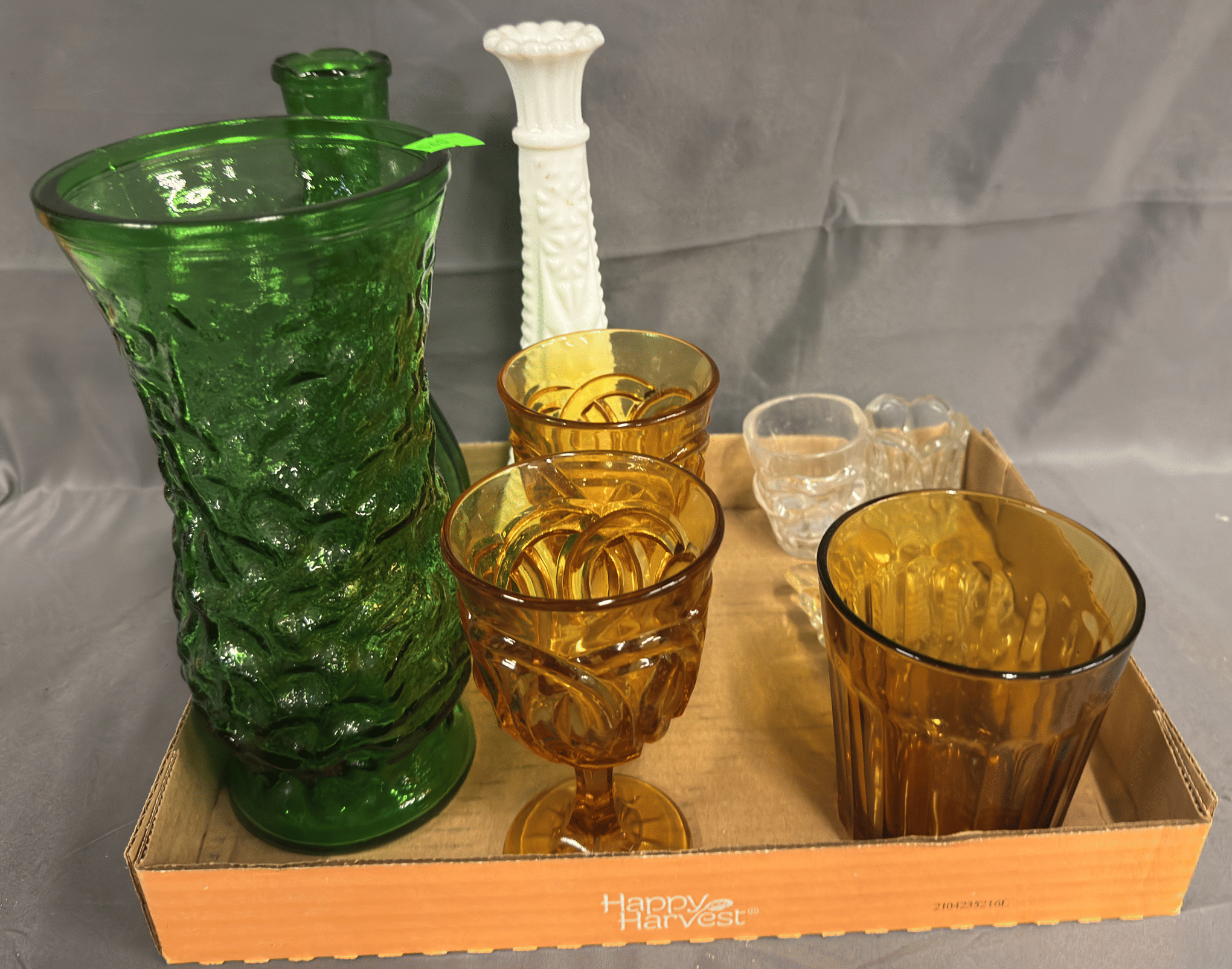 1158 Plastic organizers, hoops, bowl, glass light globe