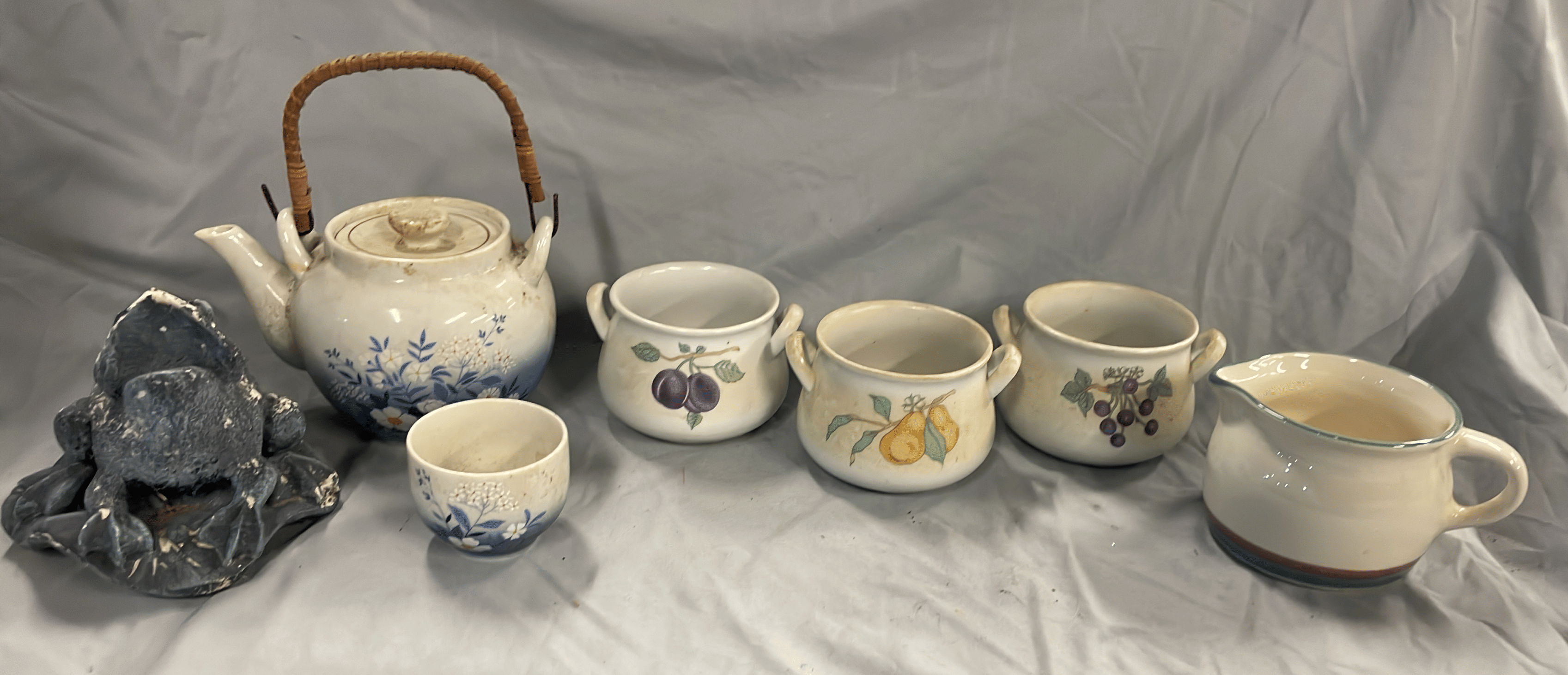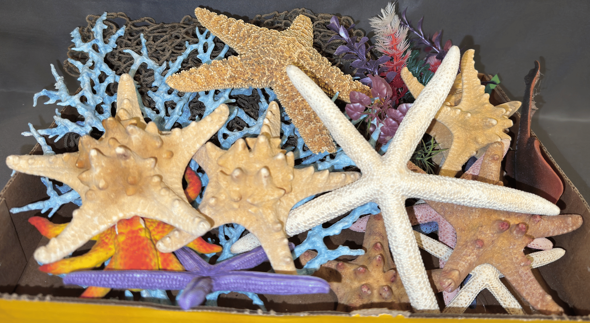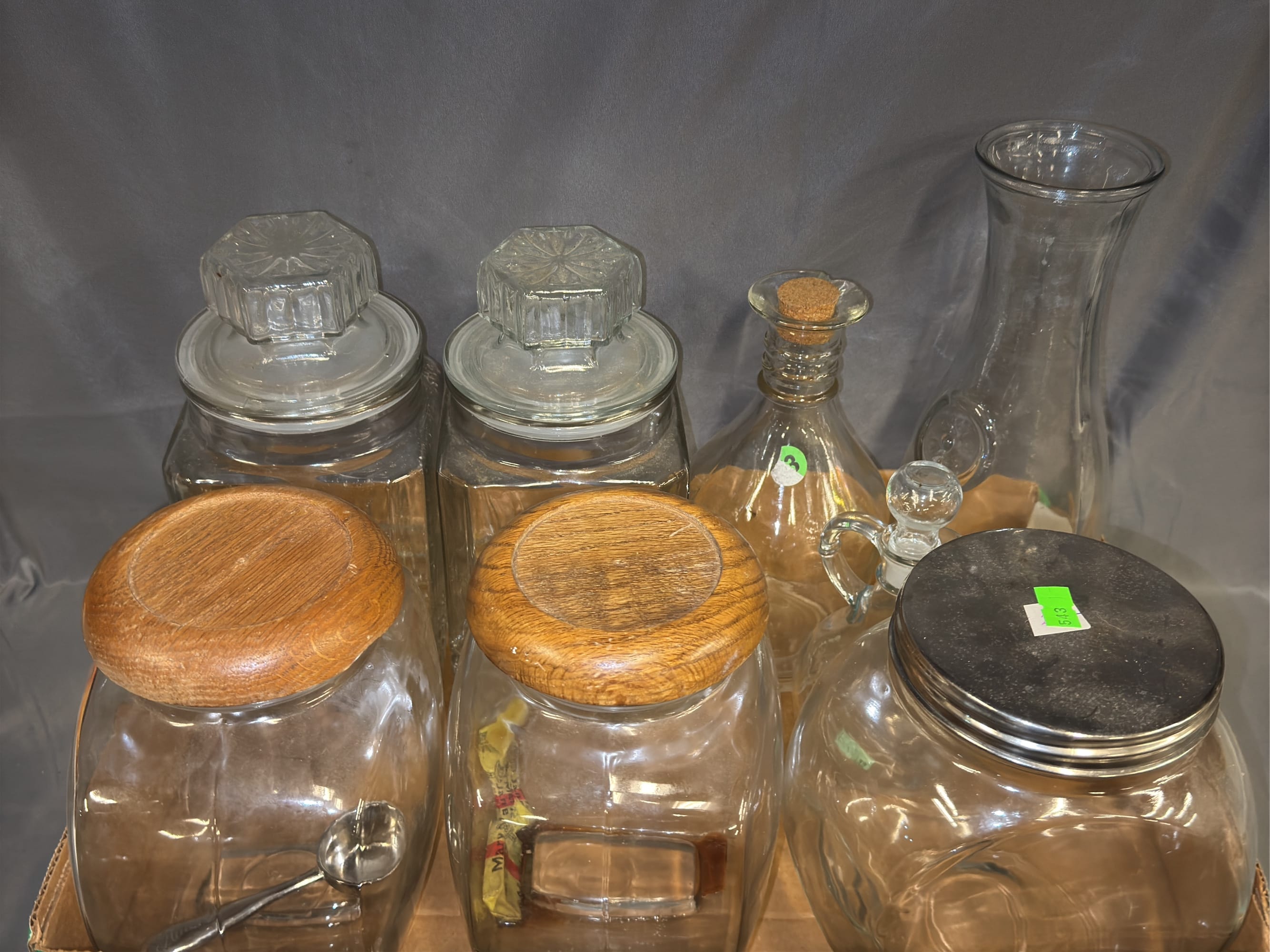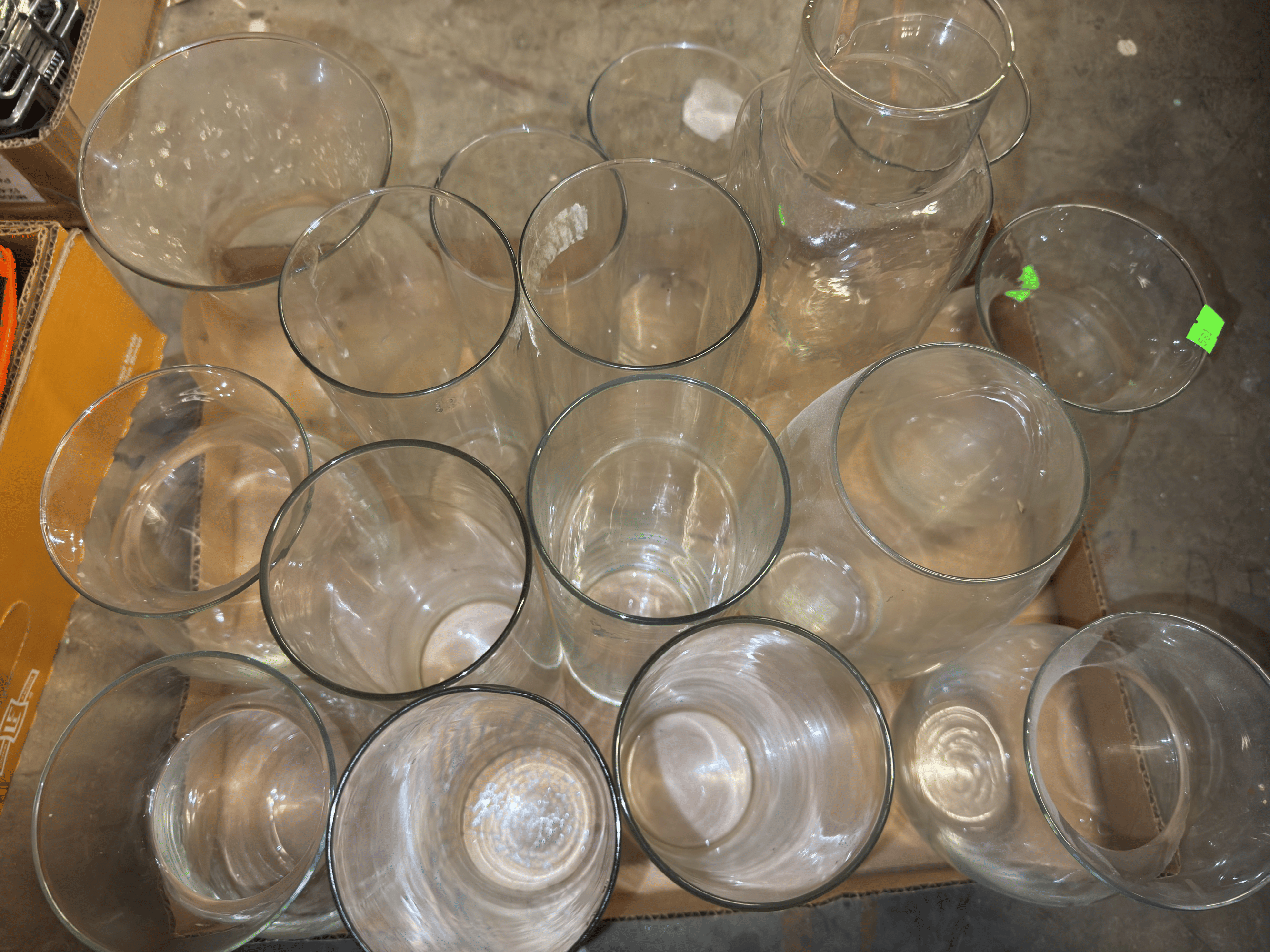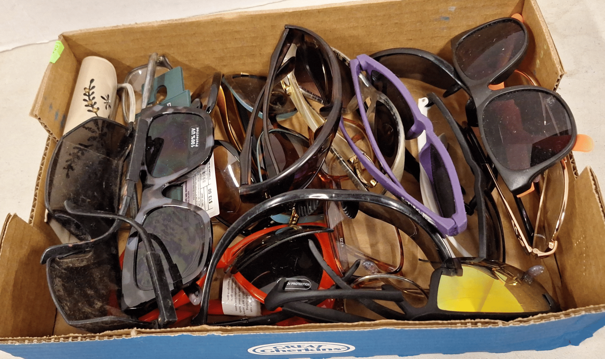 1158 Plastic organizers, hoops, bowl, glass light globe