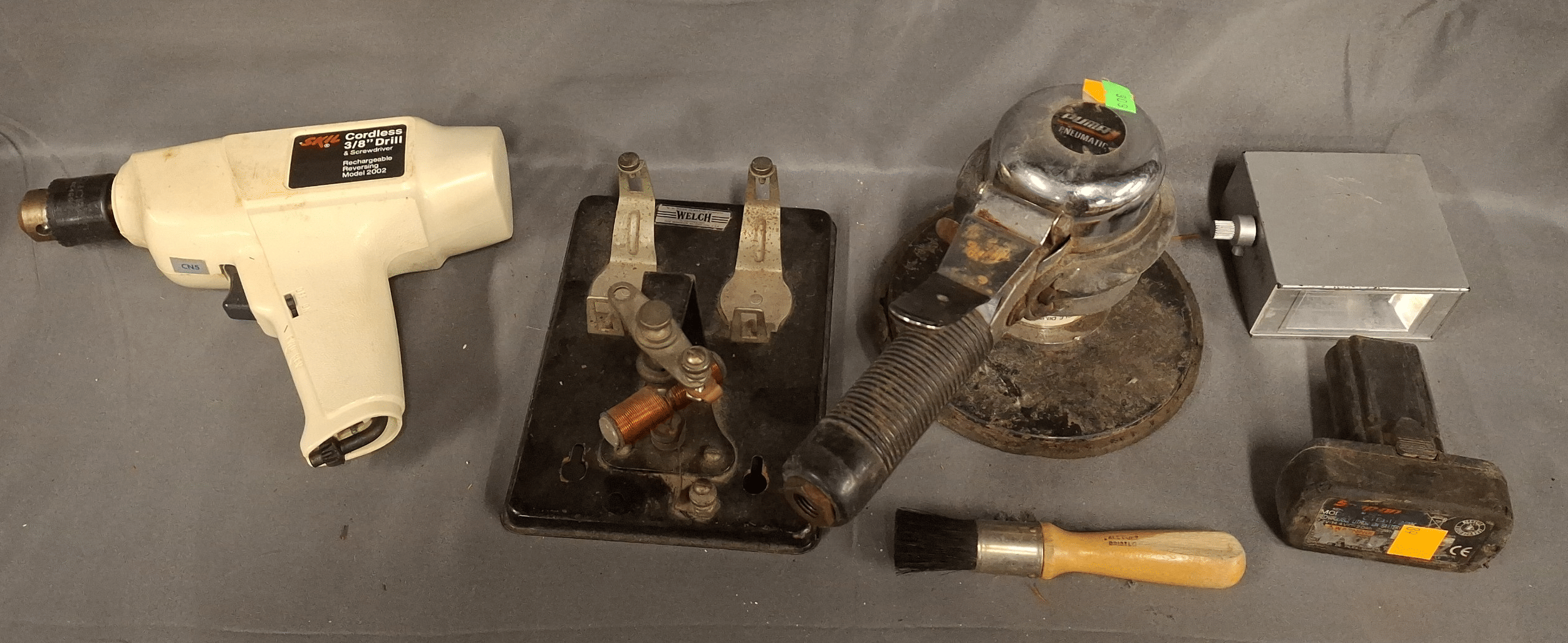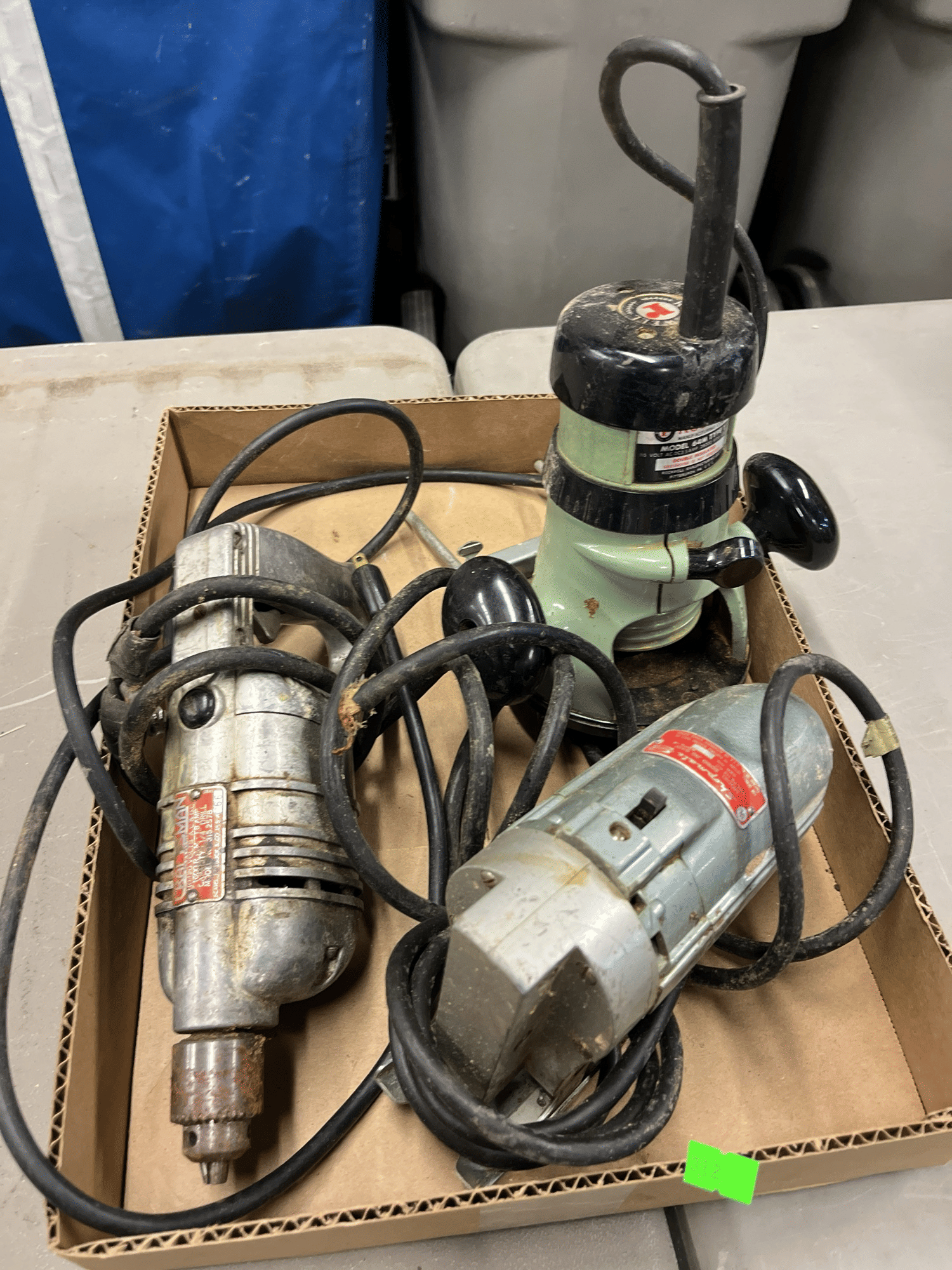 1150 Craftsman scroll saw, 1/2” impact wrench, Manning Bowman drill, Craftsman soldering gun, Drill master 4 1/2” angle grinder