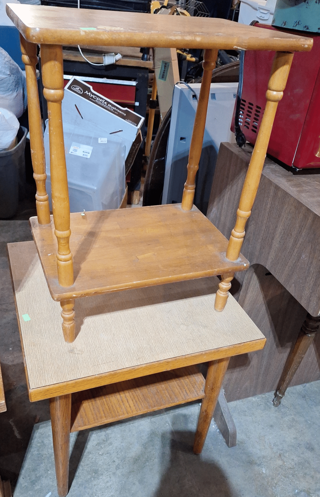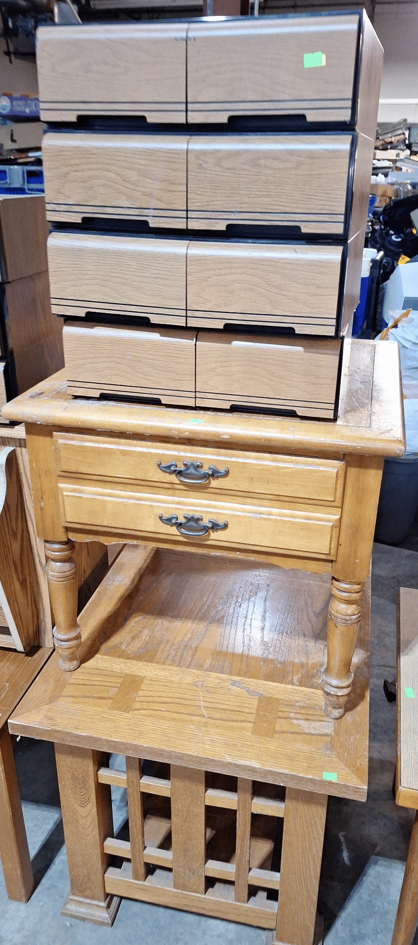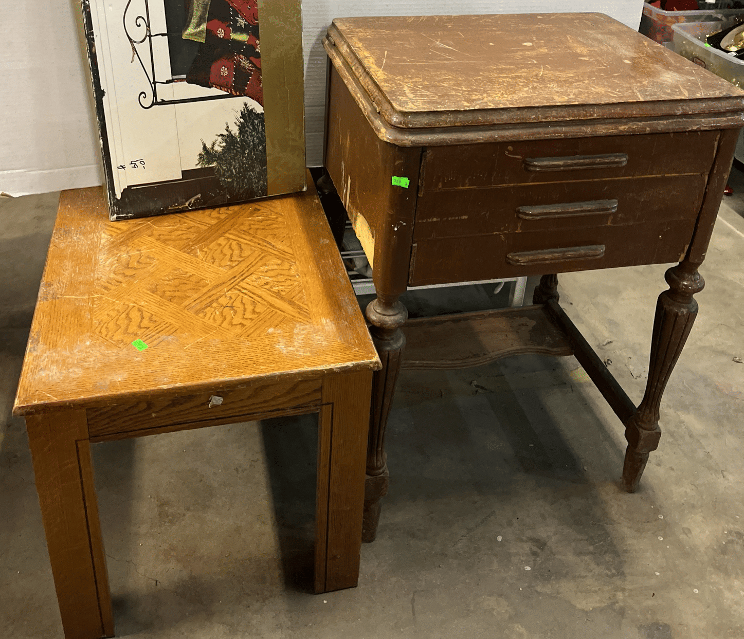 1206 4 VHS tape storage cases, end table 24x24x21, end table 24x28x22