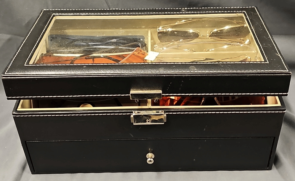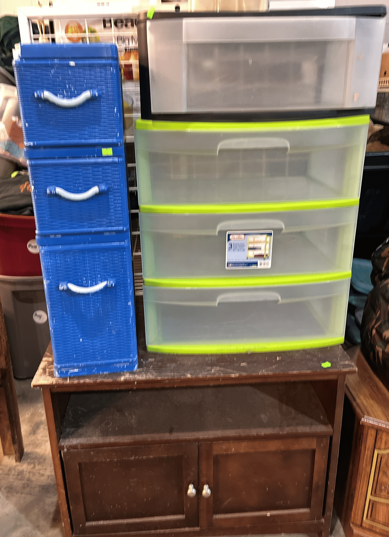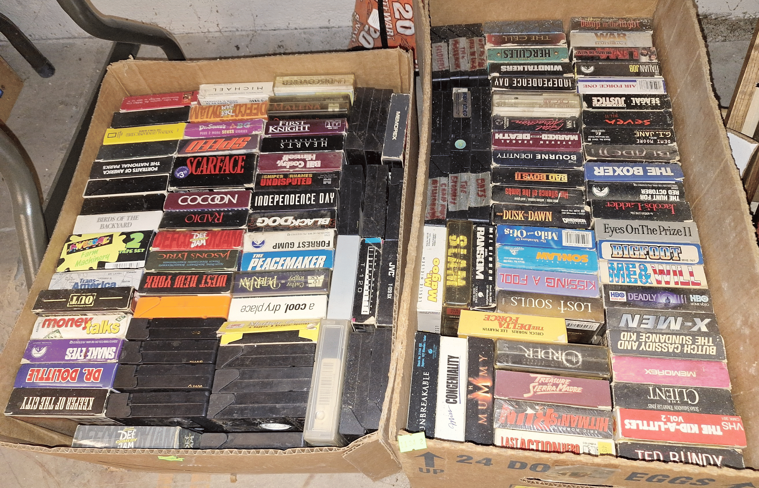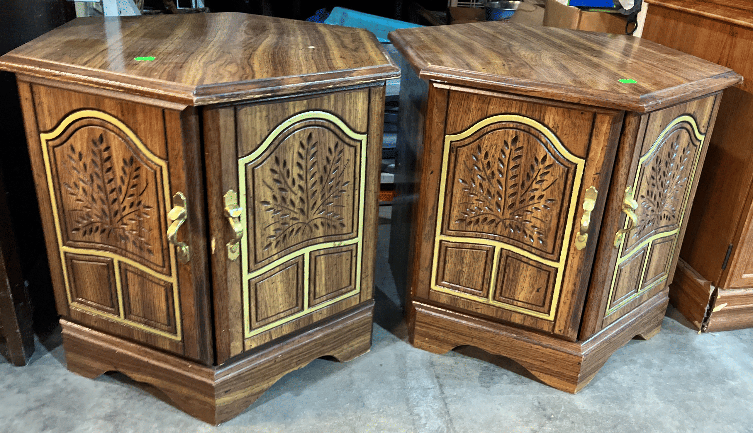 1206 4 VHS tape storage cases, end table 24x24x21, end table 24x28x22
