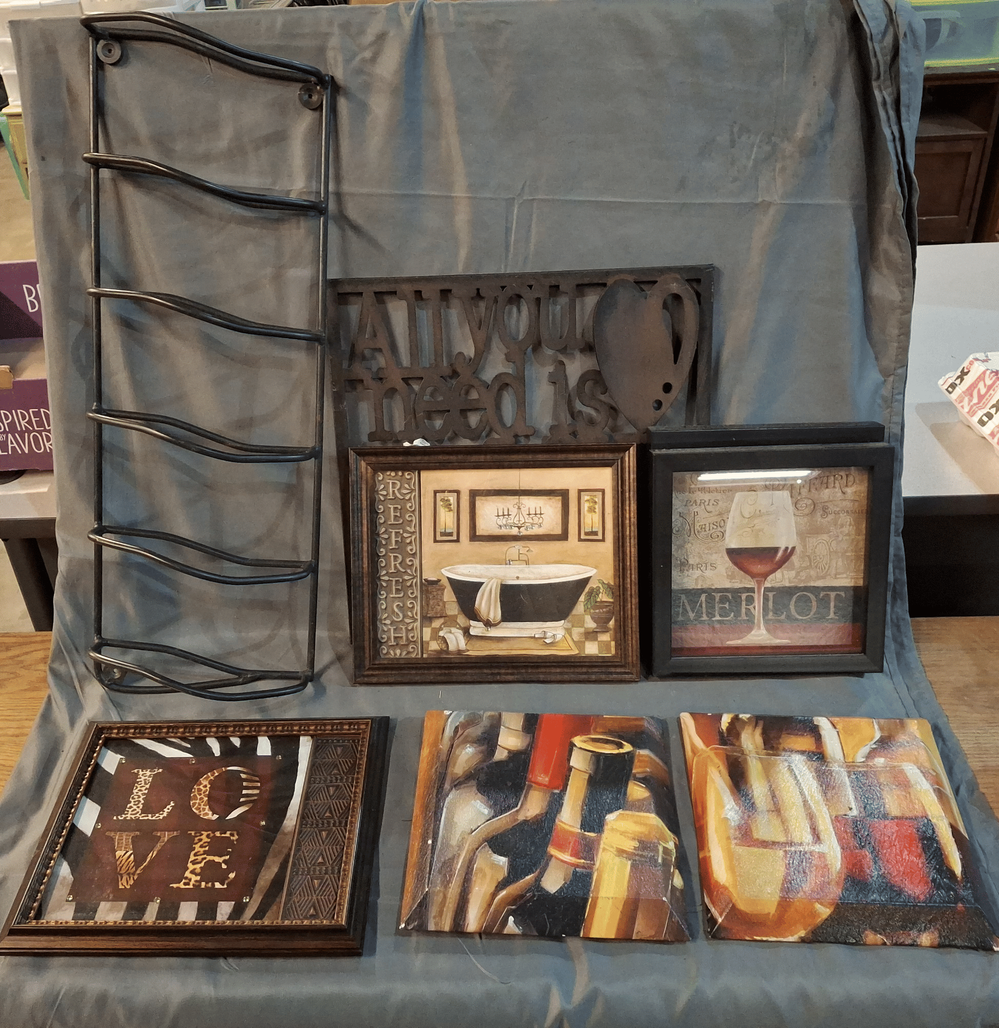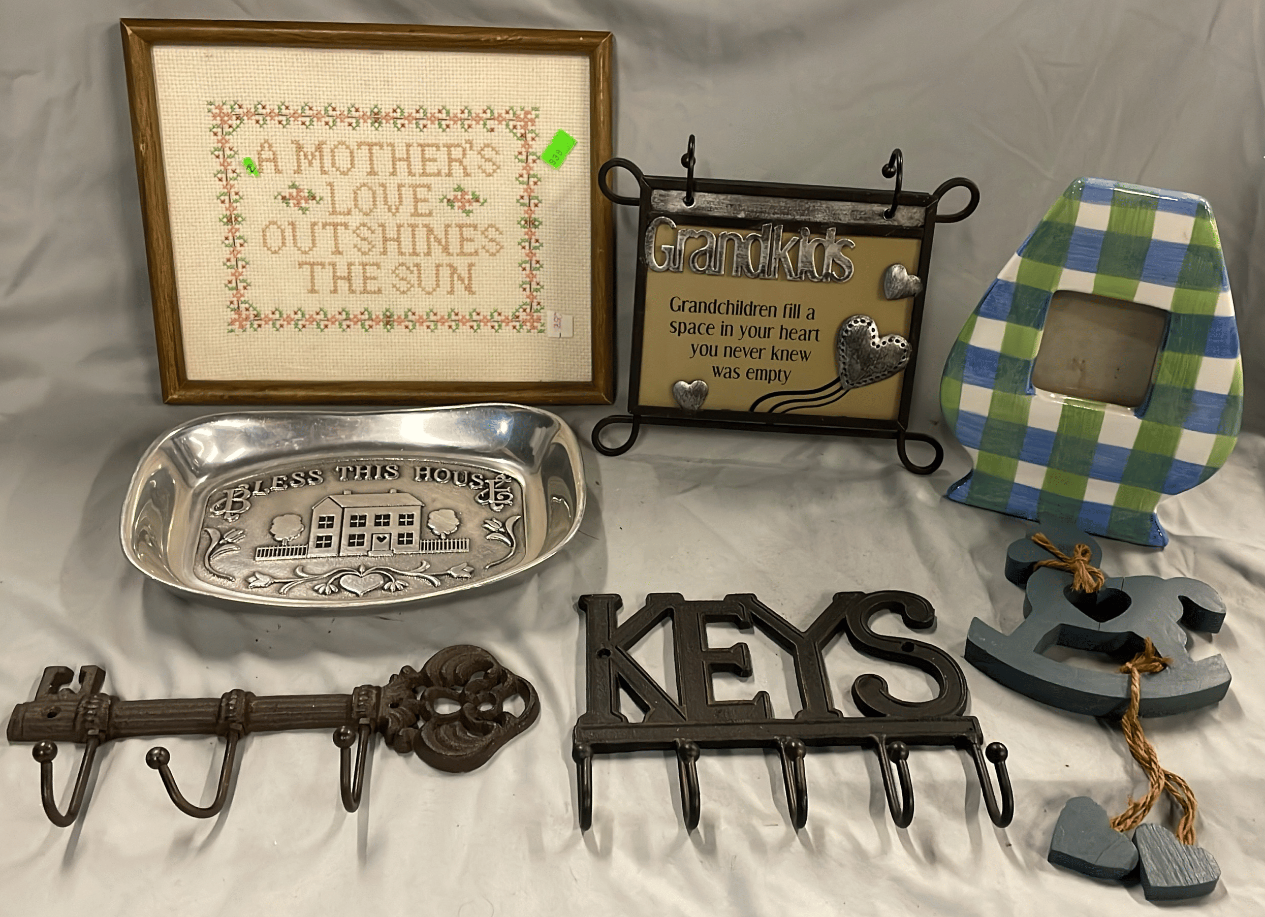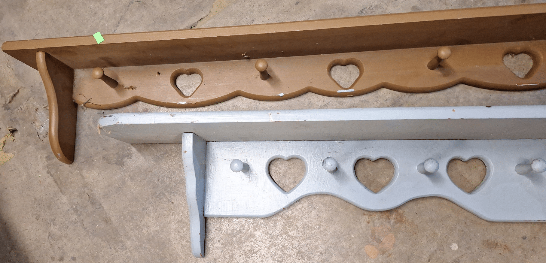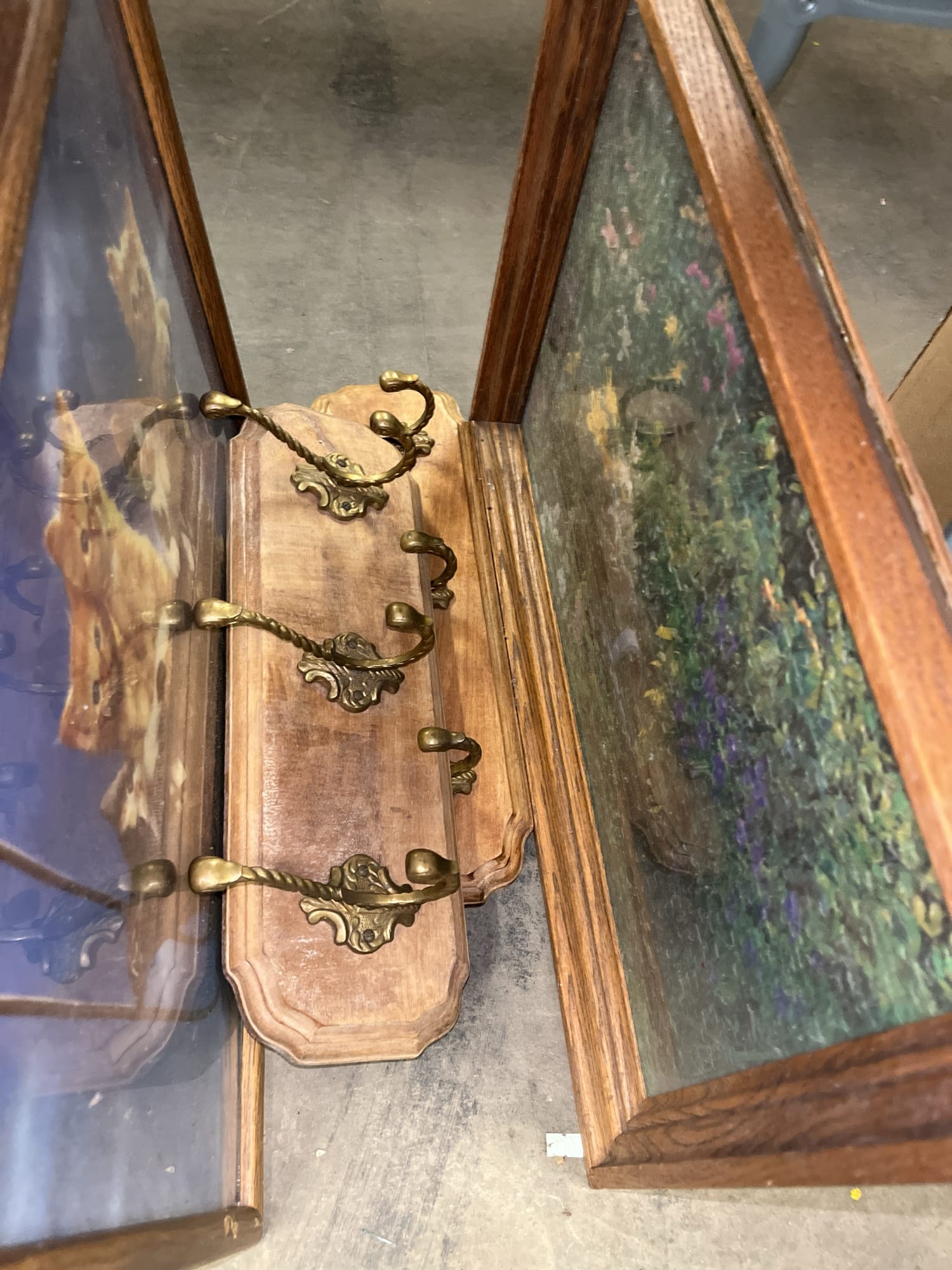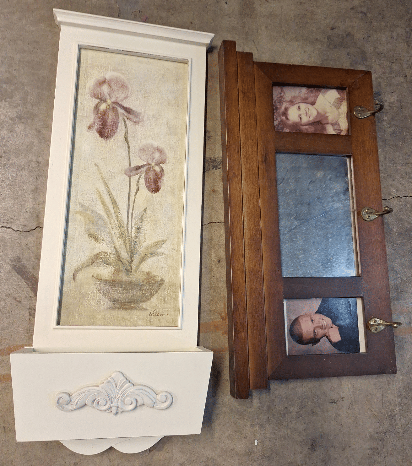 1168 Floral Letter Holder & Wood Decor Shelf with photo frames and coat hooks 26x10