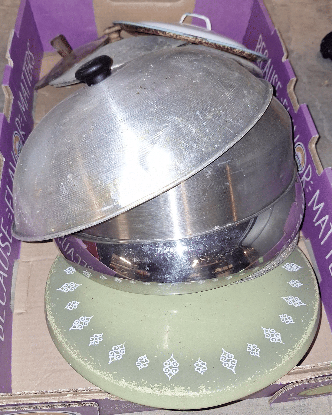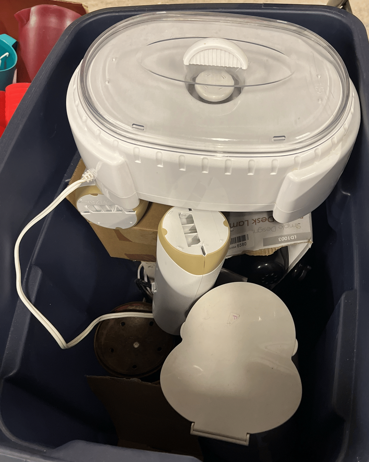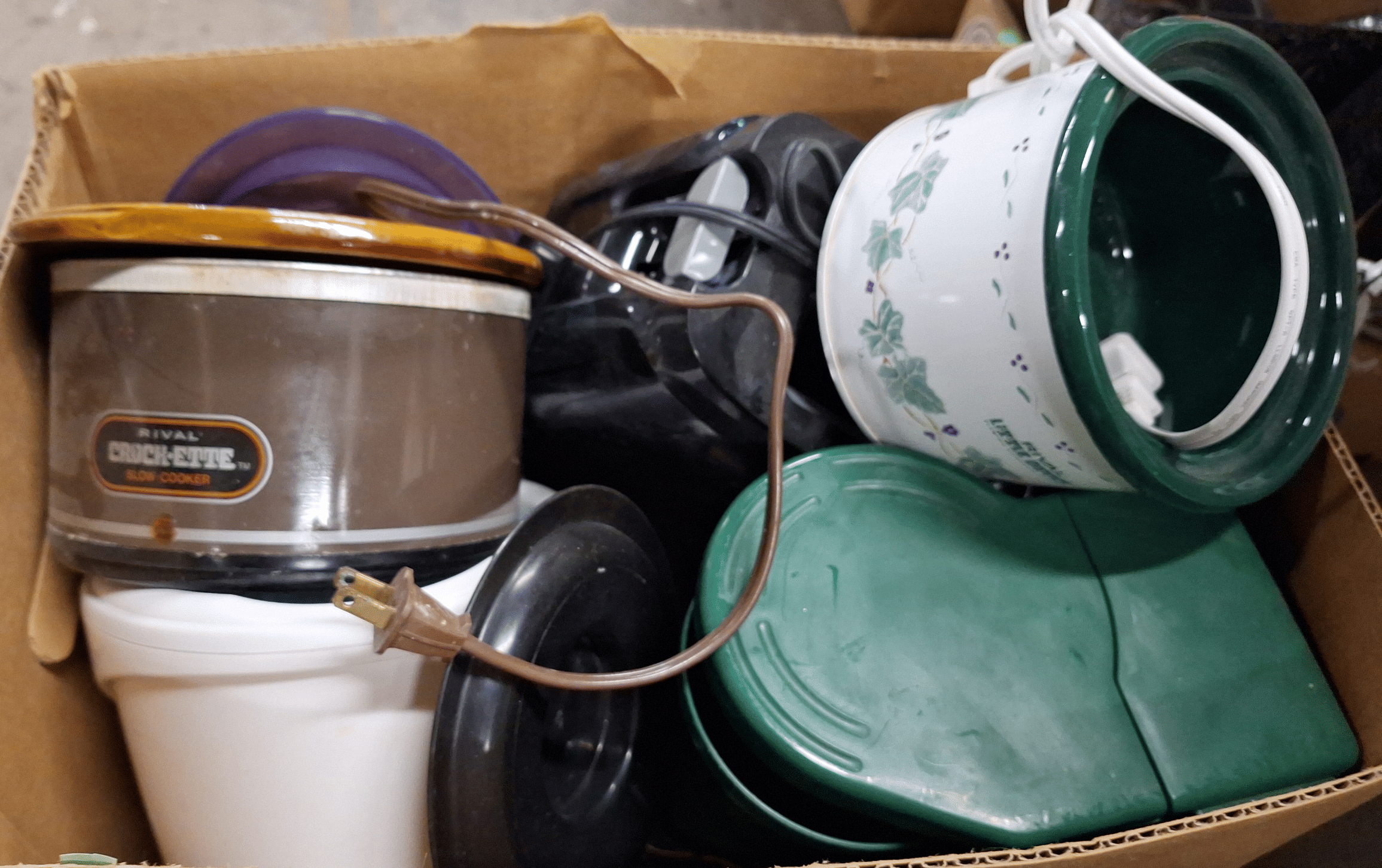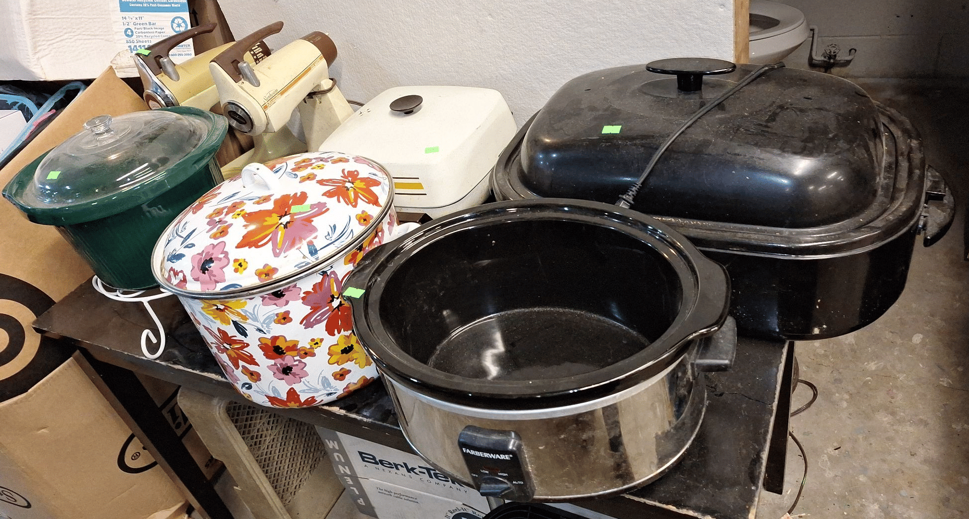 1217 2 Sunbeam mixers no bowls or attachments. Roaster, farberware food warmer no lid, metal pit, crock pot liner