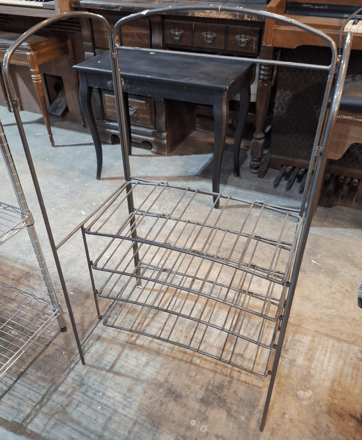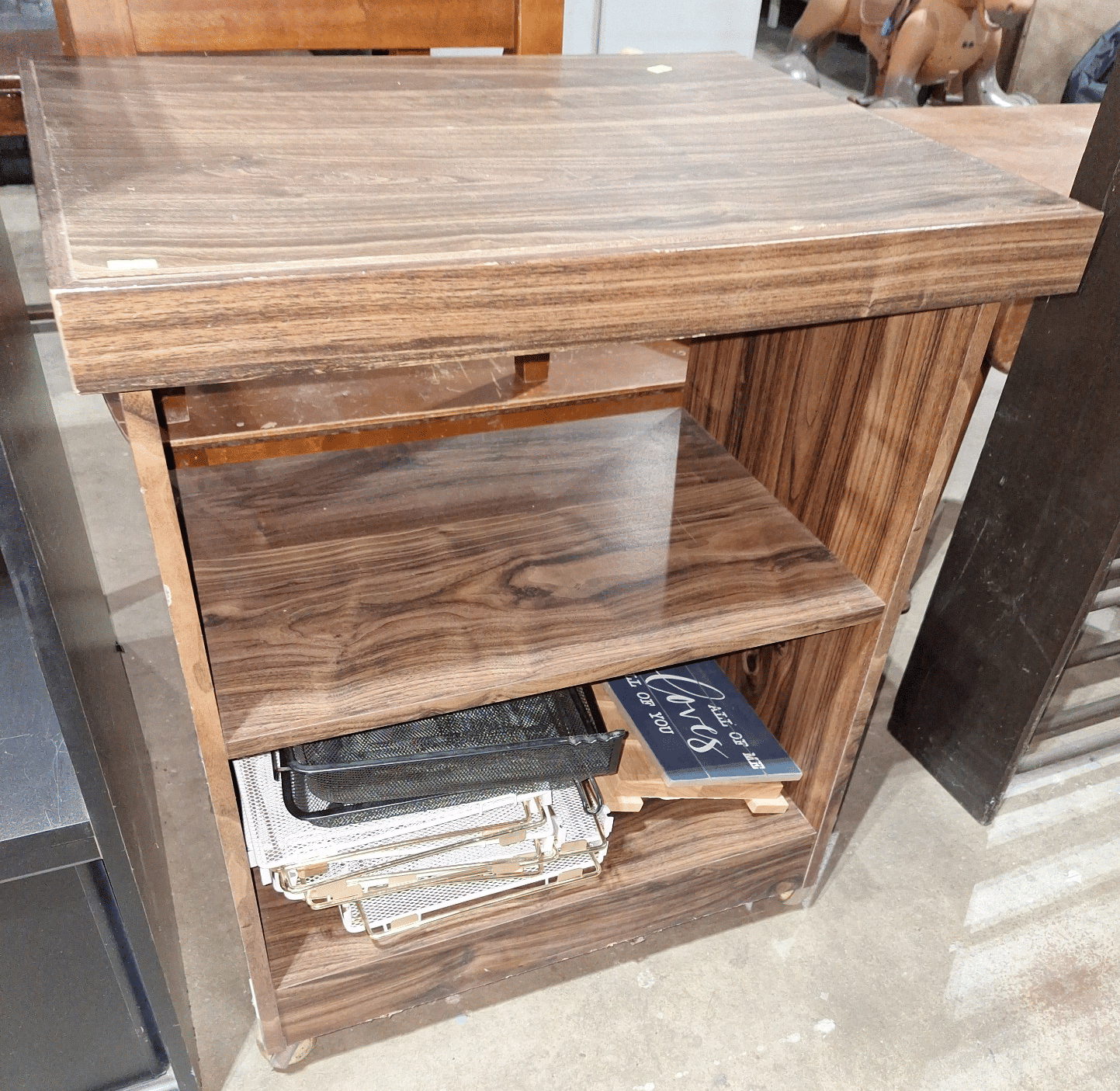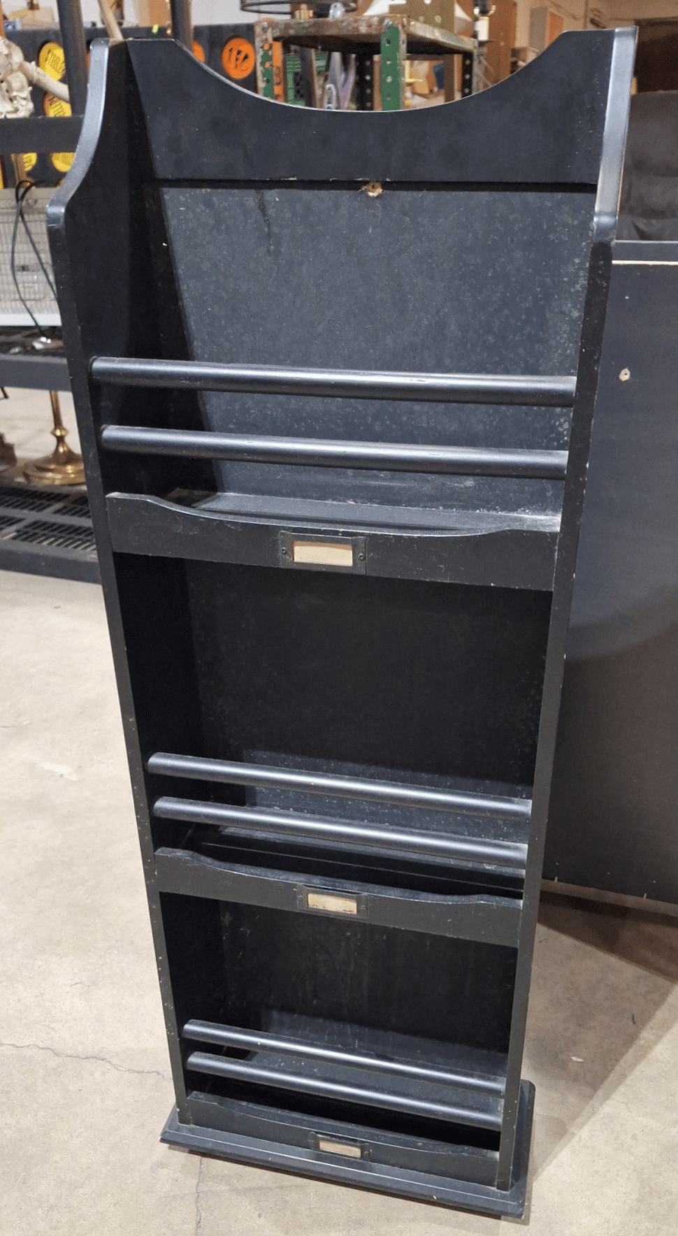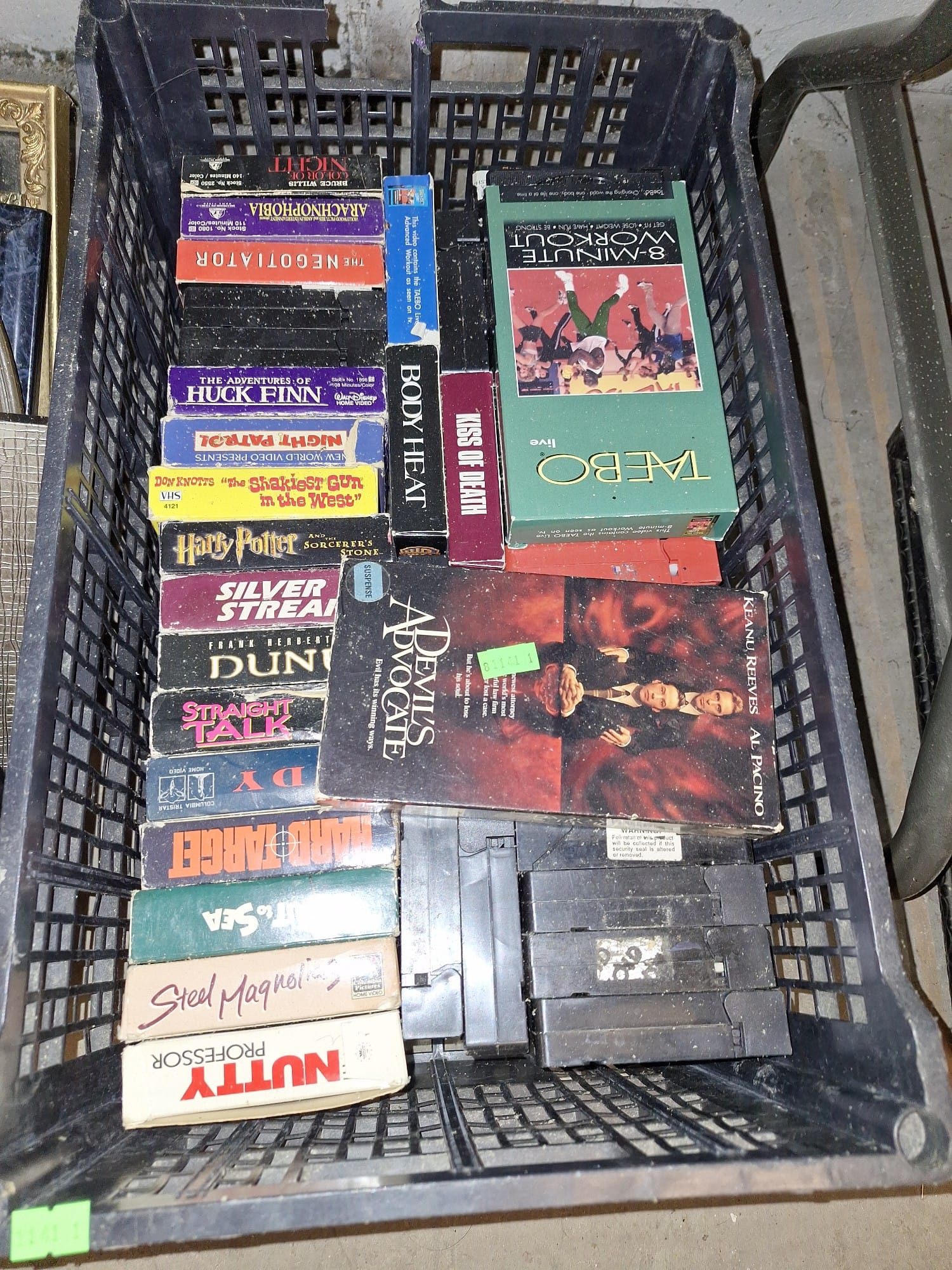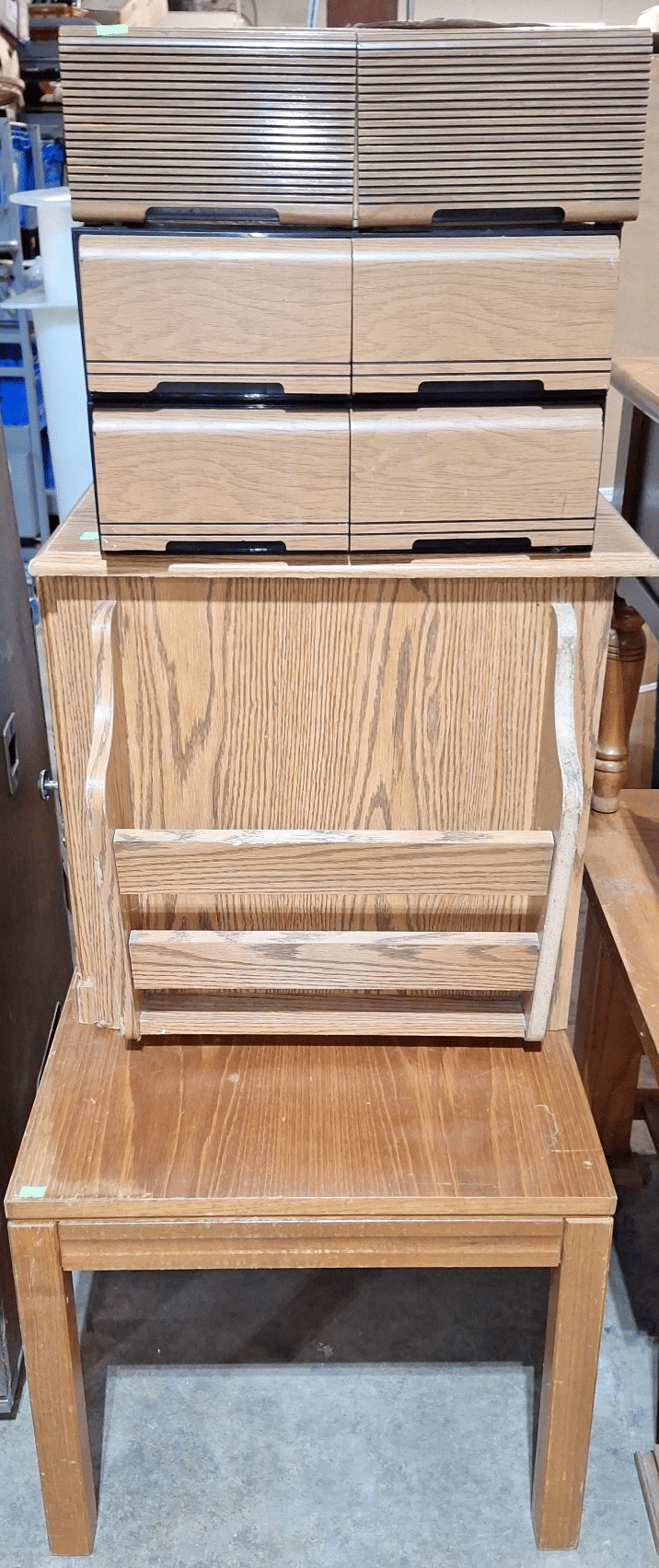 1205 3 VHS tape storage cases, end table with magazine rack 17x22x20, end table 21x29x19
