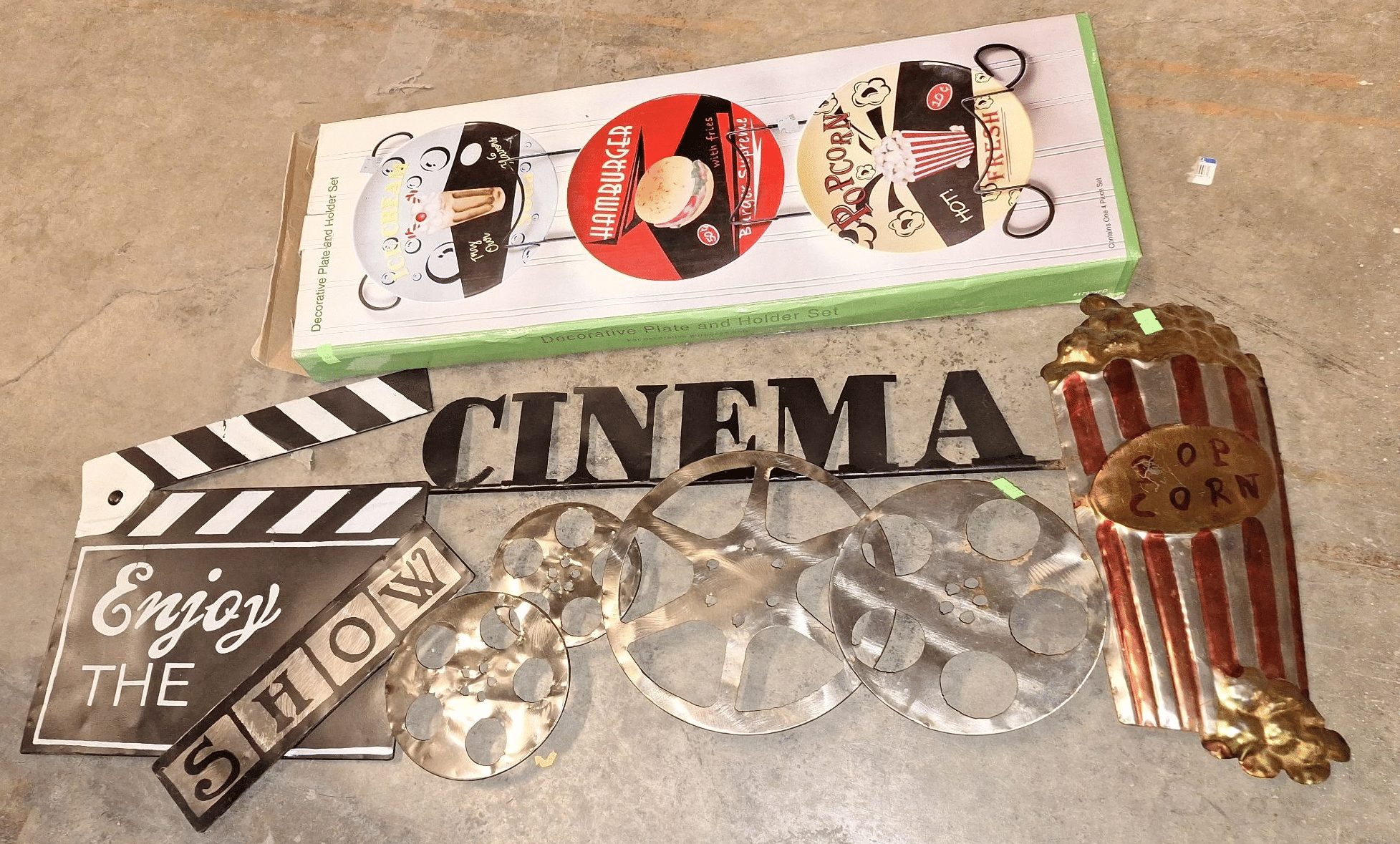 1159 Metal Cinema wall decor, decorative plate and holder set