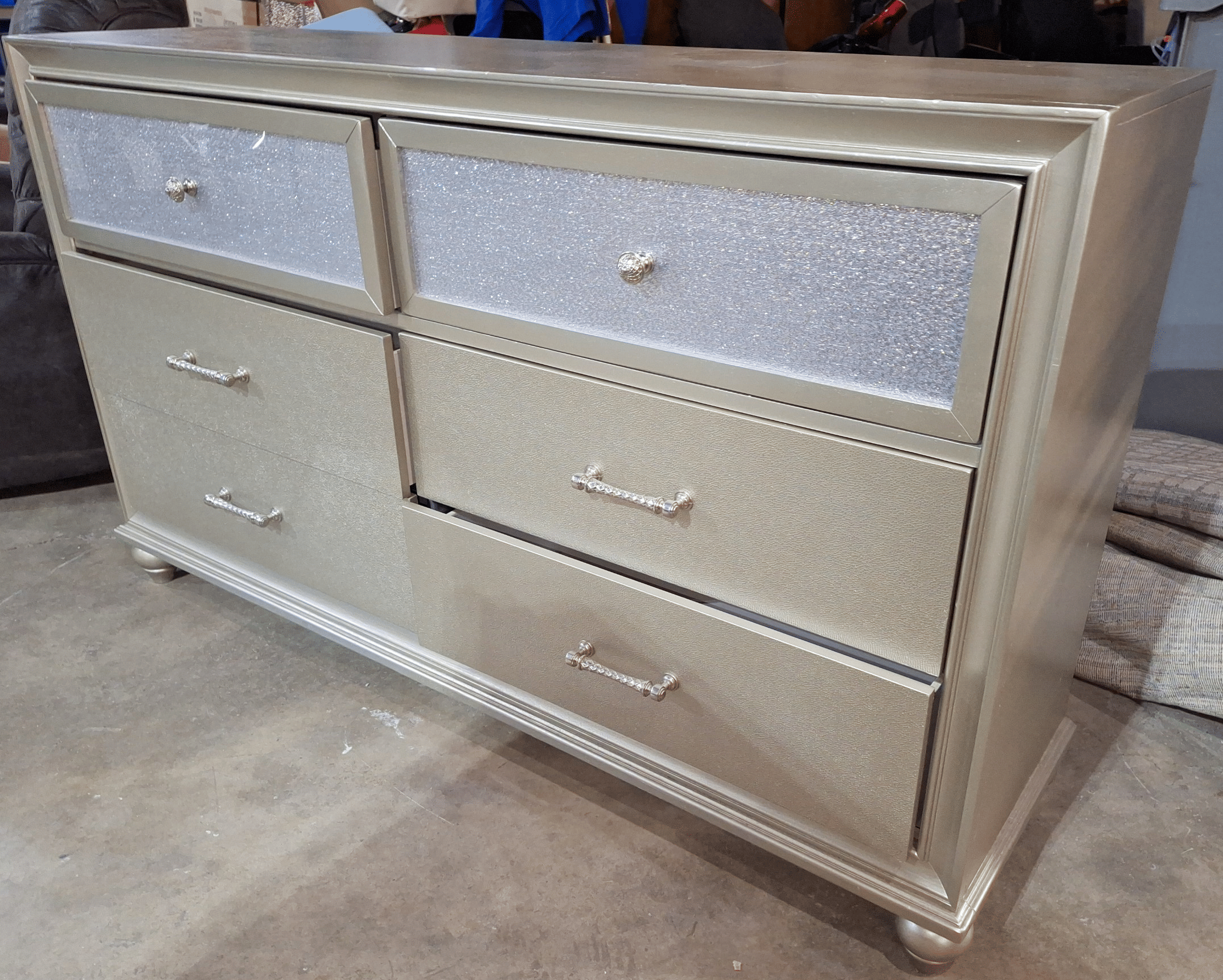 1200 Silver tone 6-drawer dresser 63x17x37 1/2