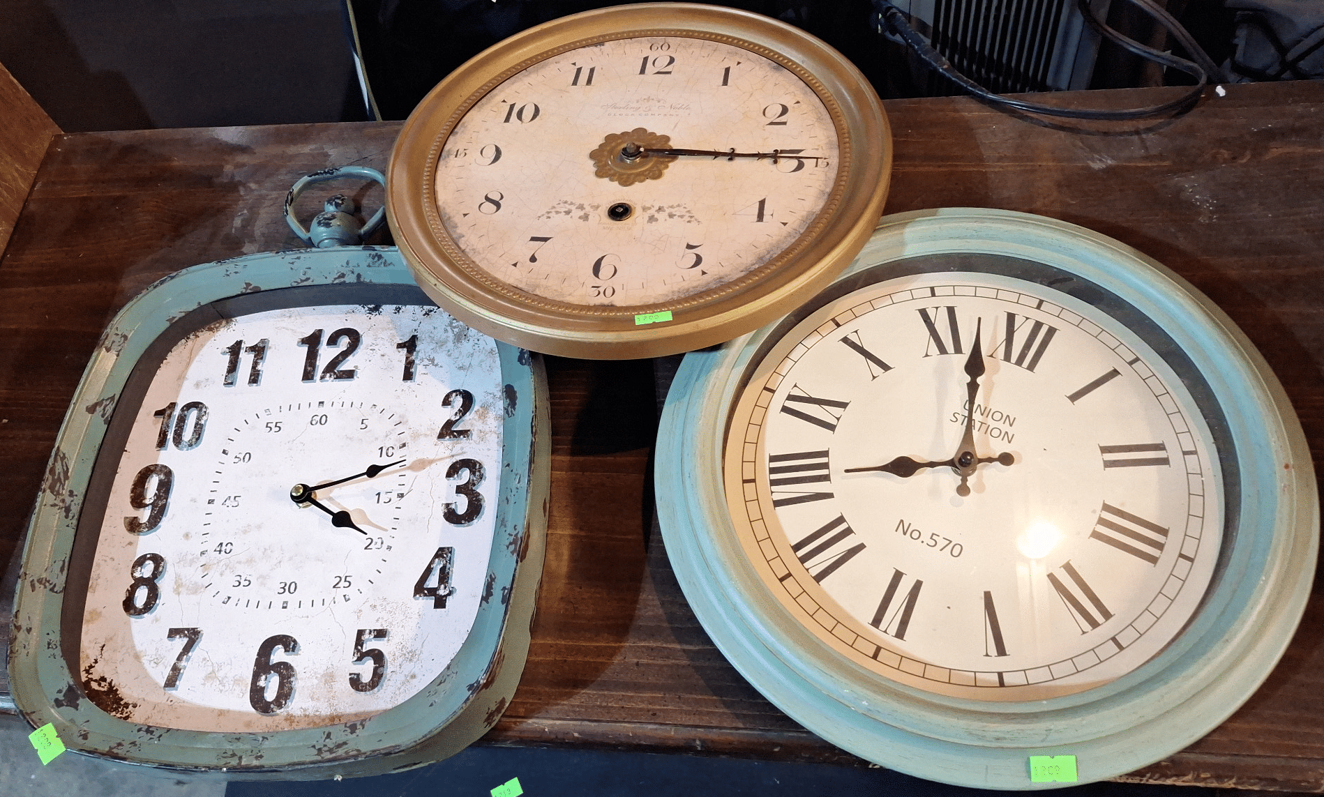 1209 3 Wall clocks inc. Union Station No. 570, Sterling Noble Clock Company