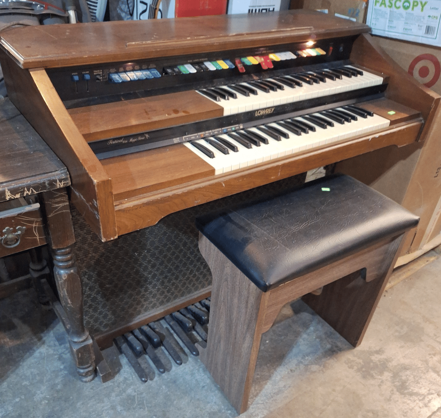 1216 Lowery Festival with Magic genie organ - powers on 23x42x38 and bench 12x22x22
