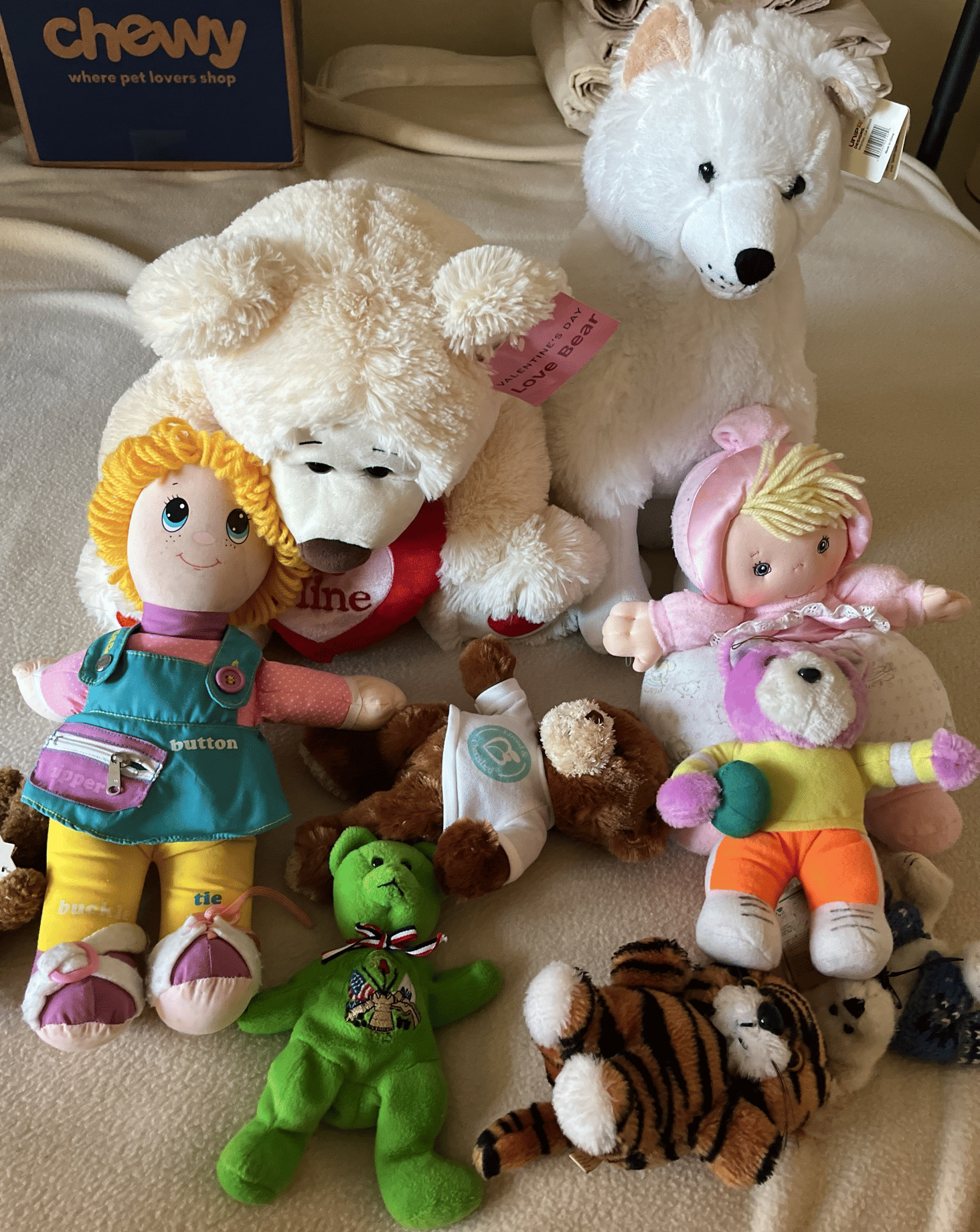 107 Stuffed animals and doll assortment