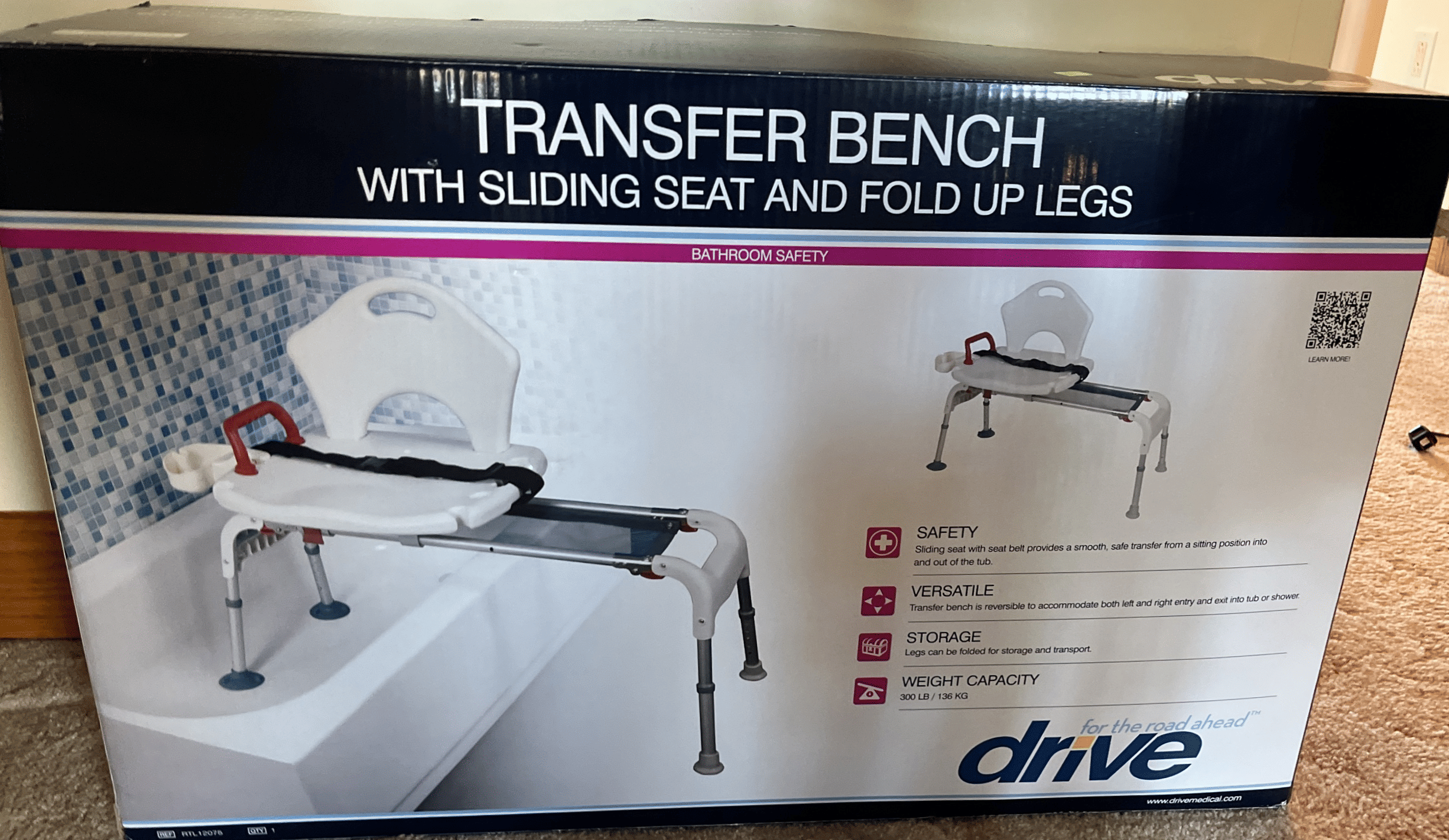 109 Transfer Bench with sliding seat and fold up legs