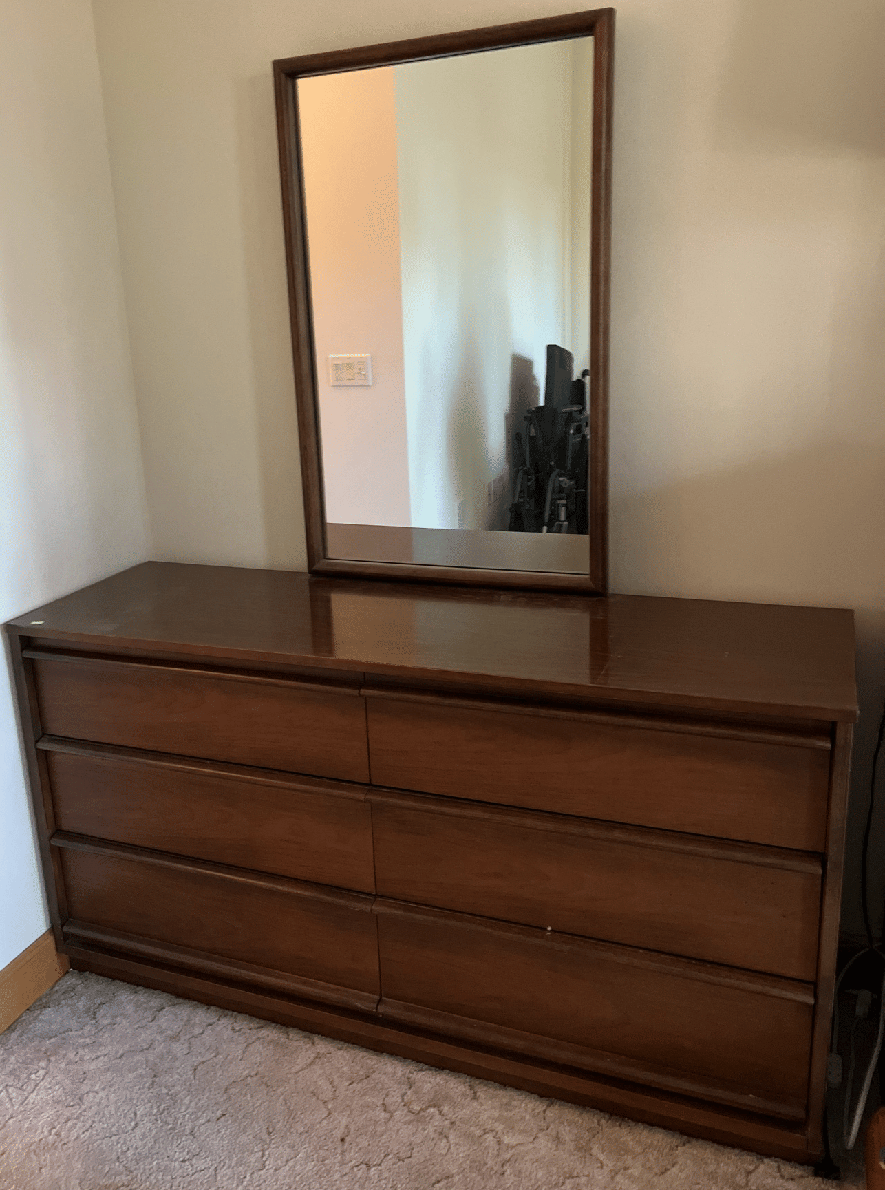 111 MCM Bassett 6 Drawer Dresser with Mirror 56"x18"x68"