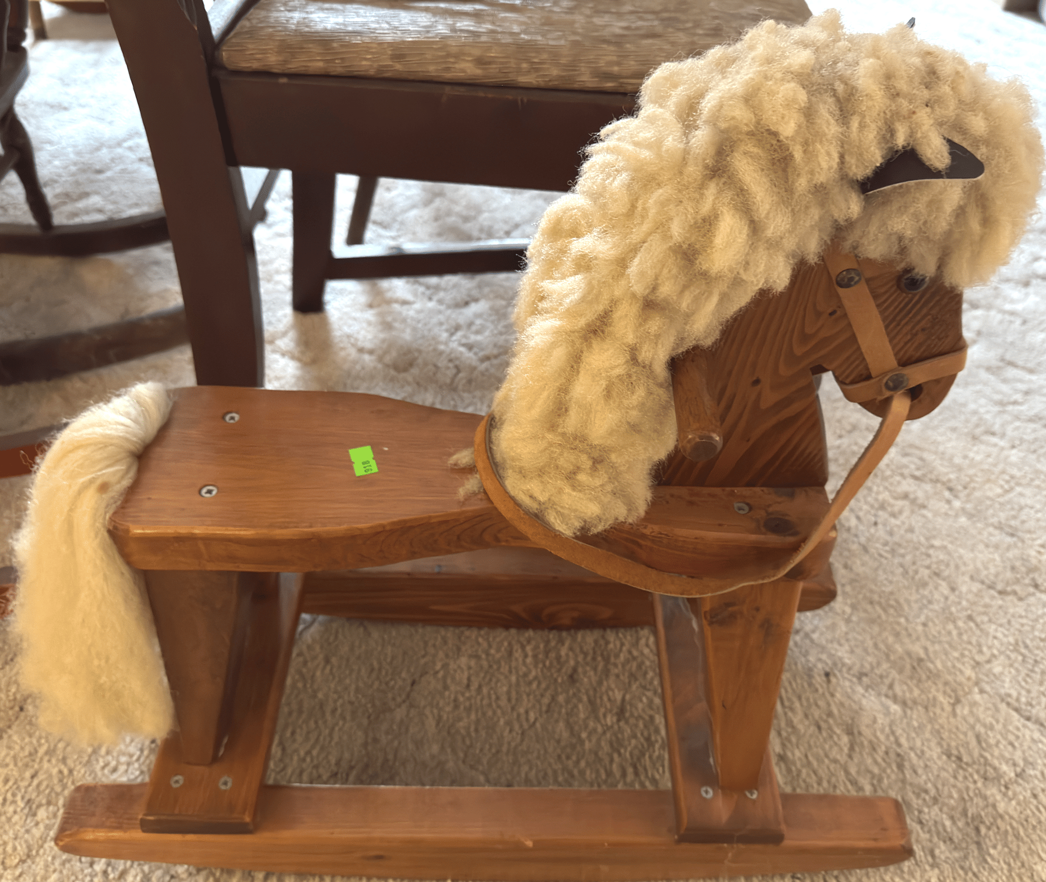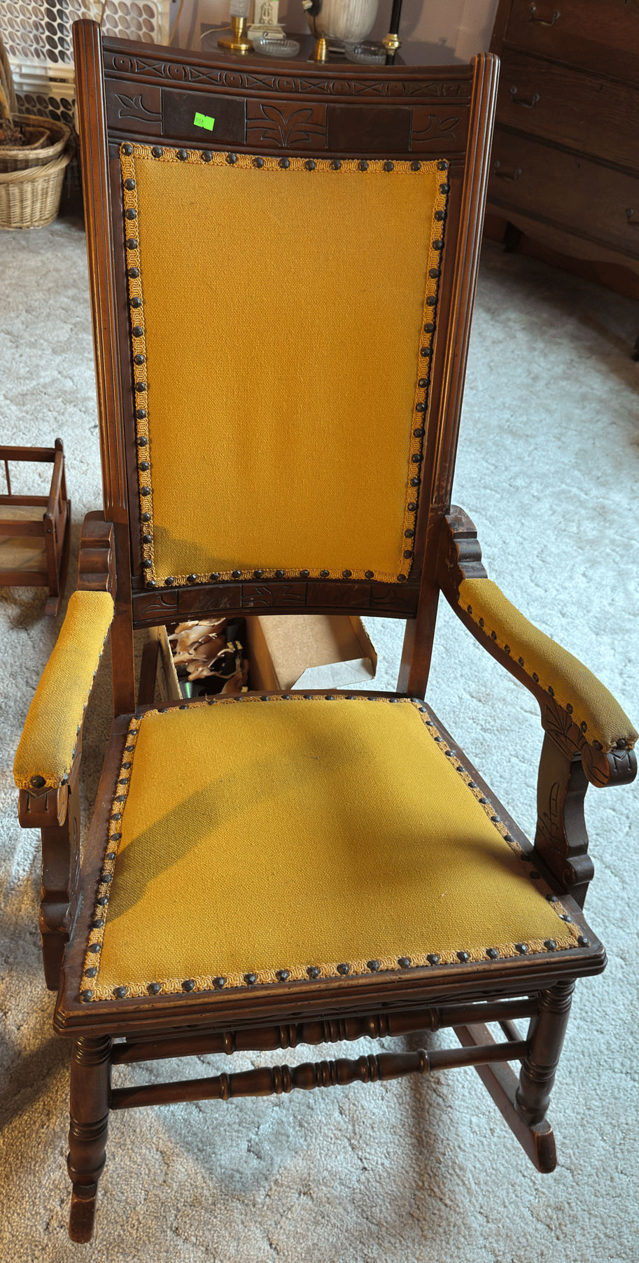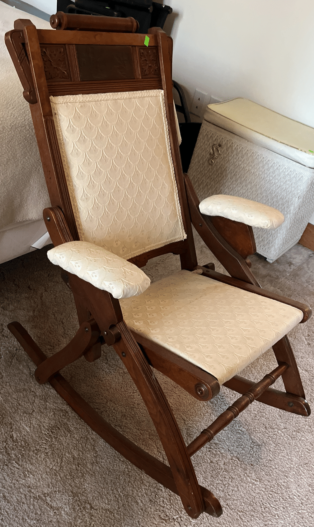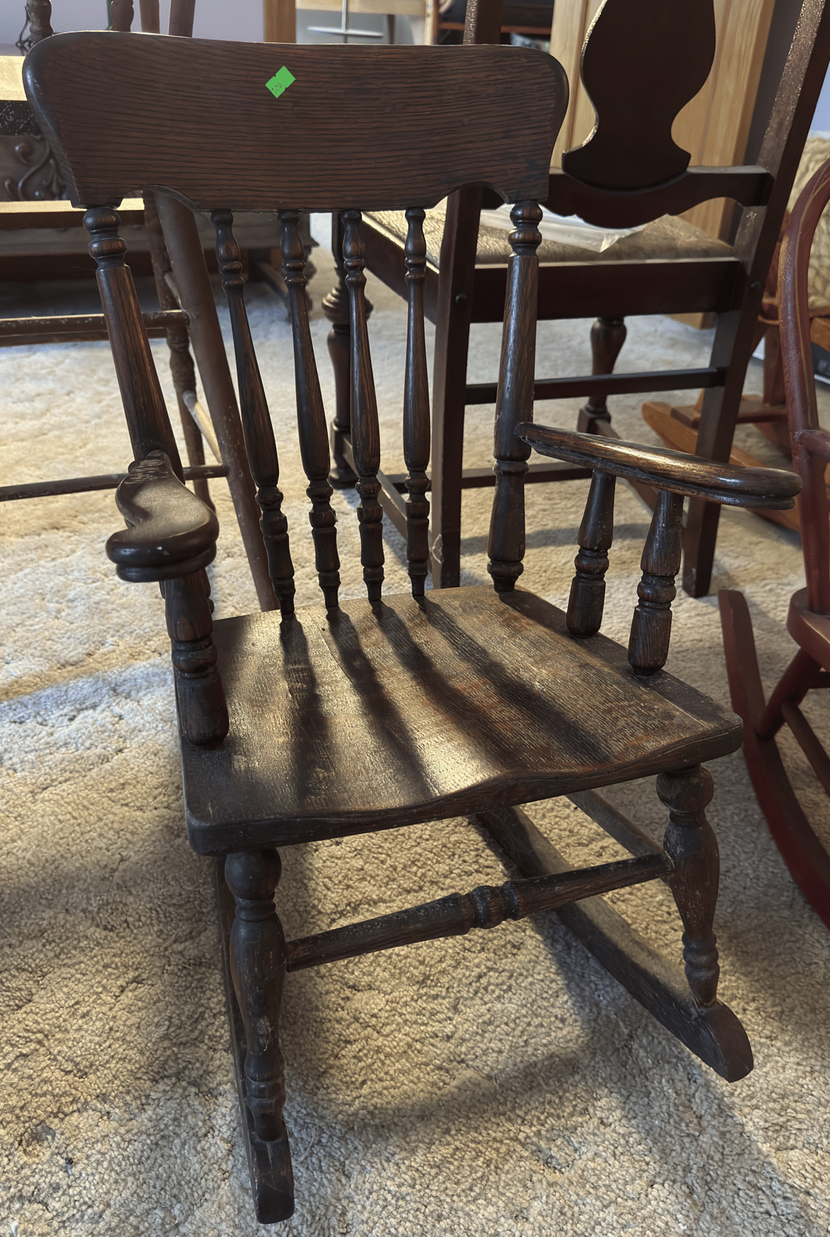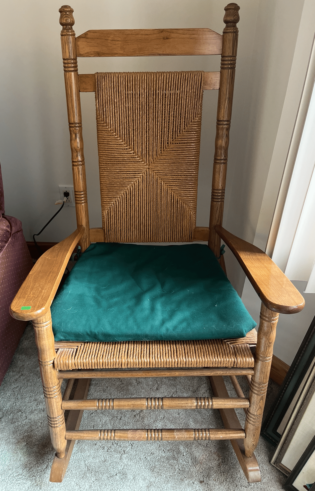 118 Turned wood rocker with needlepoint seat and back 19x36"