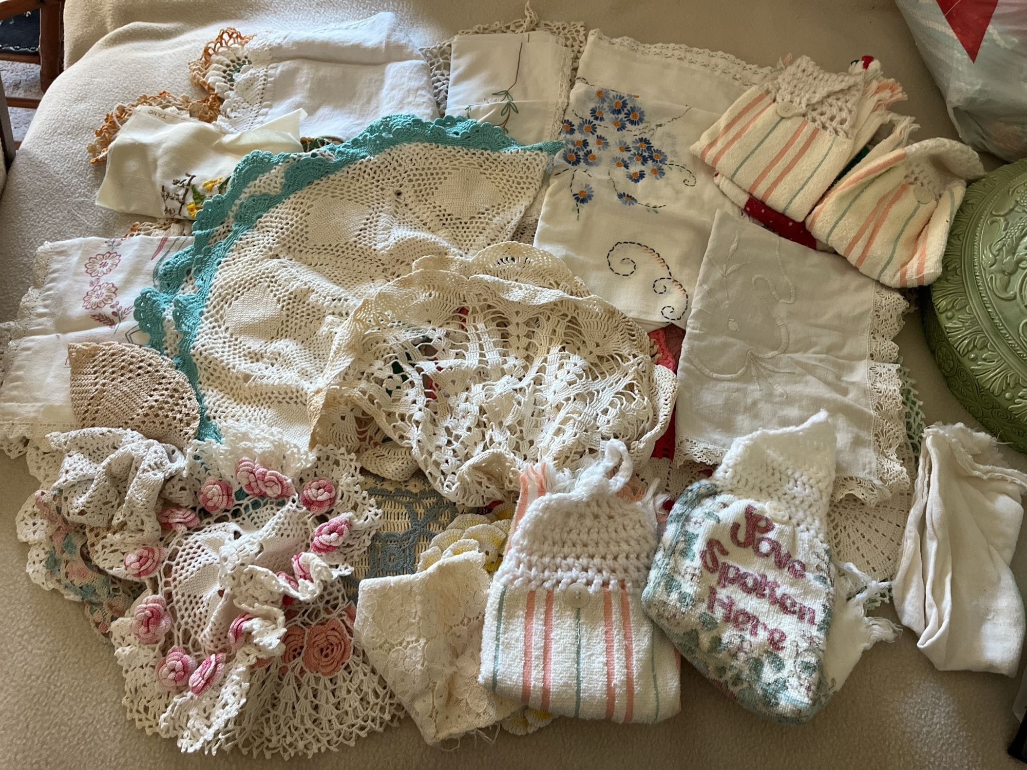 131 Doilies, hot pads, table scarves, hand towels