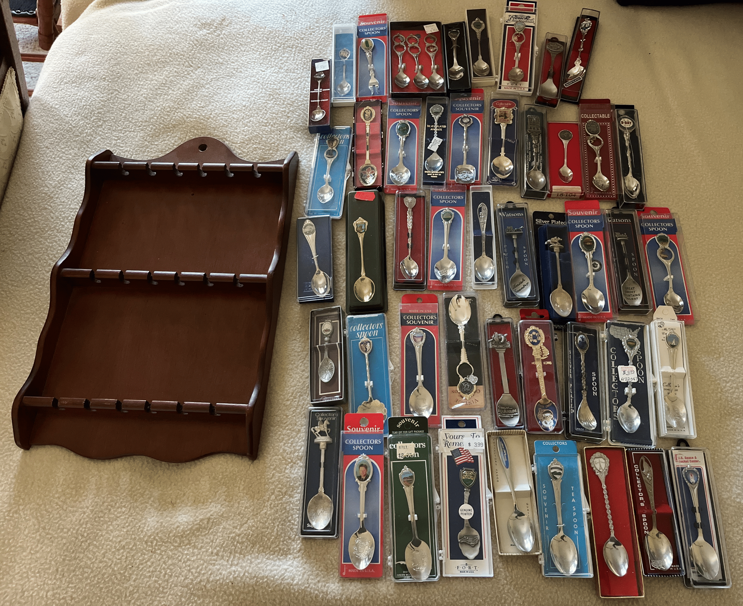 132 Collector spoons and wood display