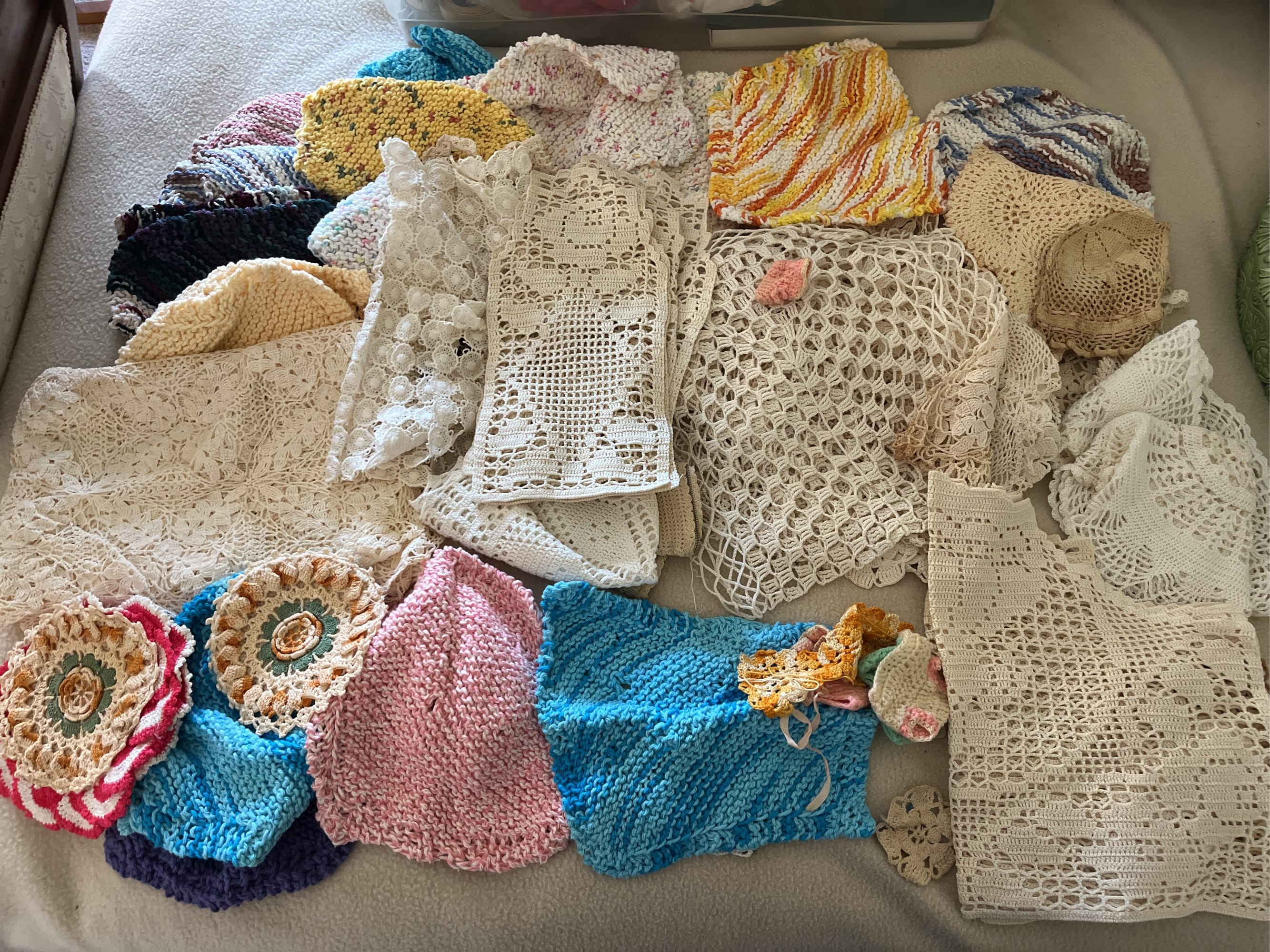 135 Doilies, tablecloths, dish cloths and hot pads