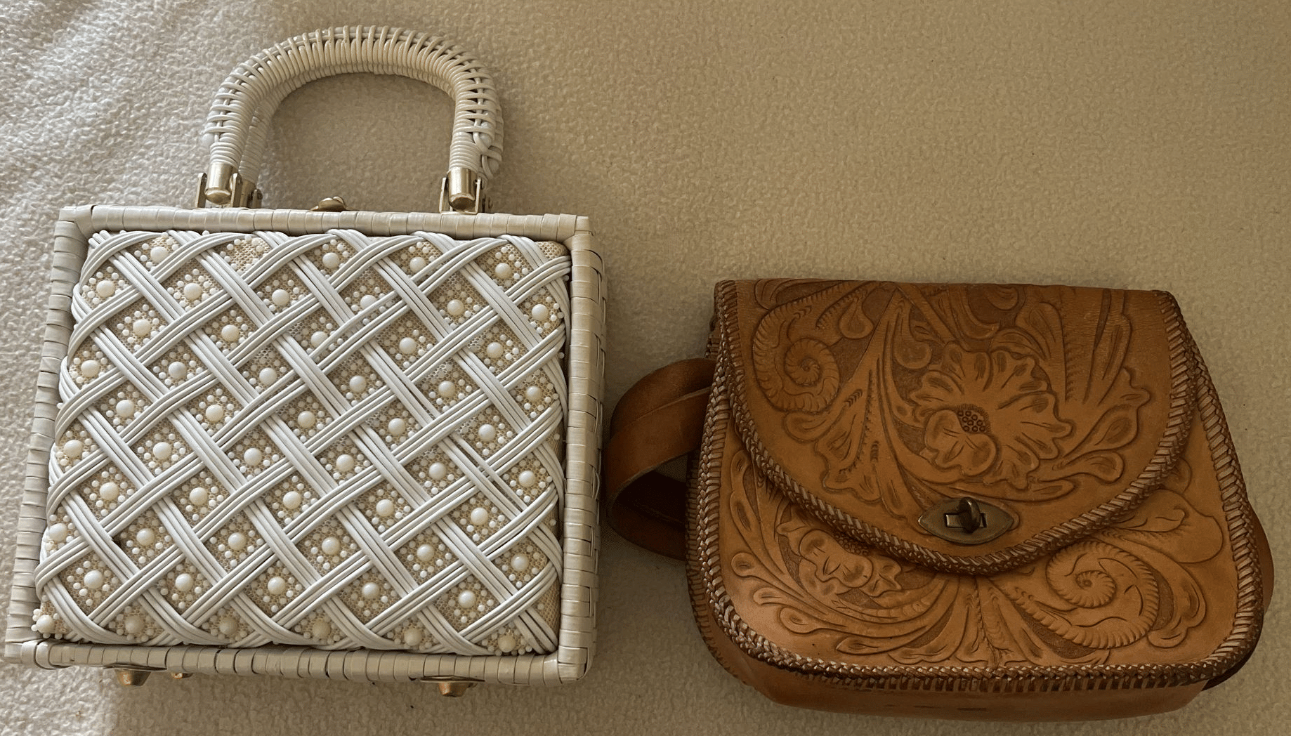 137 Leather purse, beaded hand bag