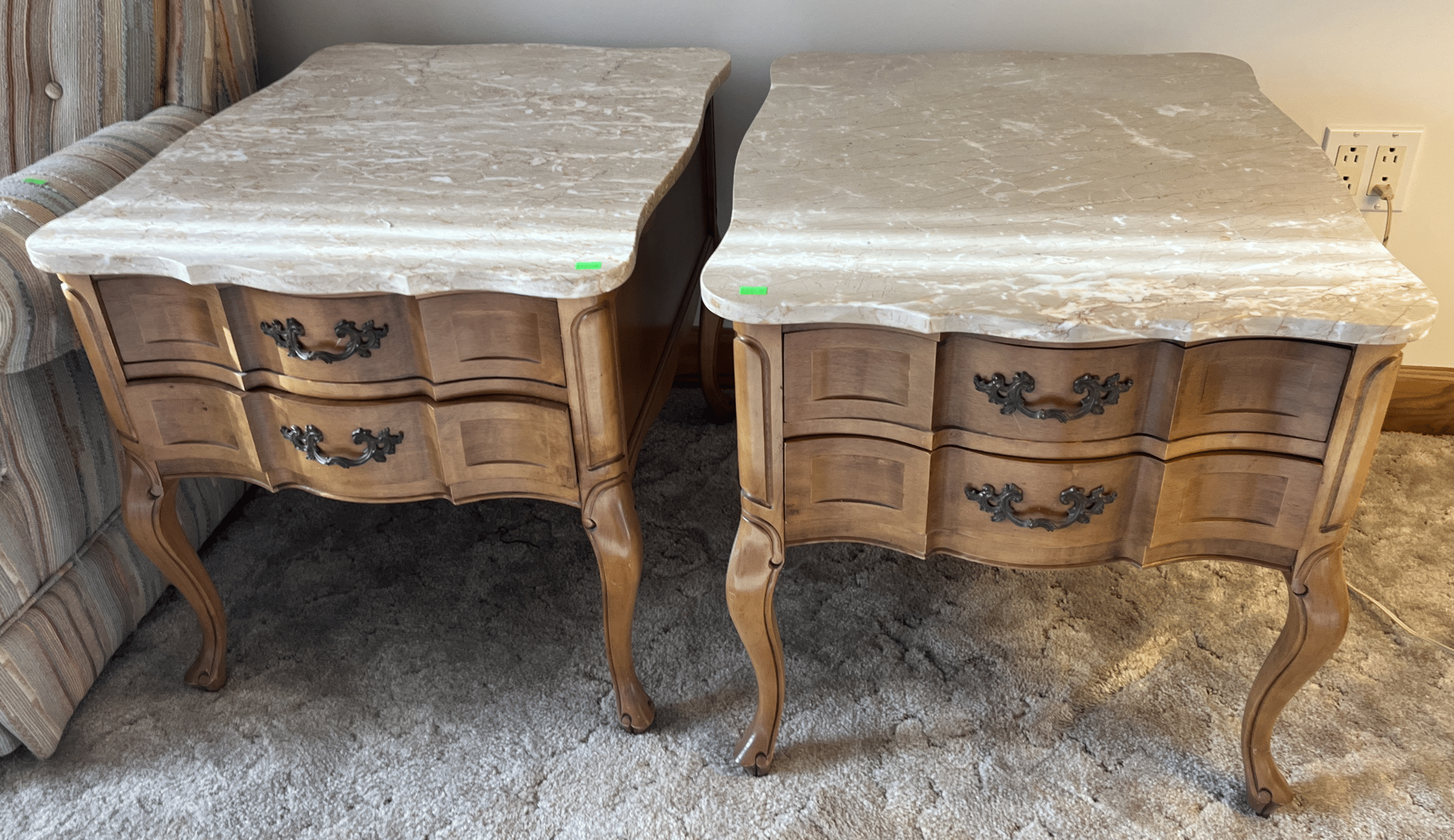 207 (2) Harmony marble top wood end tables 27"x22"x22"