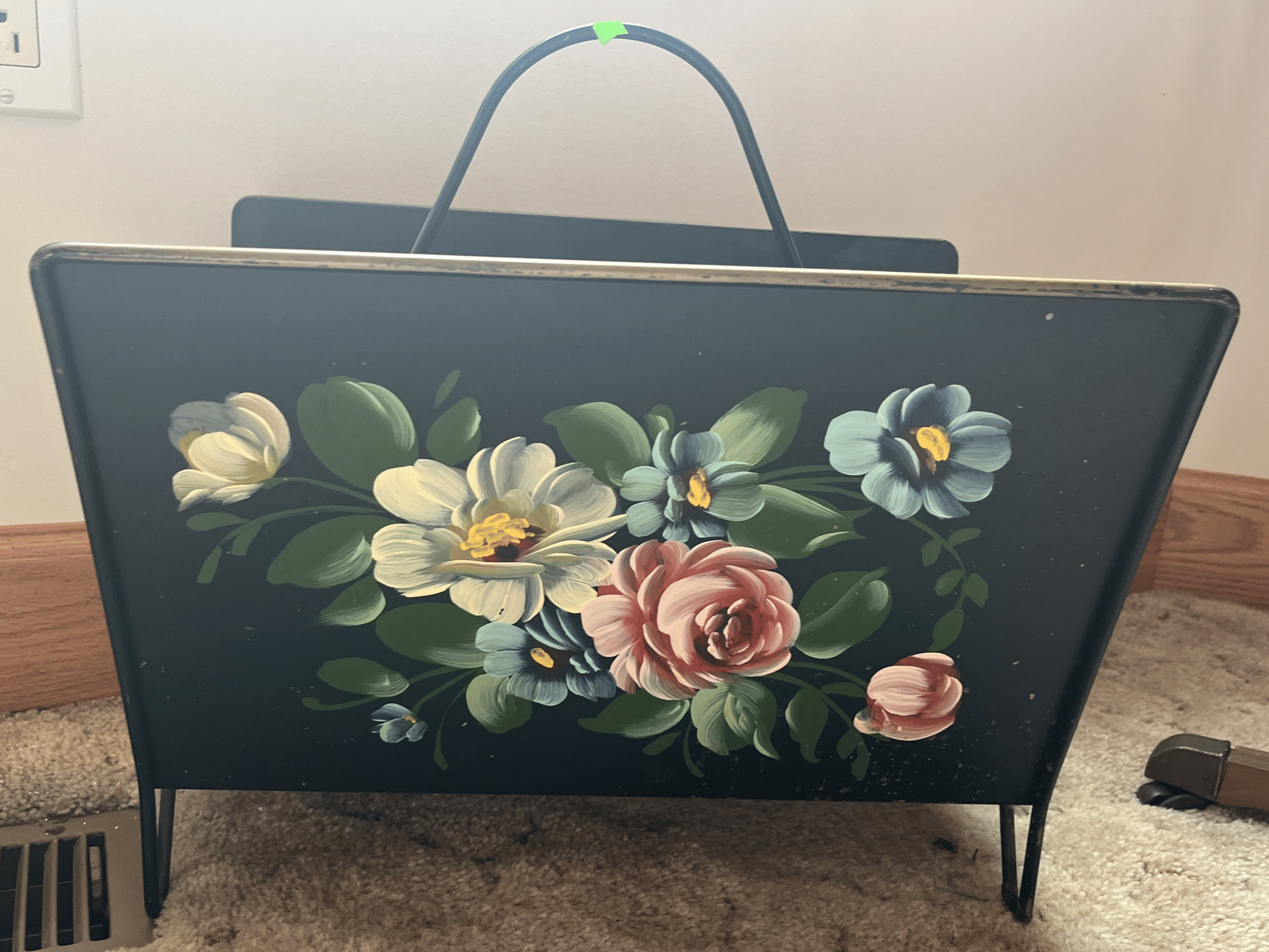 212 Metal magazine rack with floral painting