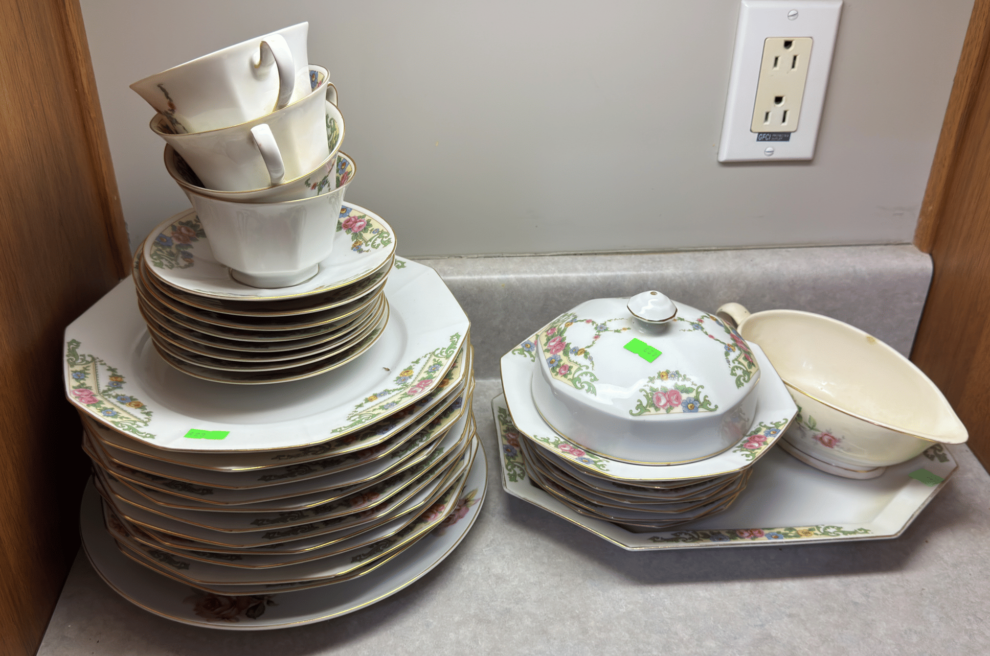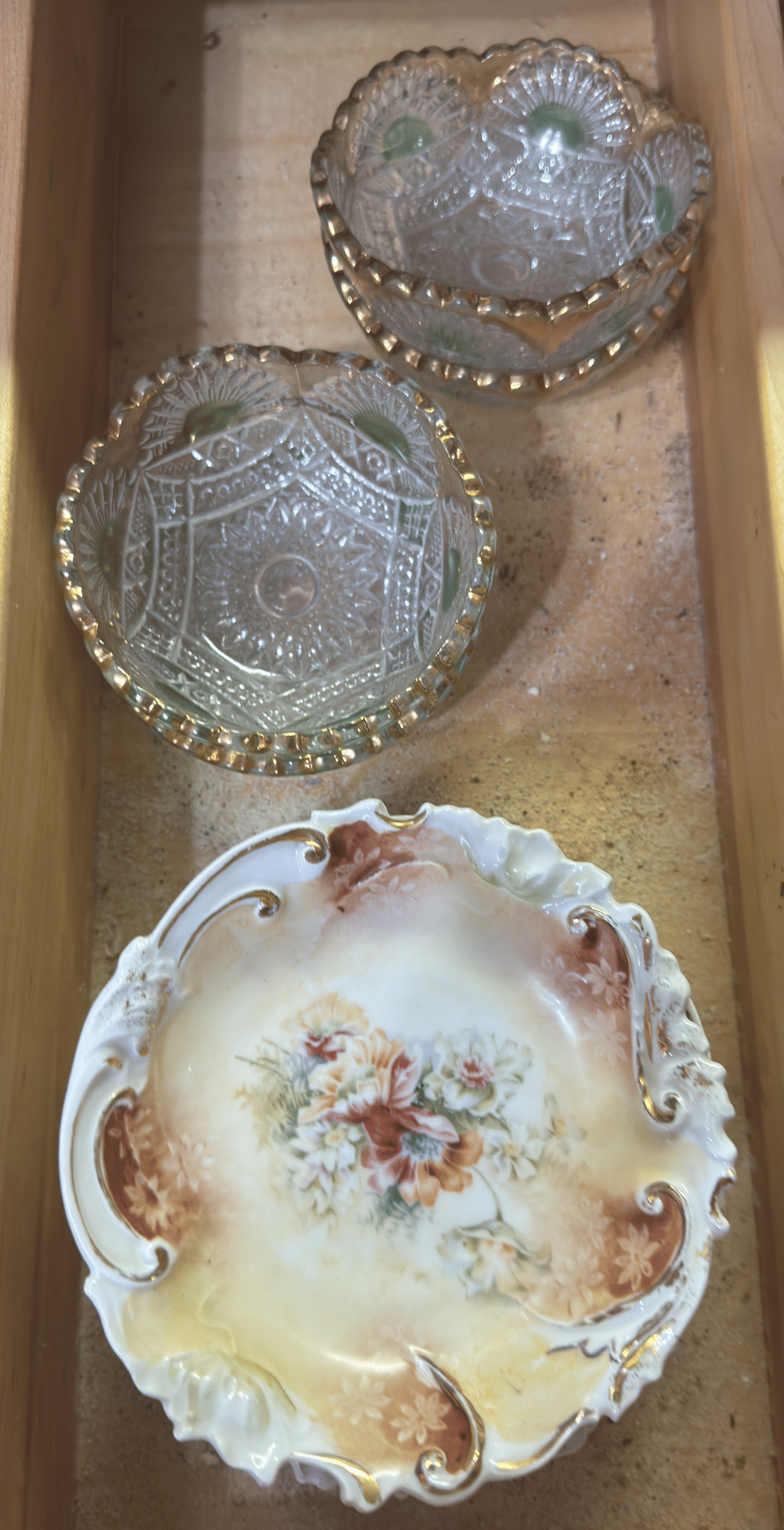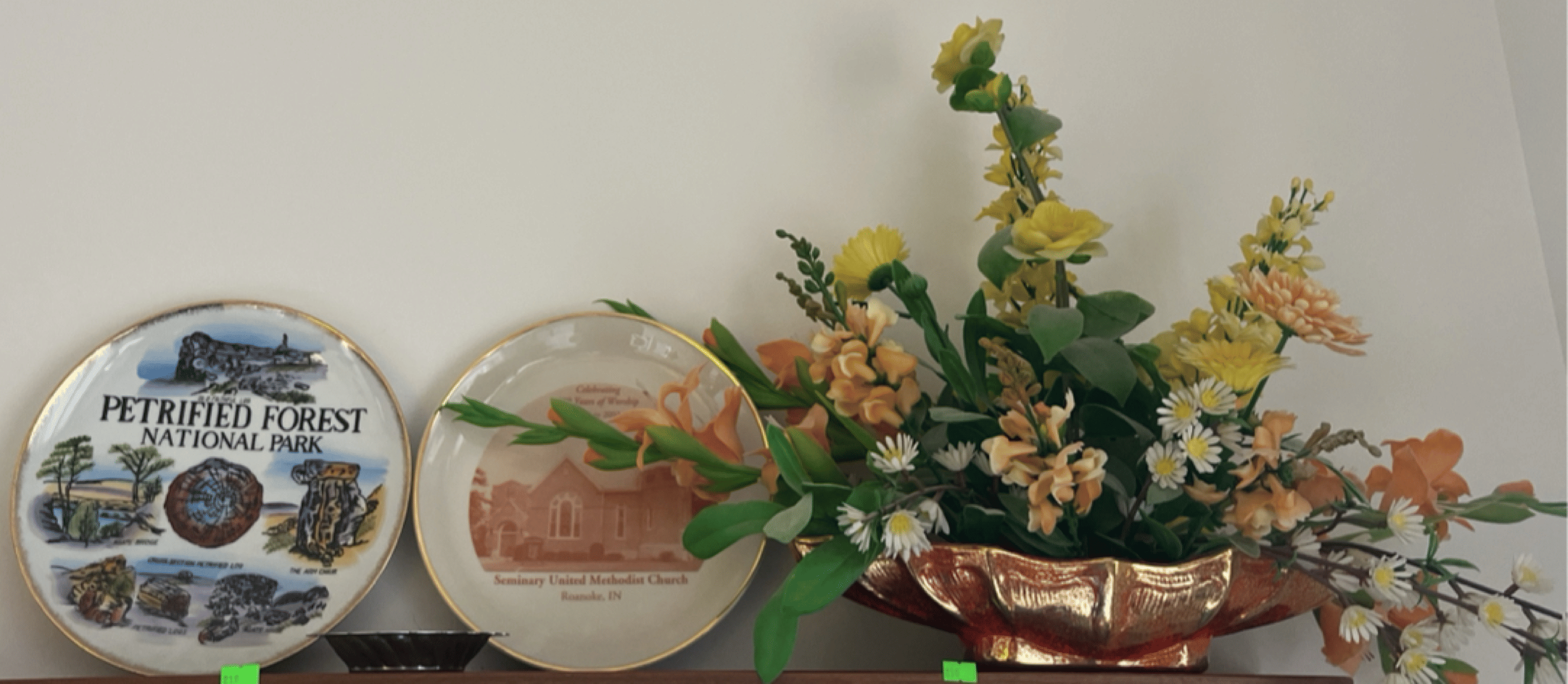 216 Seminary United Methodist Church plate, Petrified Forest plate, floral arrangement