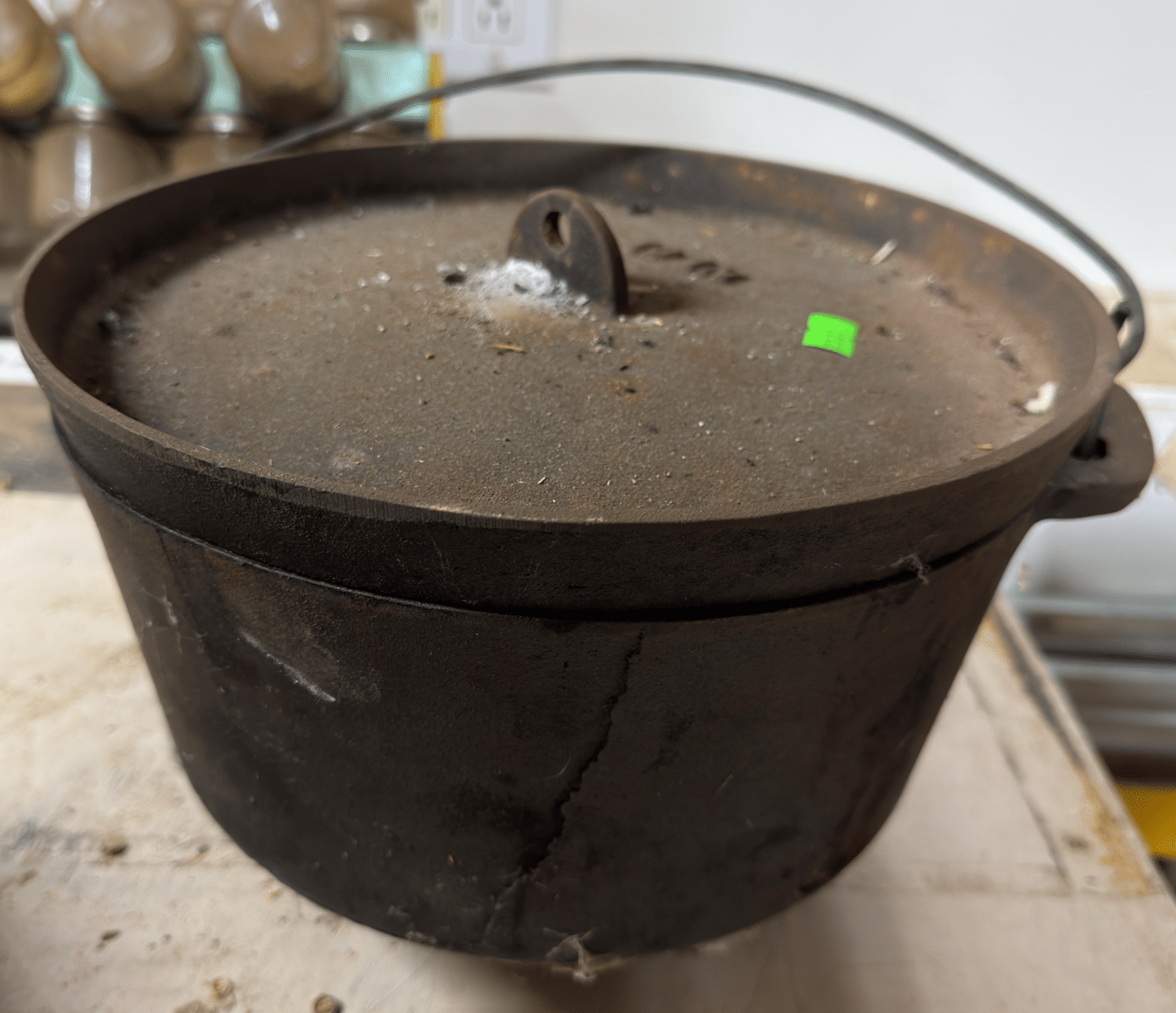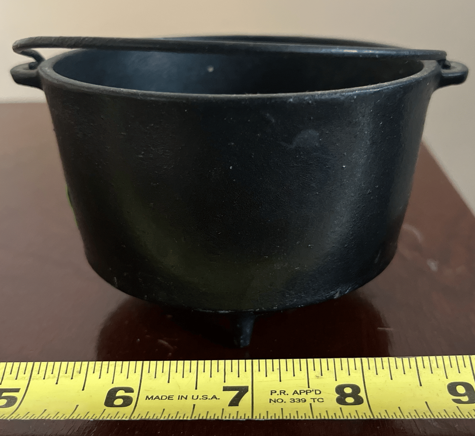 218 Wagner footed cast iron kettle with bail