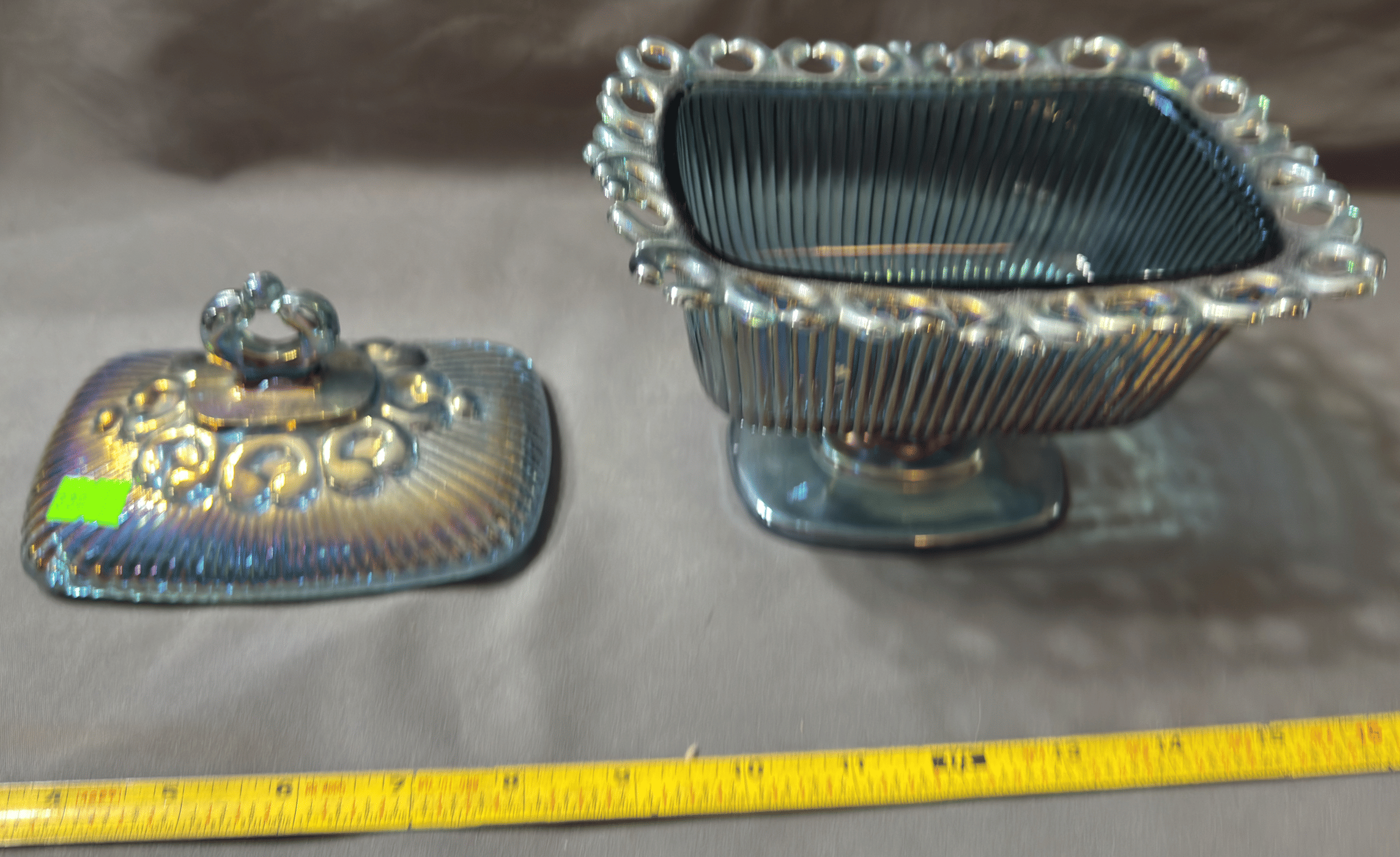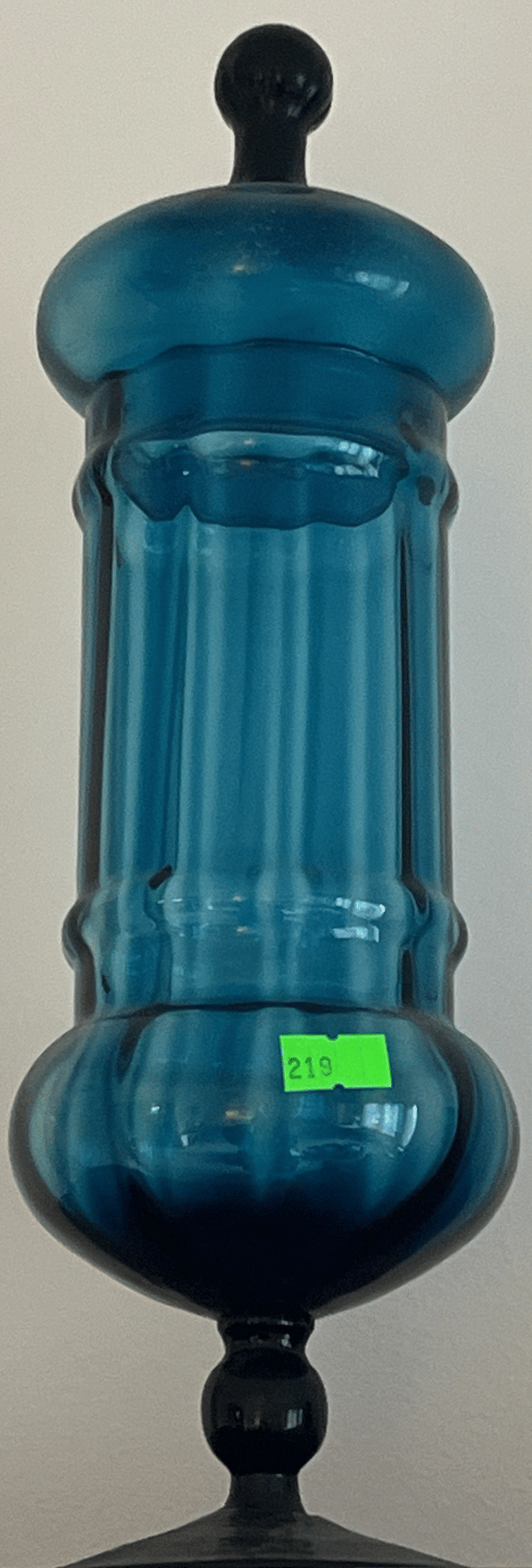 219 Blue glass pedestal jar with lid