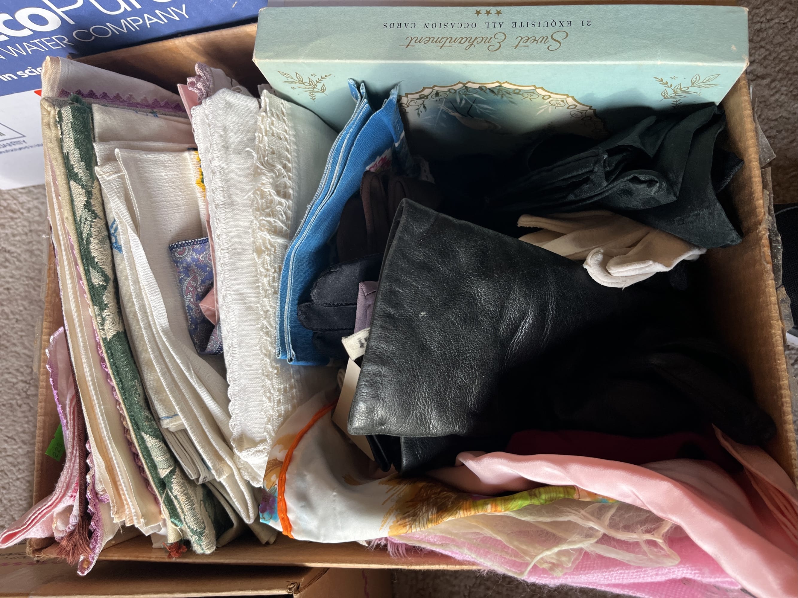 228 Scarves, handkerchiefs, table scarves and gloves