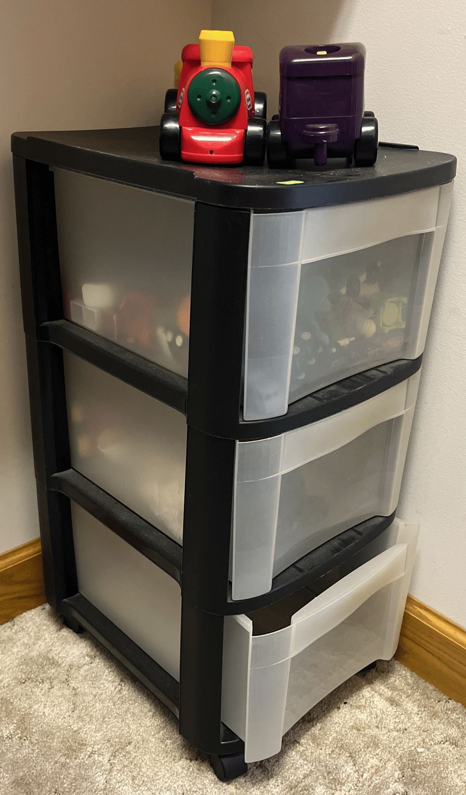 232 Plastic 3 drawer storage with toys