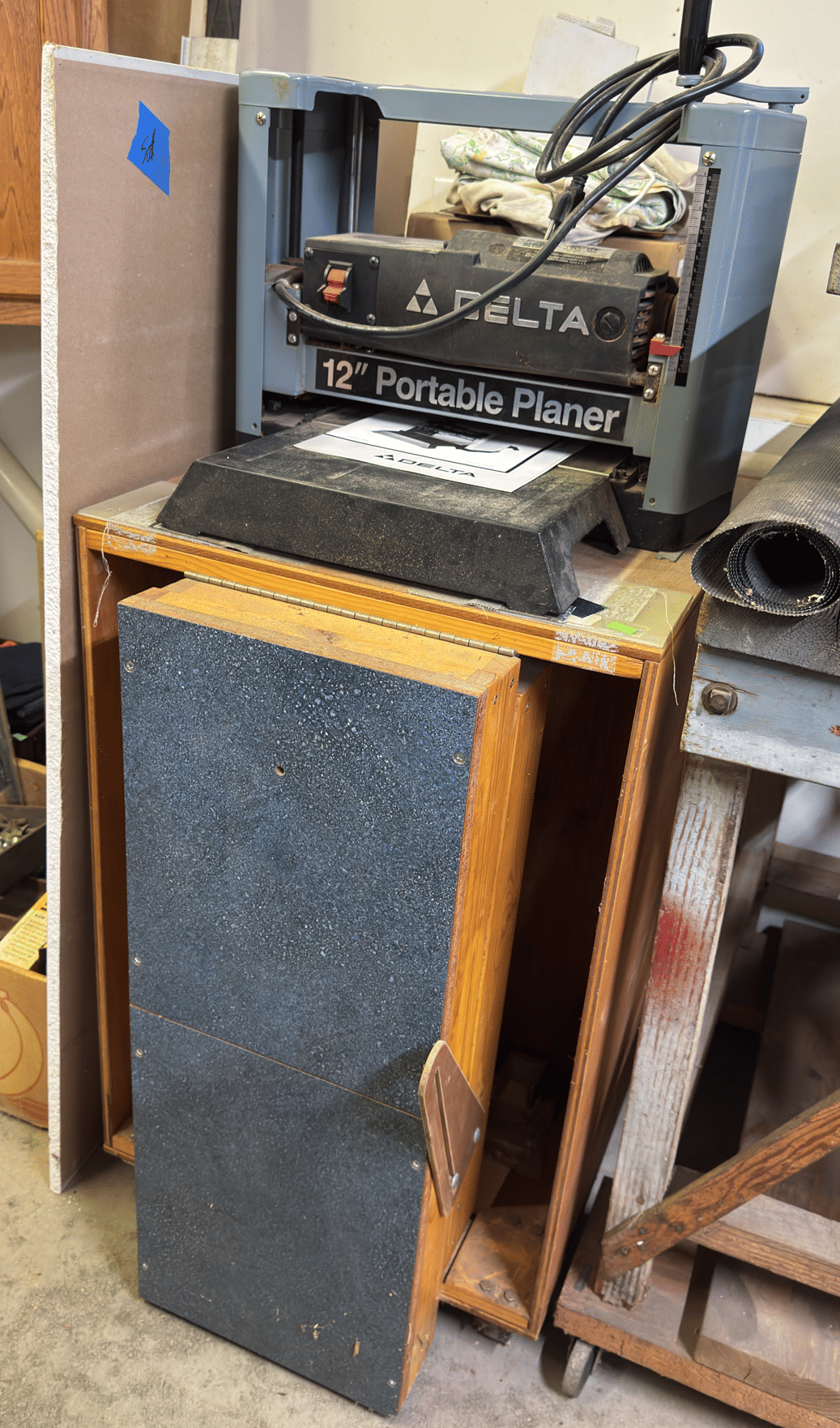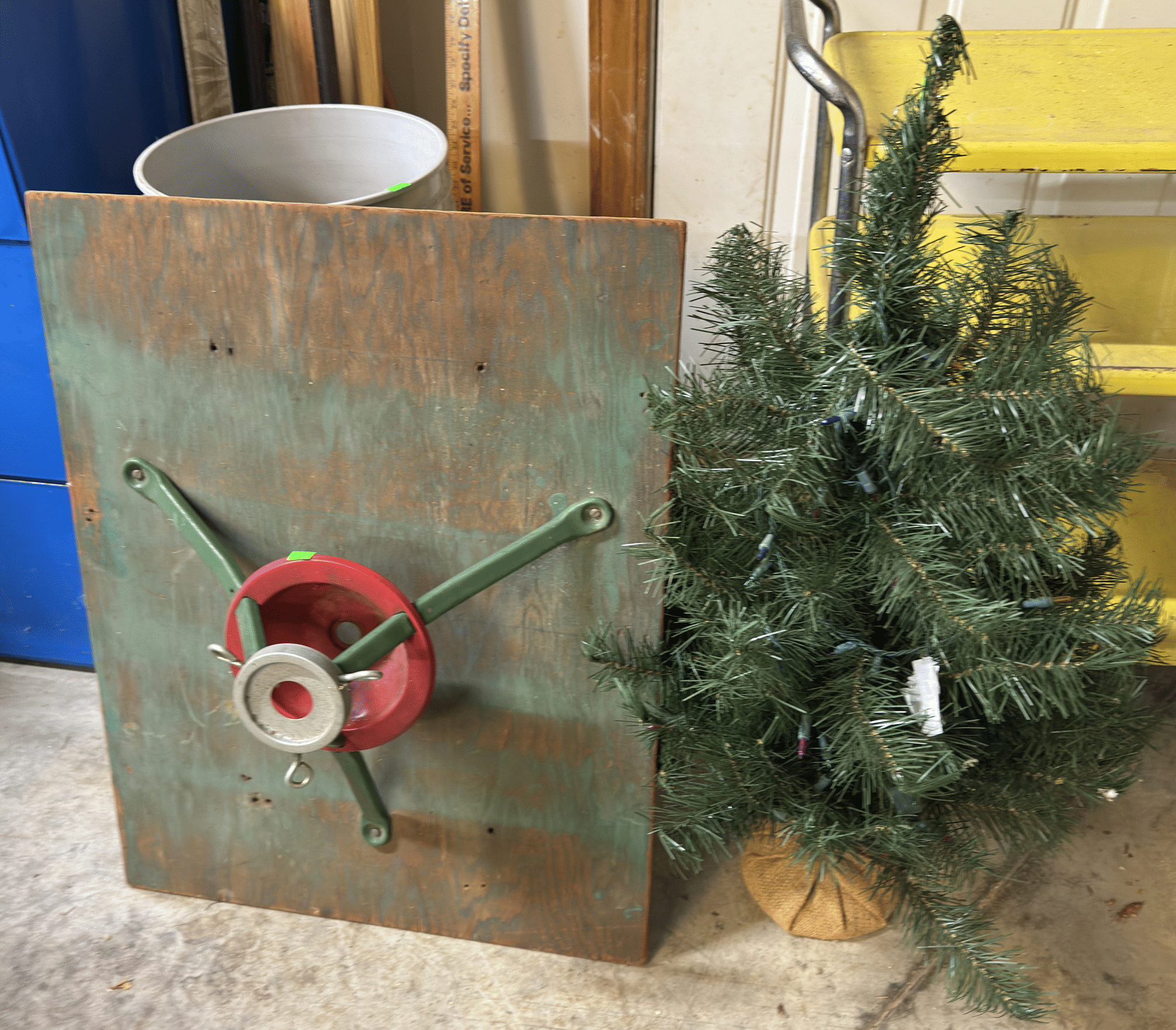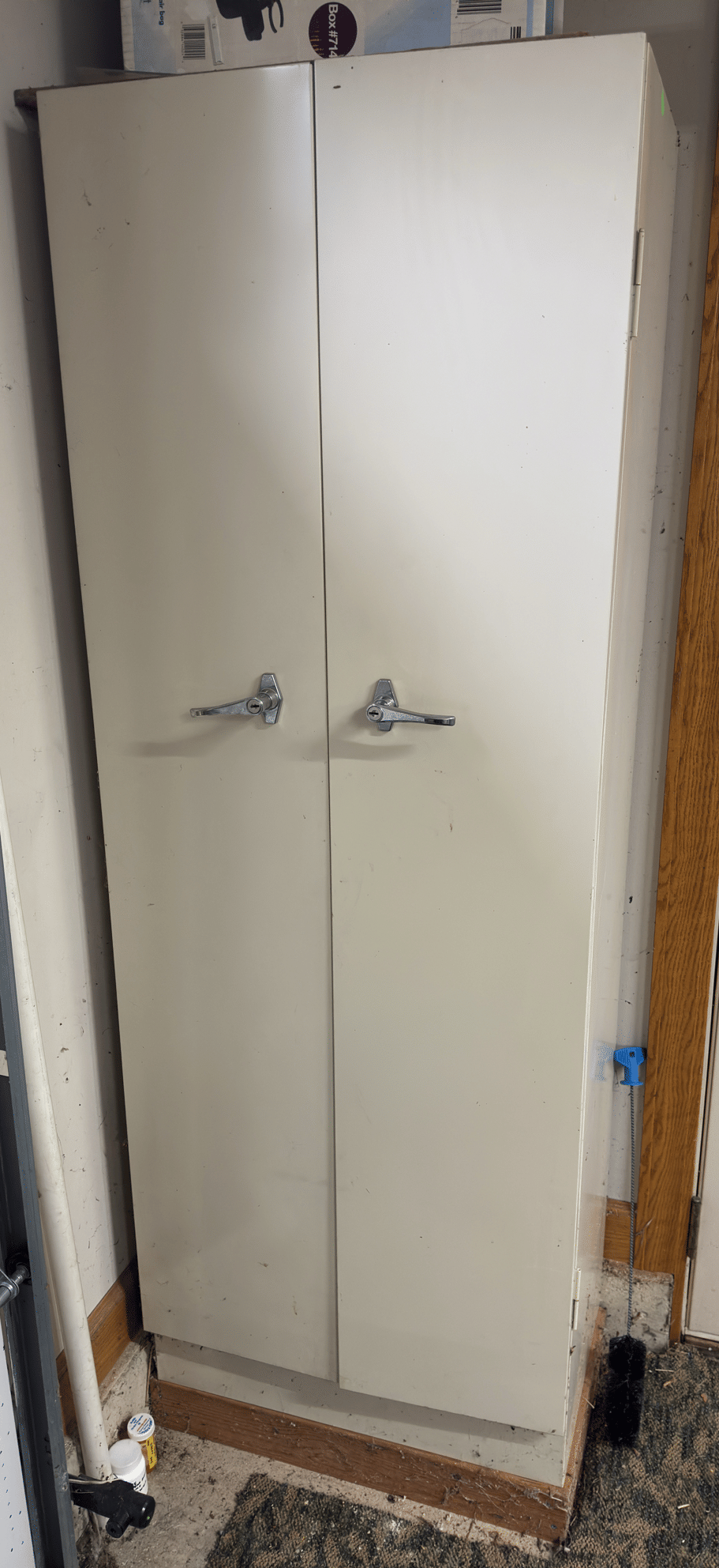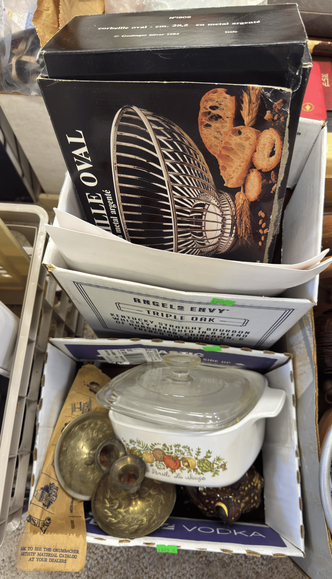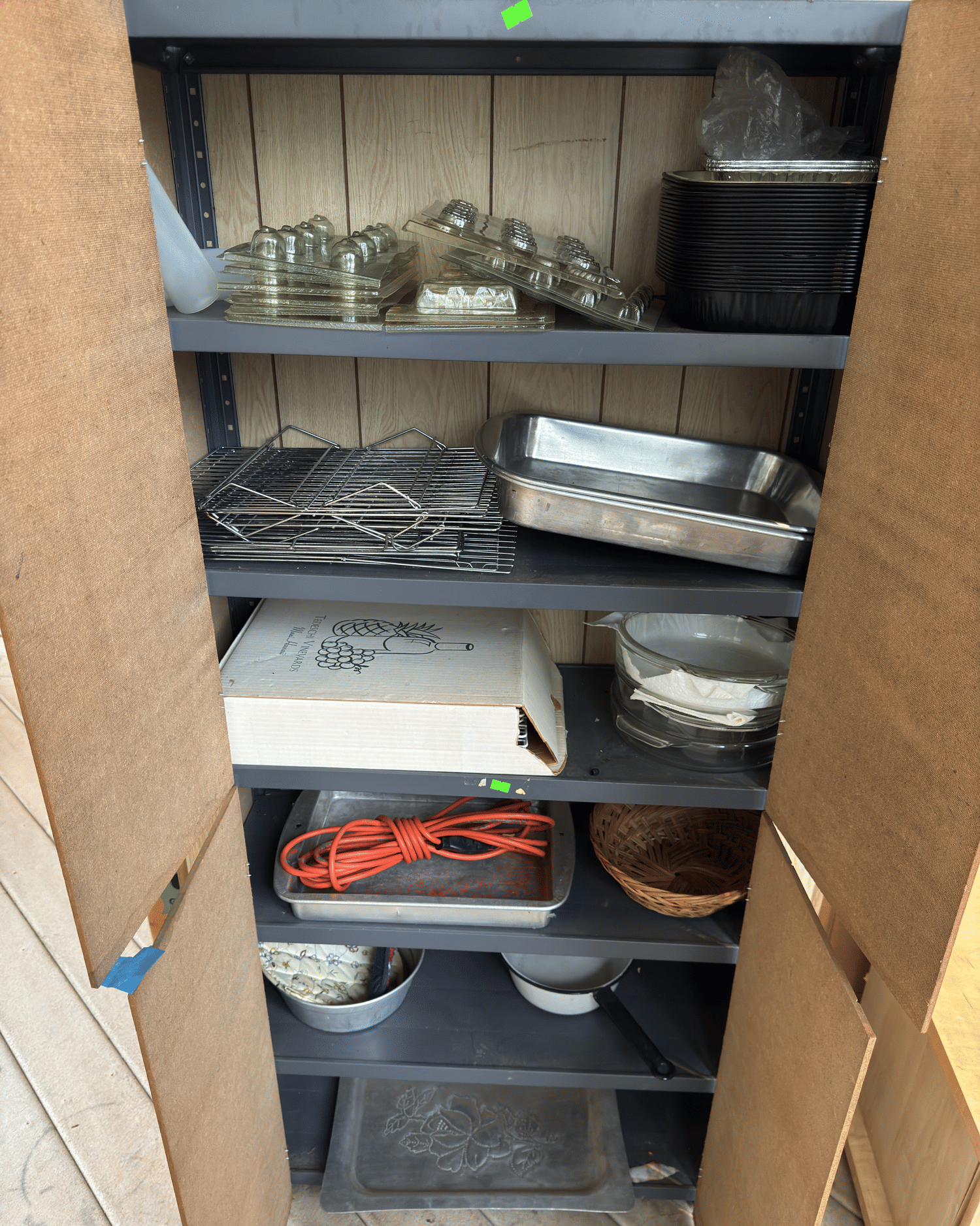 2205 Bottle cappers, wood tote, plastic totes, hardware, shelf 30x12x61