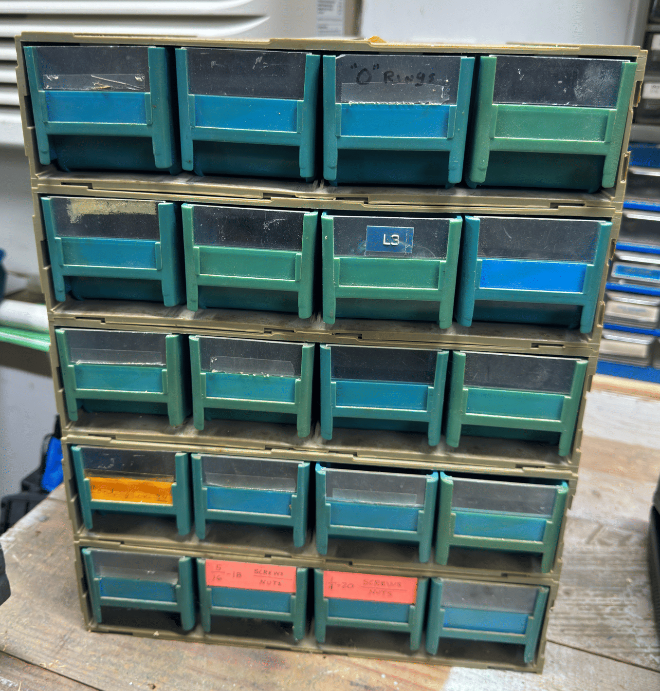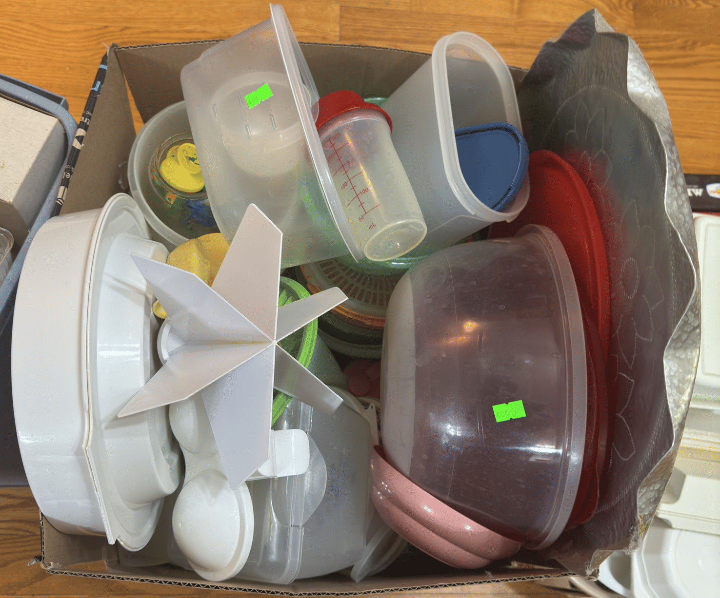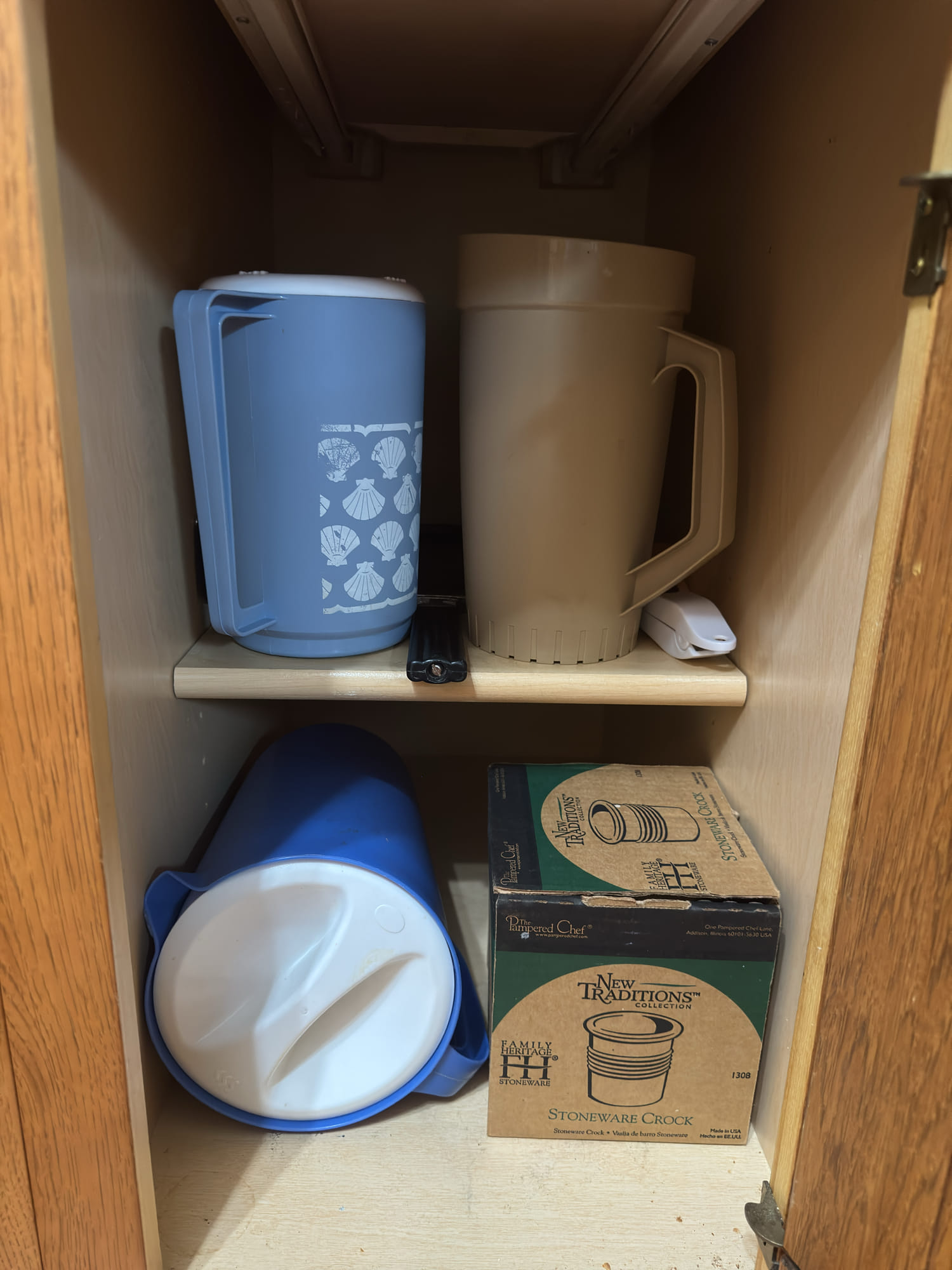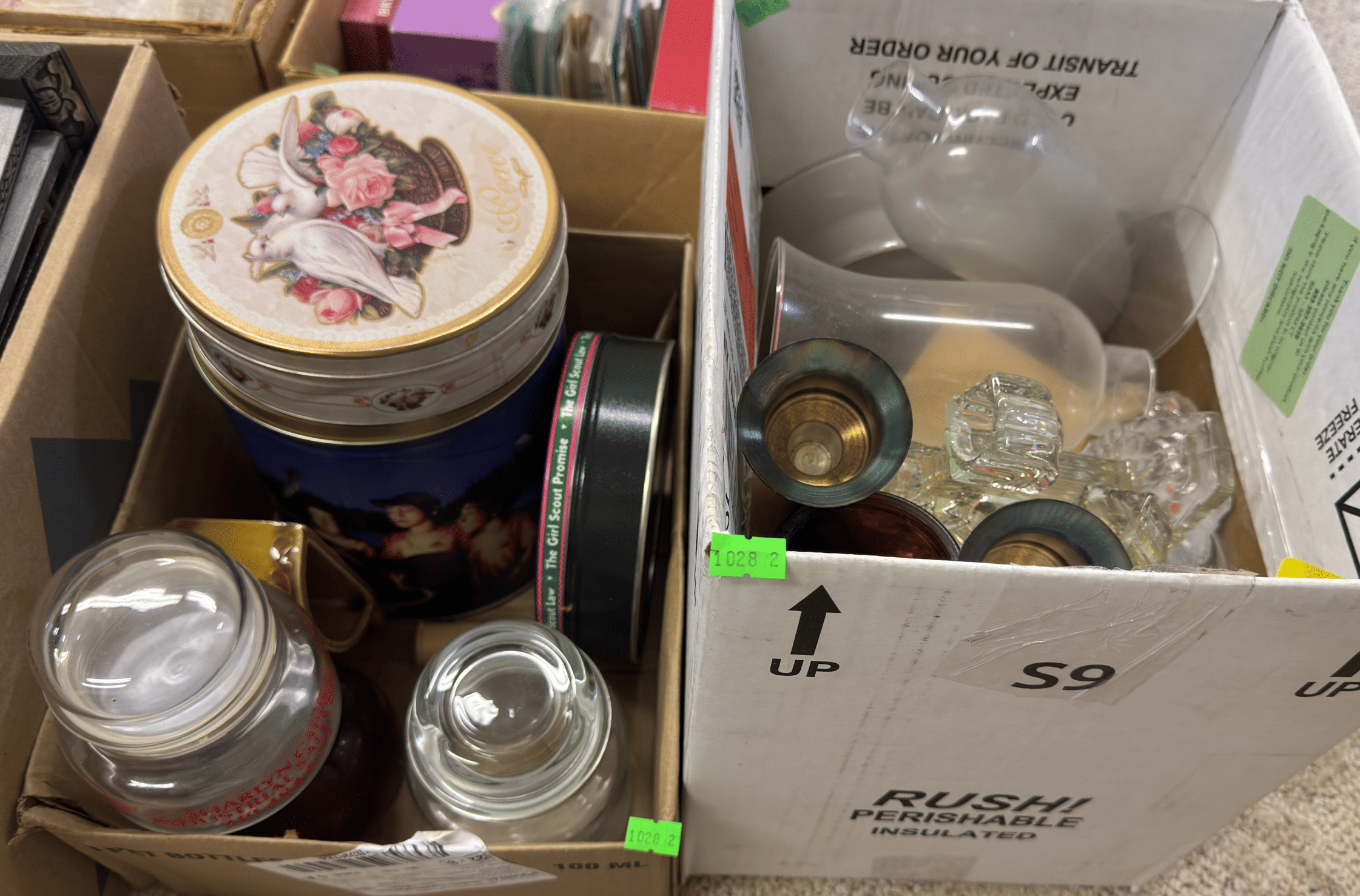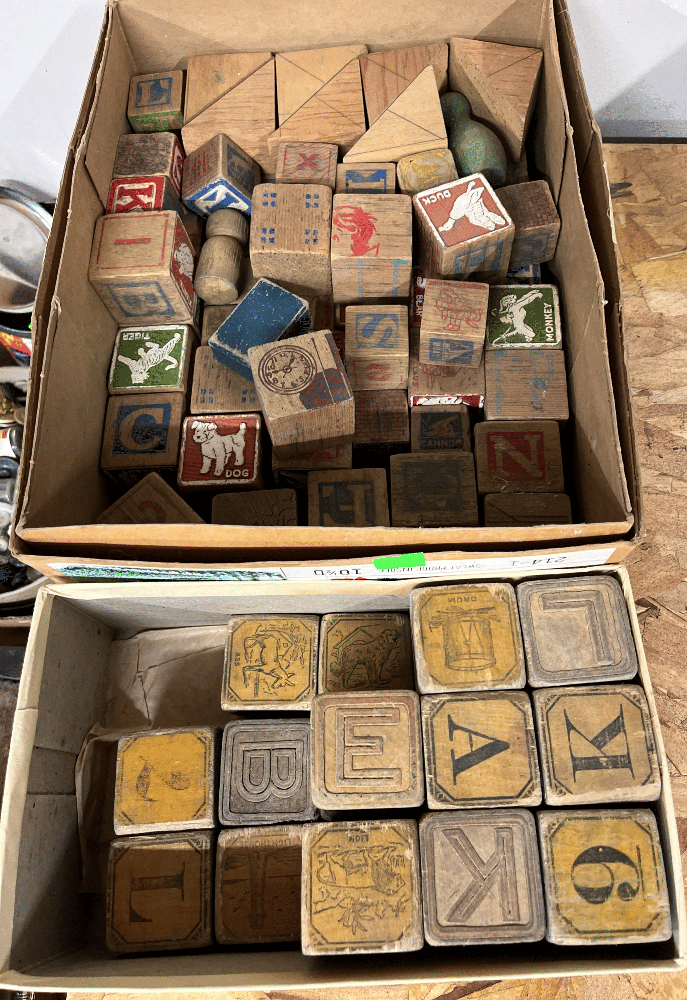 2205 Bottle cappers, wood tote, plastic totes, hardware, shelf 30x12x61