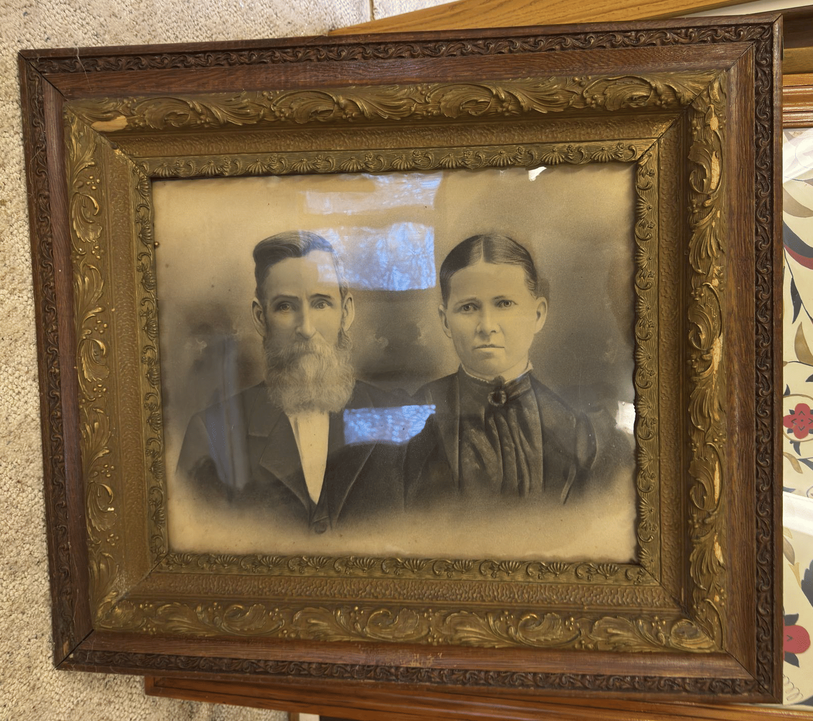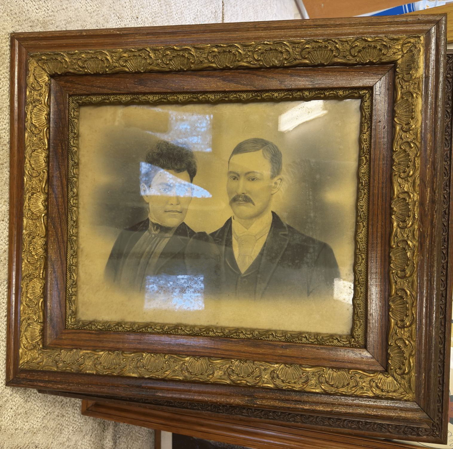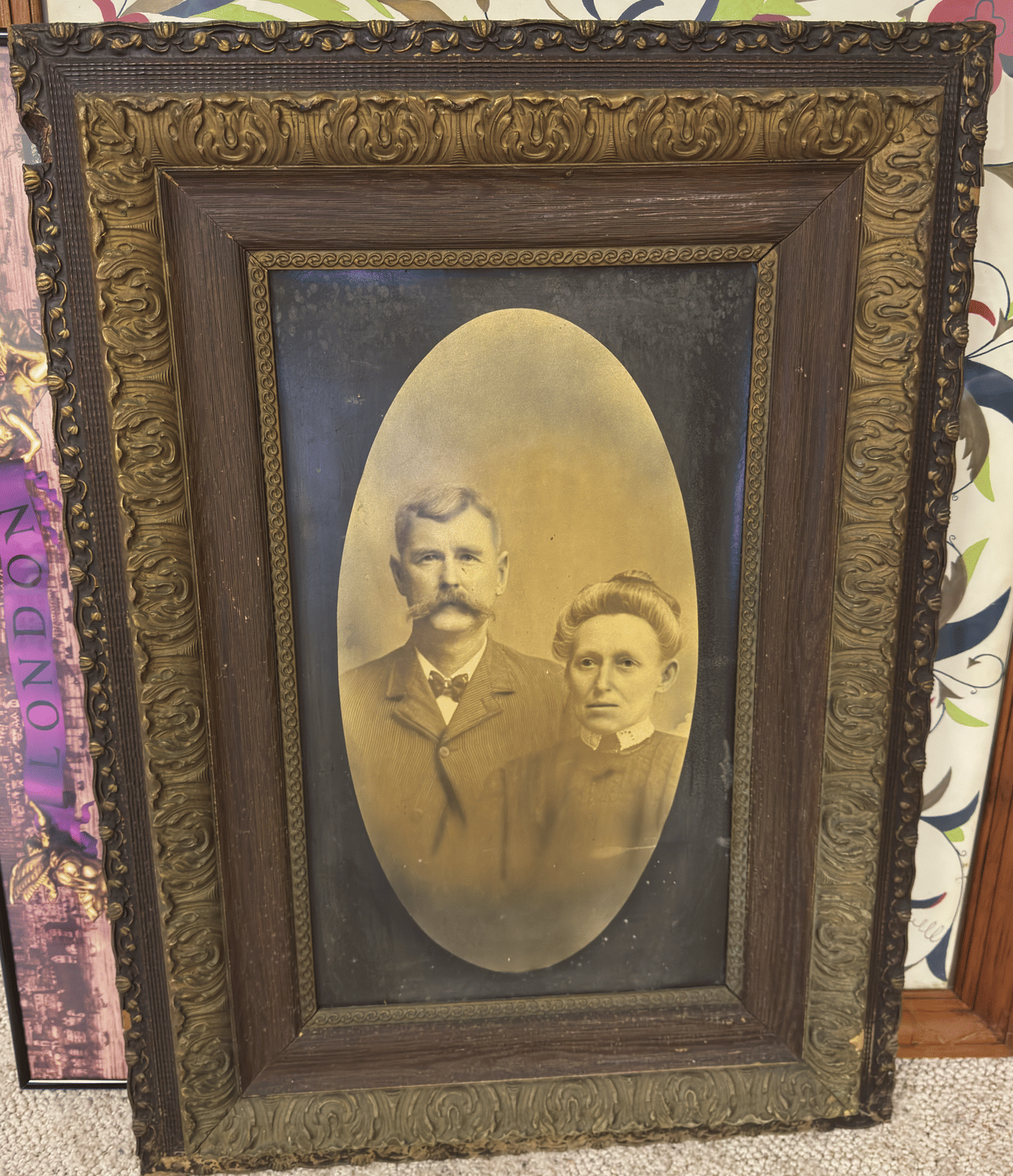 202 Ornate Curved glass oval framed Picture 24"x19"