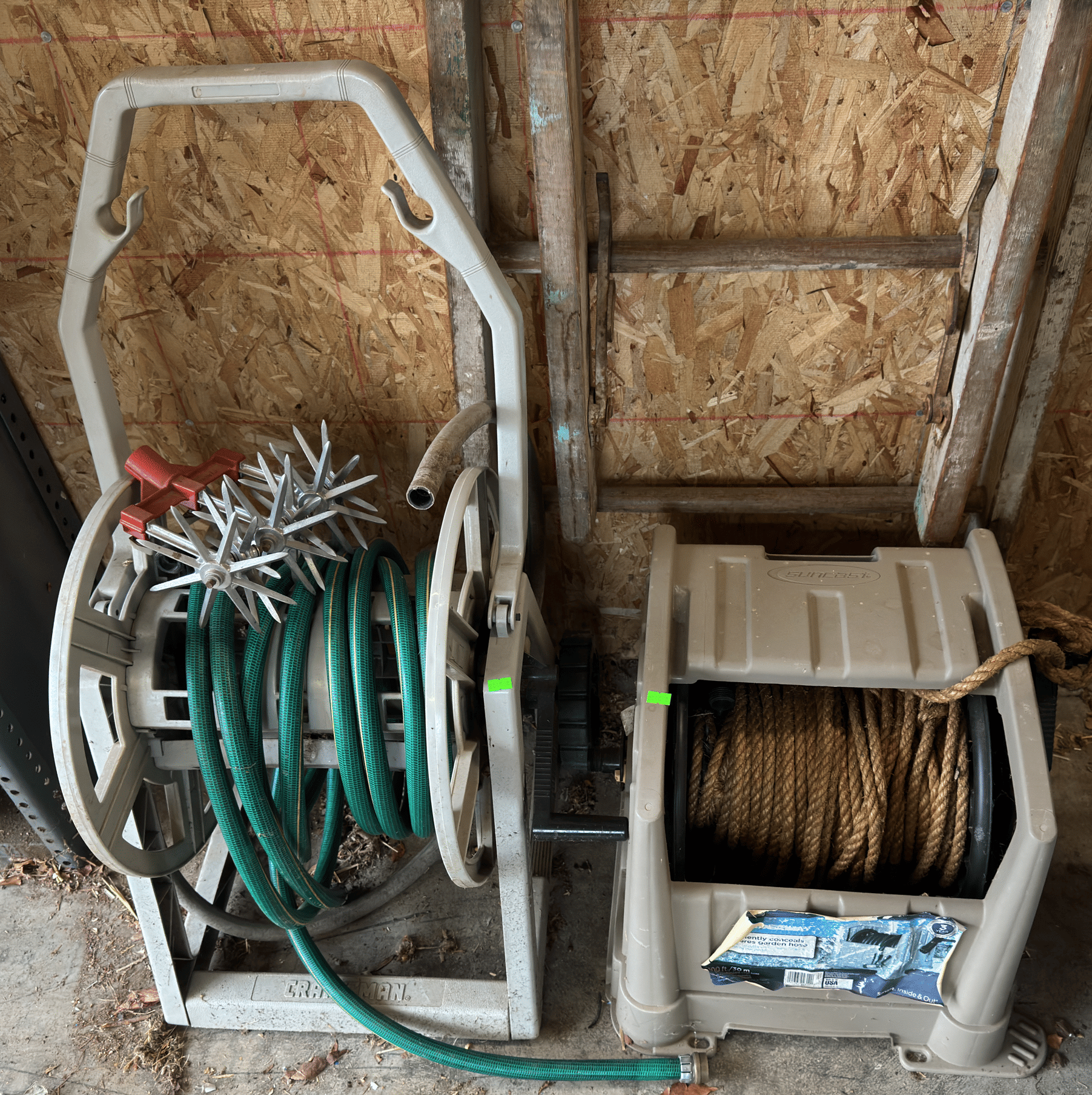 2183 Sprinklers, hose reel, cricket cage, miscellaneous