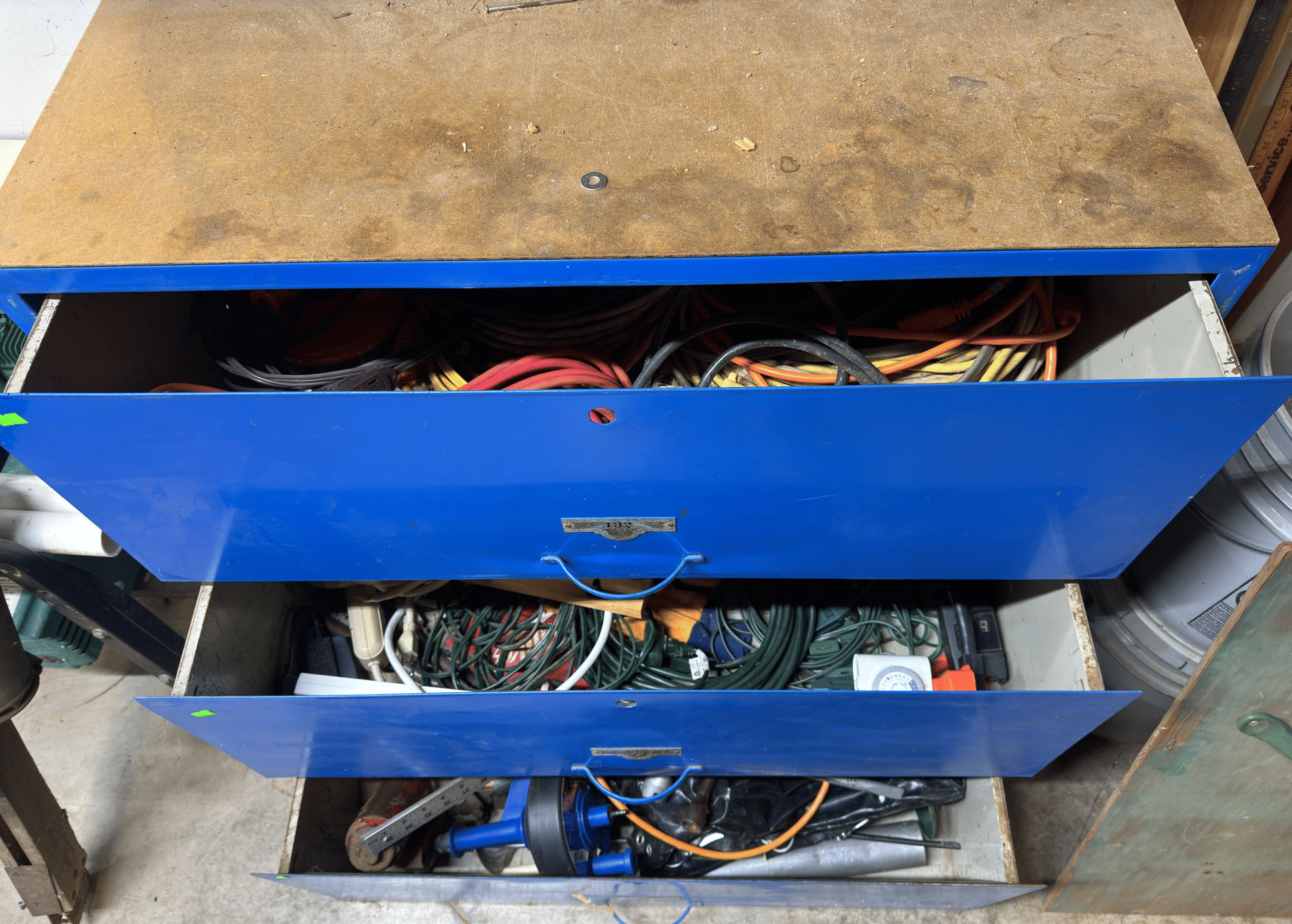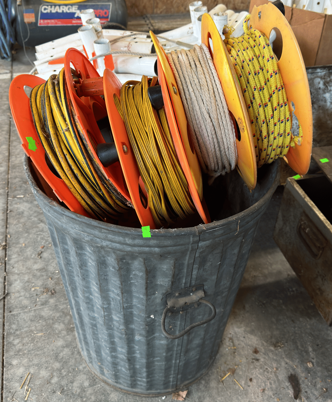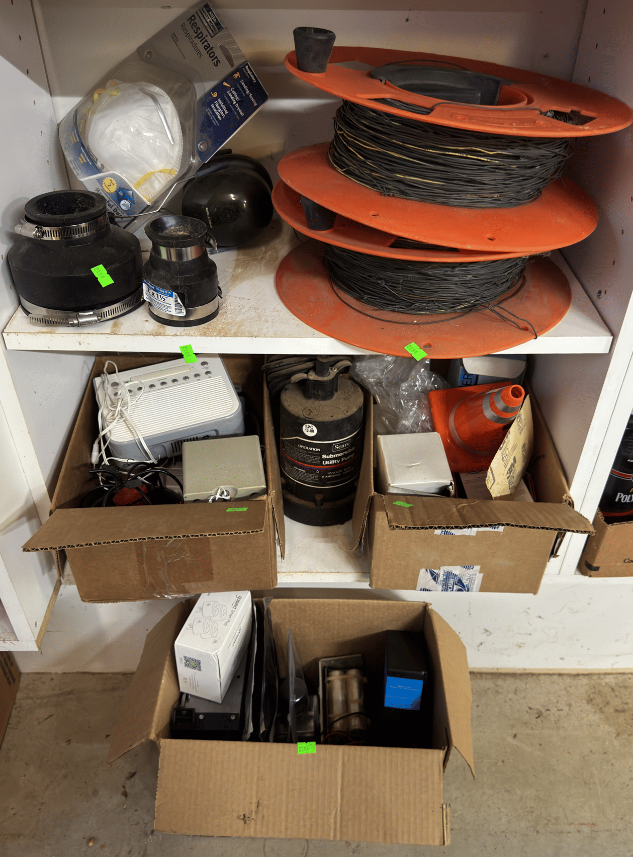 2164 Wire, submersible pump, traffic cone, alarm clock, misc