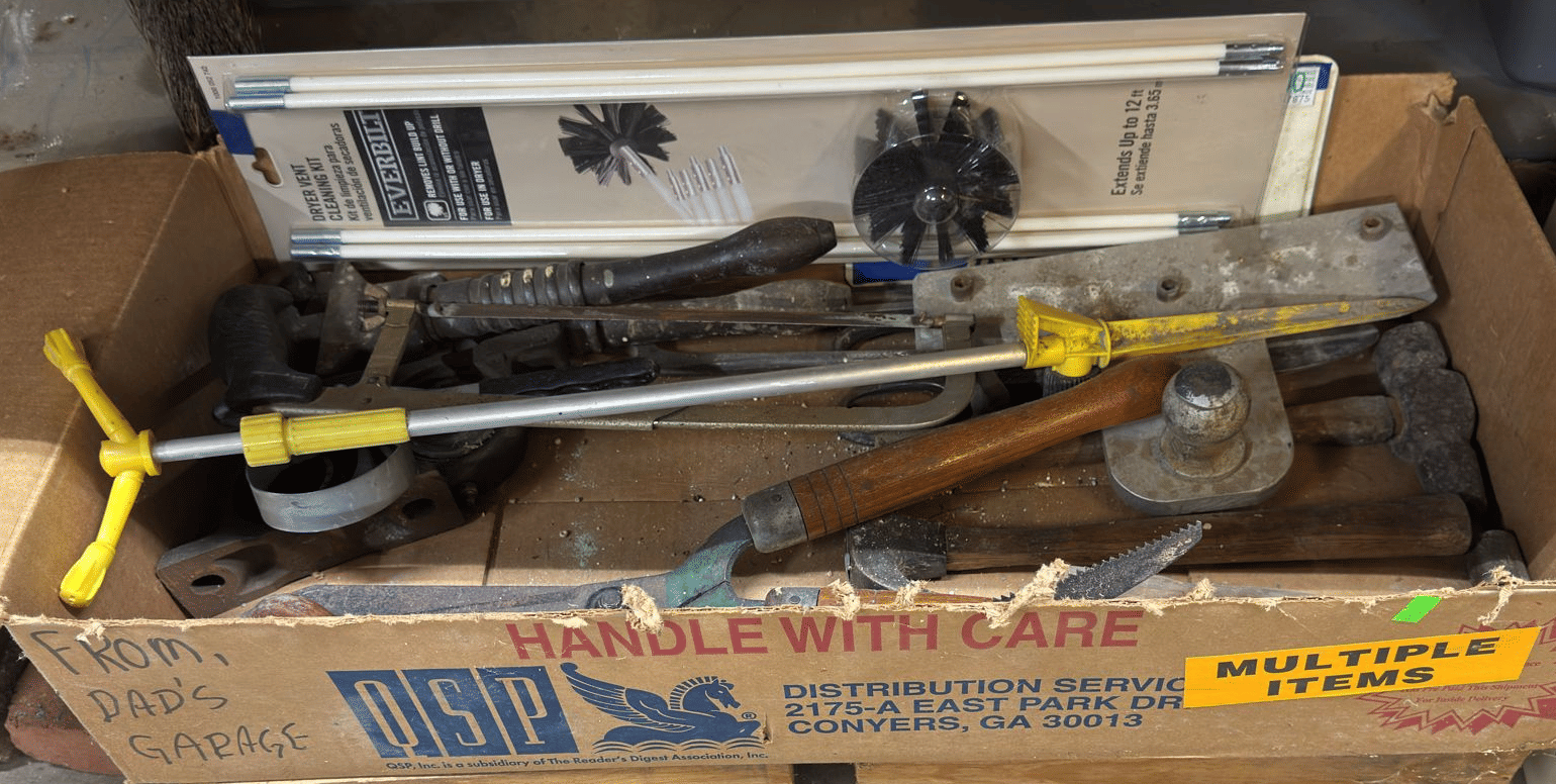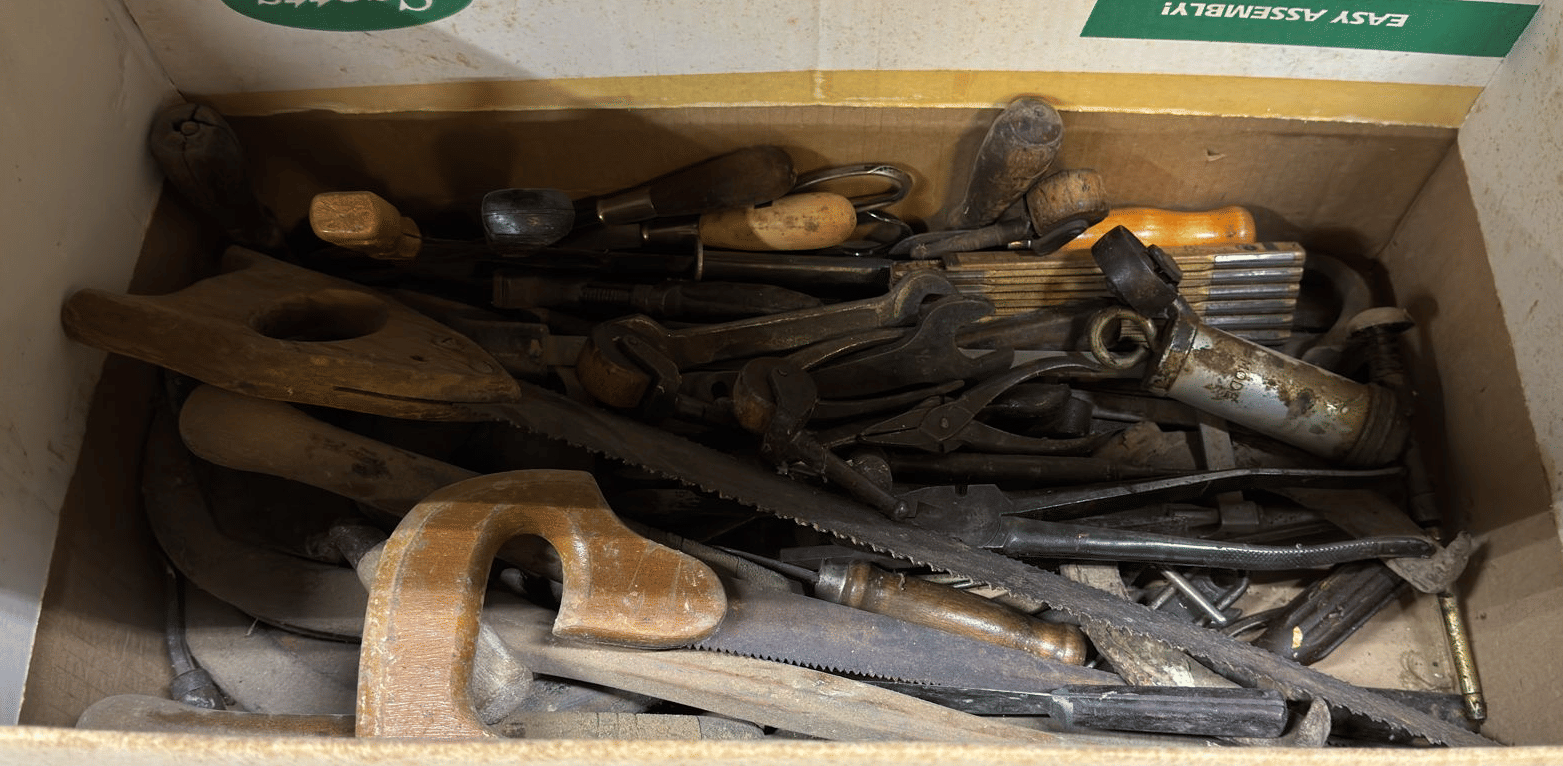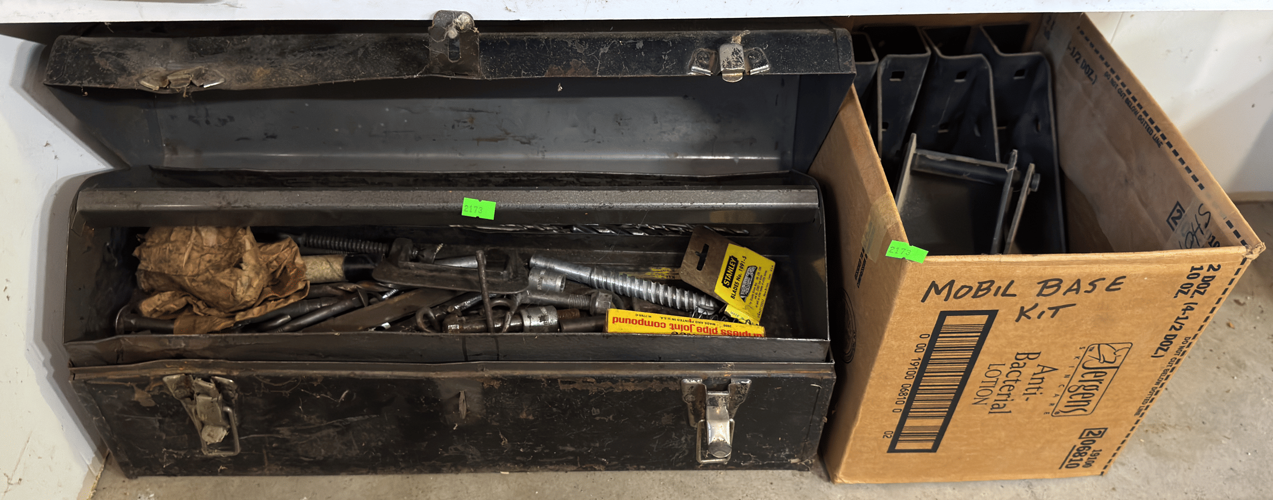 2173 Toolbox and tools, metal brackets