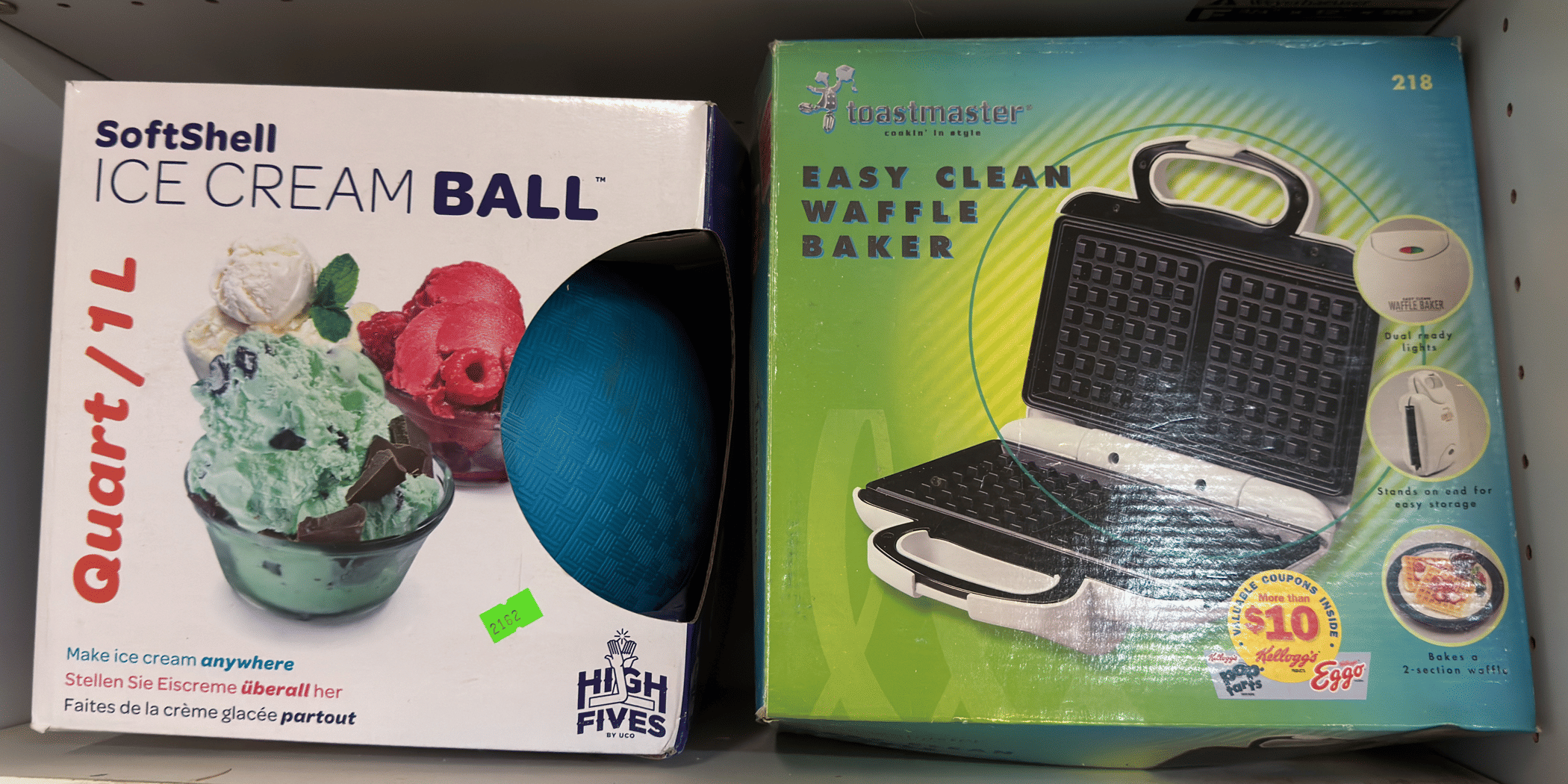 2162 Soft shell ice cream ball, toastmaster waffle iron