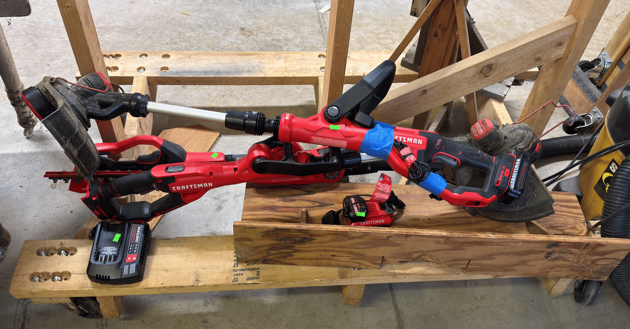2182 Craftsman cordless weed eaters, hedge trimmer with 2 batteries and 2 chargers